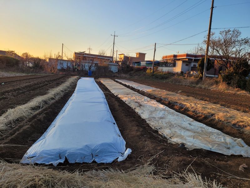 어제는 마늘을 심은지55일 날씨는 춥다고해서 마늘싹 이돋아나 겨울추위를 보내기 위해서 저녁늦은 시간에촘촘 히 부직포를 씌워 주었네요 옷을 입히듯 하얀부직포를 씌워주고나니 웬지 따뜻해 지는 기분이들었지요 사람이나 마늘이나 옷을입게 되면 혈액순환이 잘되듯이 오로지 마늘밑...