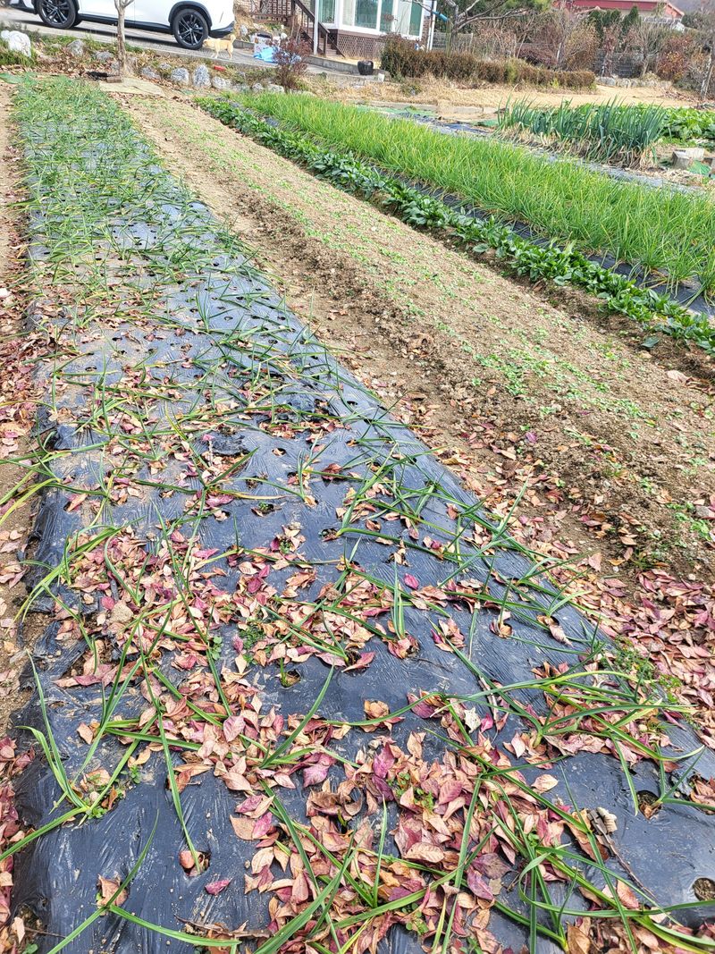 마늘, 시금치, 봄동 밭에 부직포 씌웠습니다 ㆍ