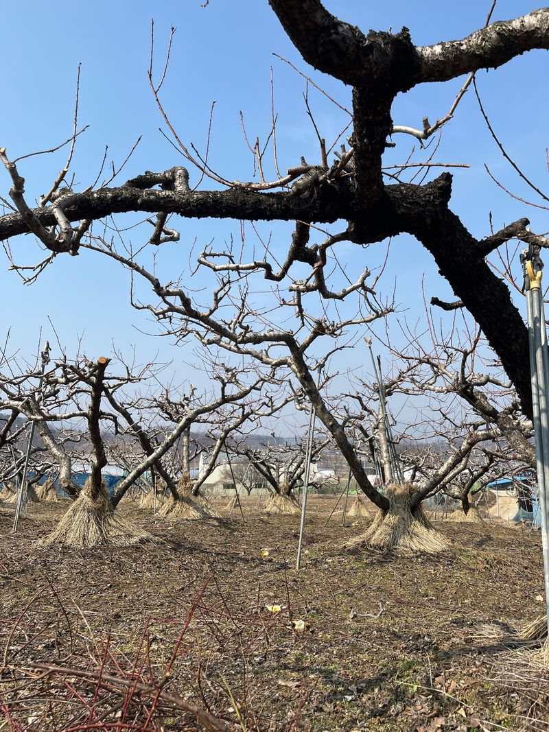전지 완료하고 가지 치우고 있습니다 기둥 박어서 지주대 설치해 보려고 하는데요 지주대를 어떤식으로 박아야 하나요? 나무가 연식이 있어 옆에 박을때 뿌리 조심해서 박어야 하나요?