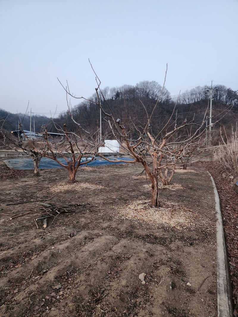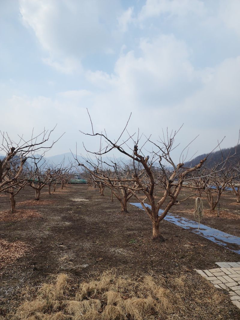 4시간동안 재초작업 완료 휴 힘드네. 4월15일 서리 내린것 냉해피해 잎은것 감나무잎이 께어나지를 안내요 대책은 없을까.