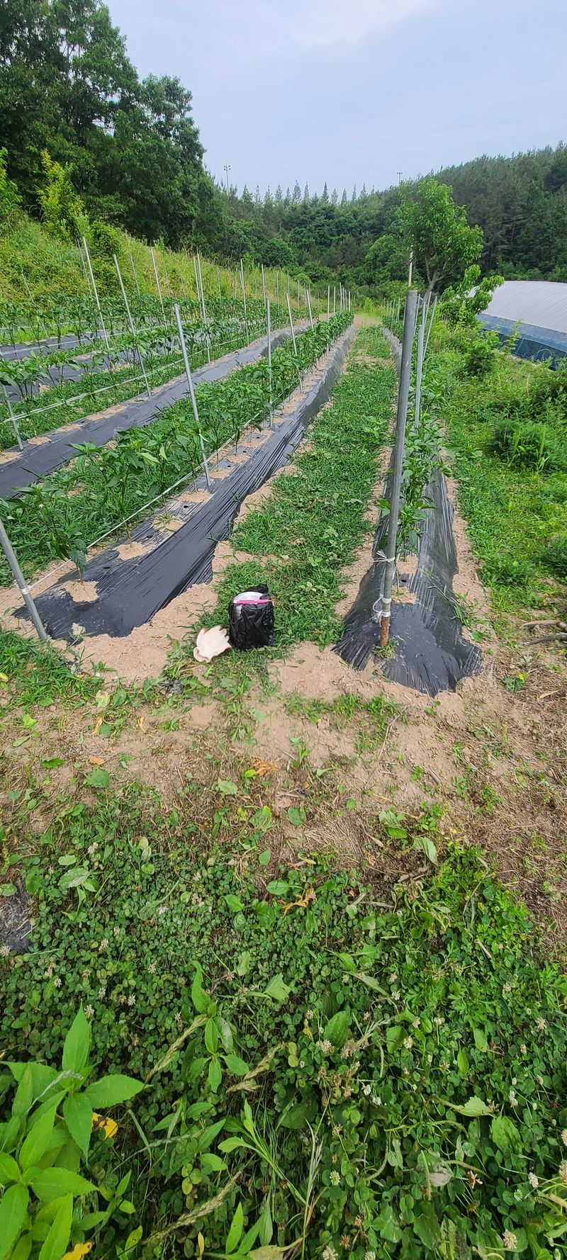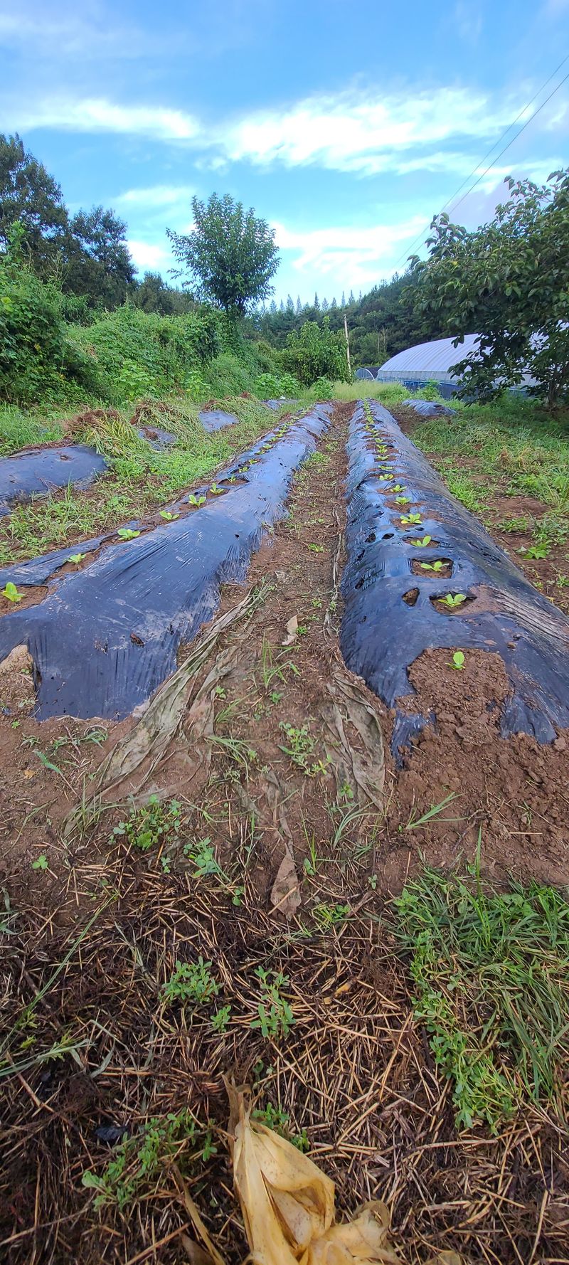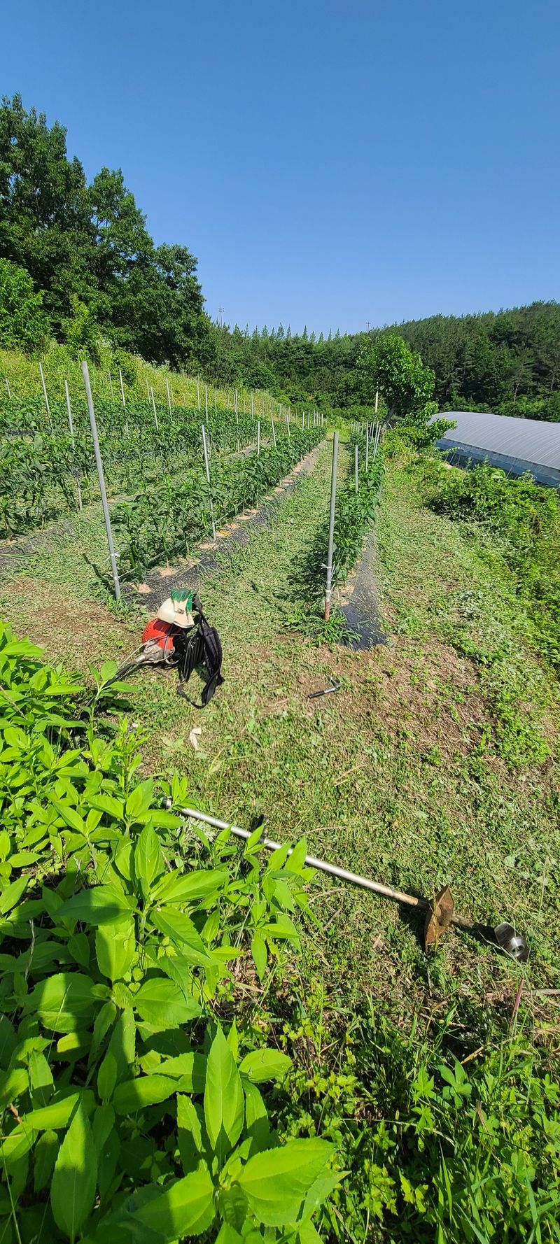 배추밭 물주기 및 주변 밭뚝 예초기로 풀베기 작업