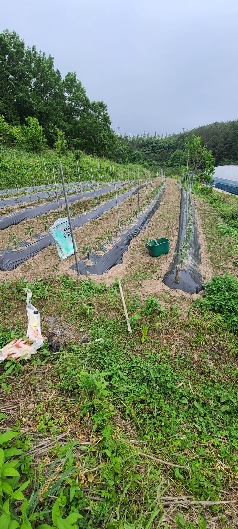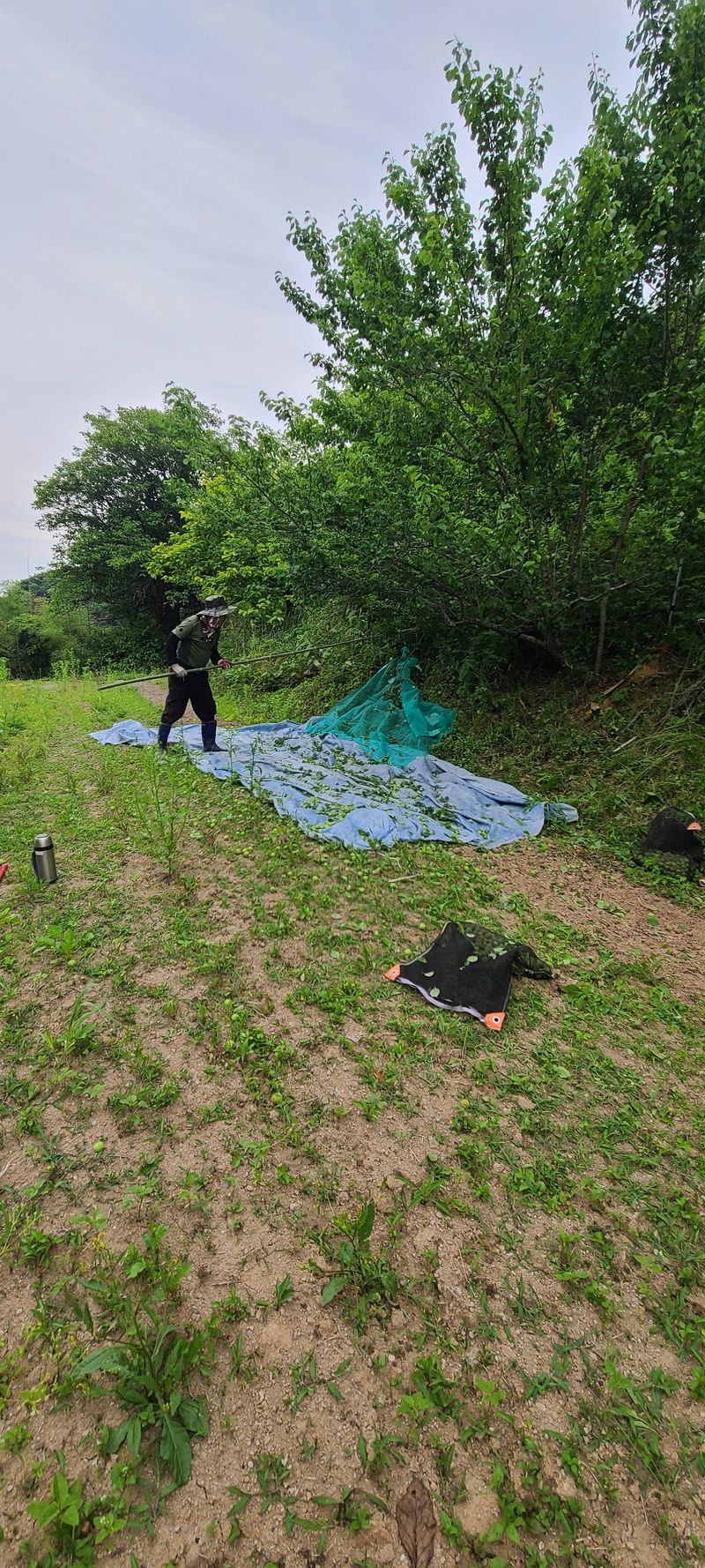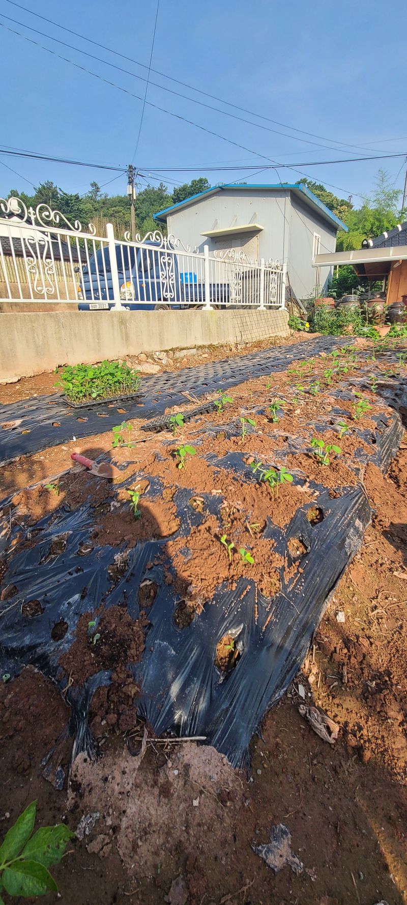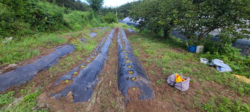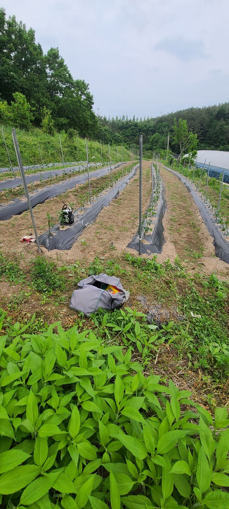 배추밭 물주기 및 주변 밭뚝 예초기로 풀베기 작업