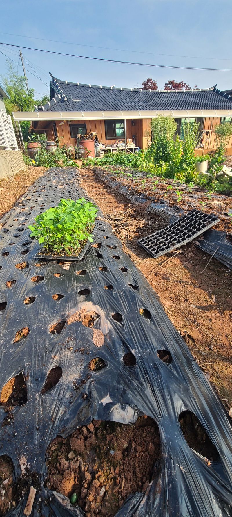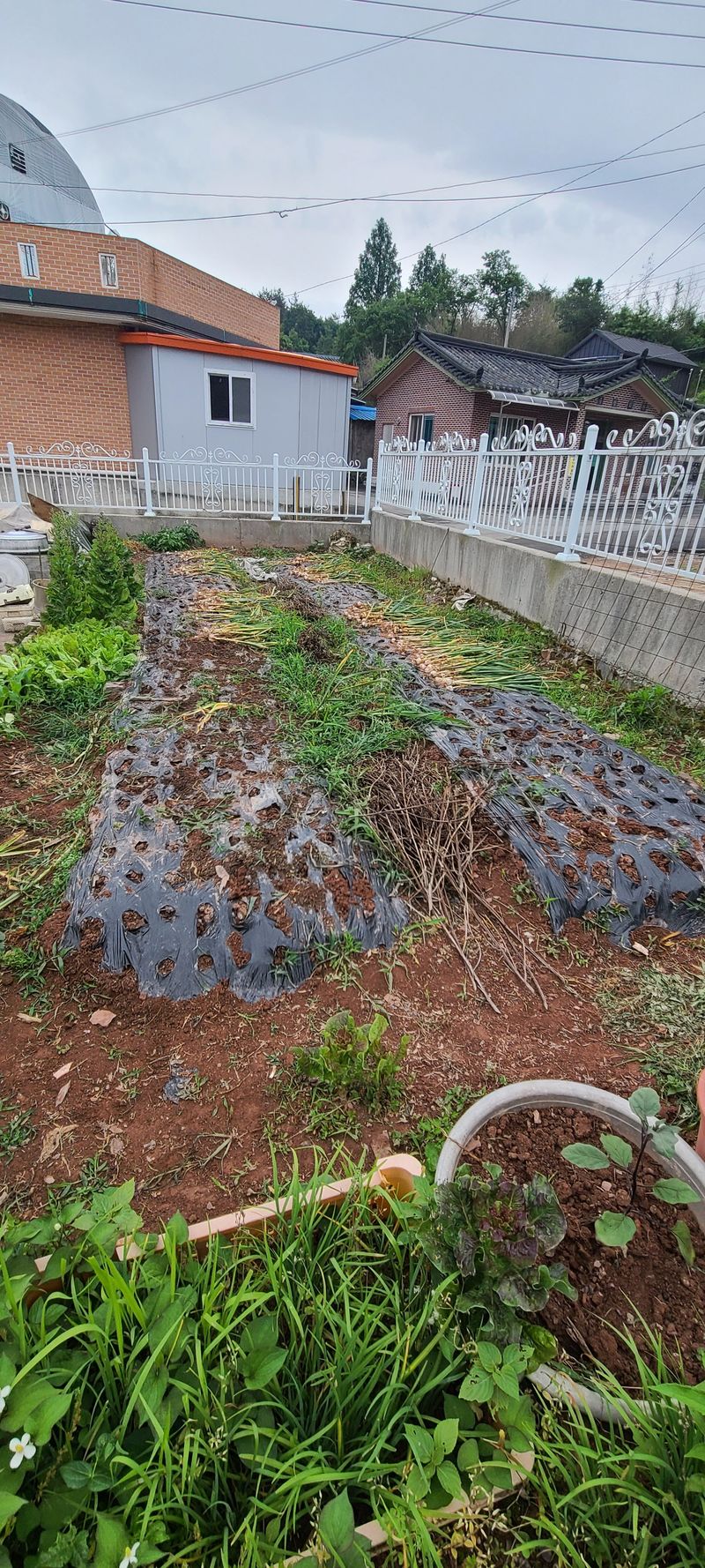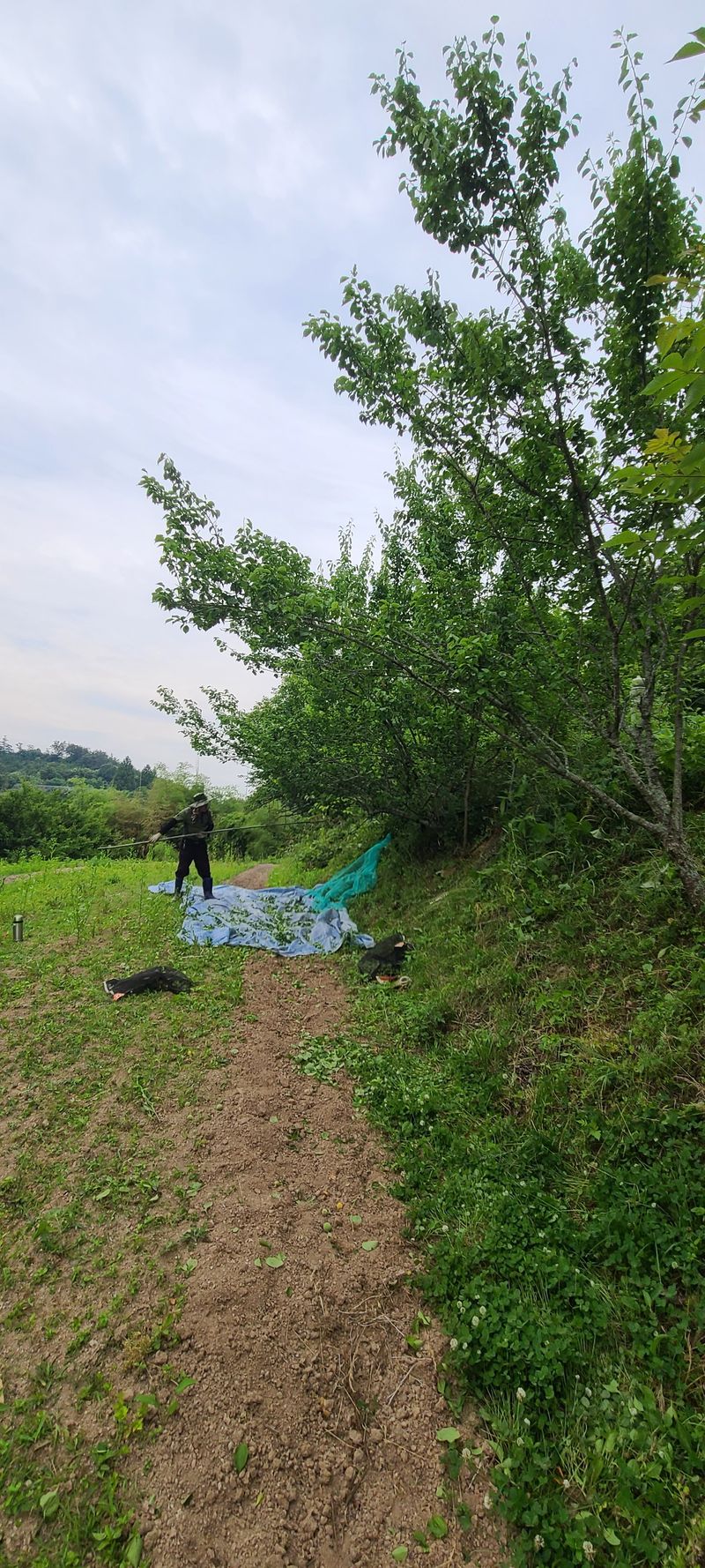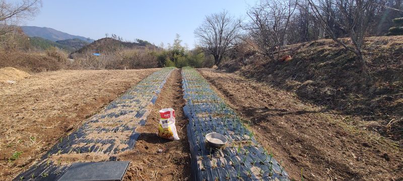 배추밭 물주기 및 주변 밭뚝 예초기로 풀베기 작업