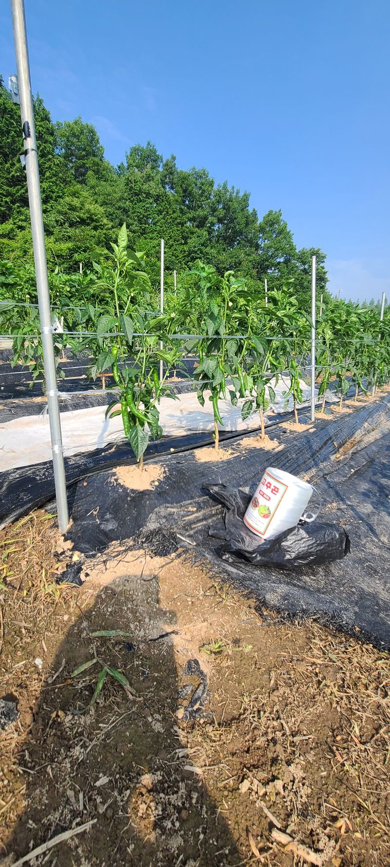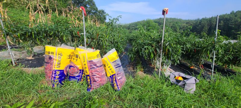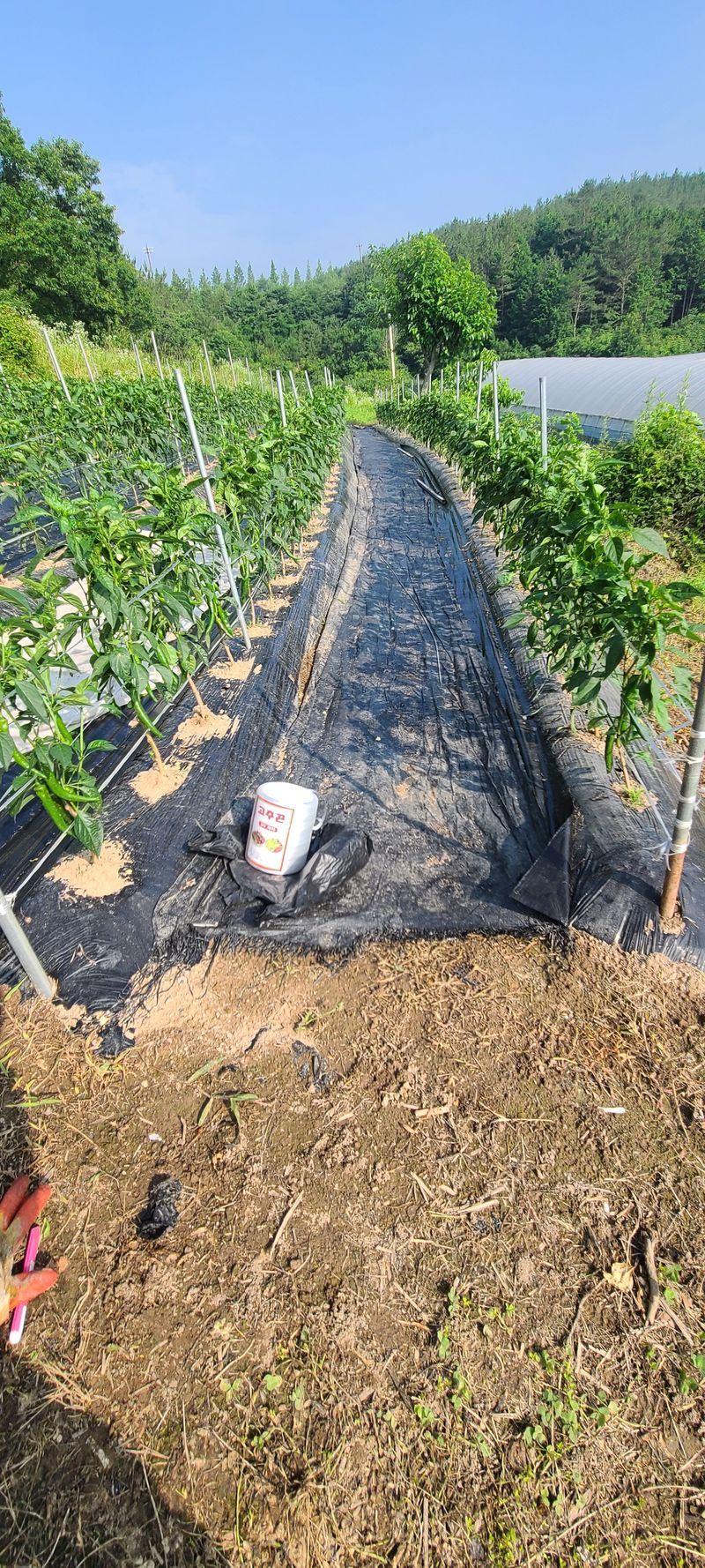 고추에 탄저병약 및 총체벌레약 살포 작업