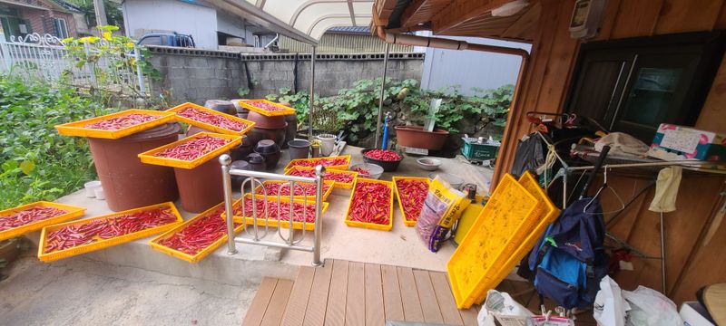 고추수확후 세척 및 물기제거 건조기에 말리기