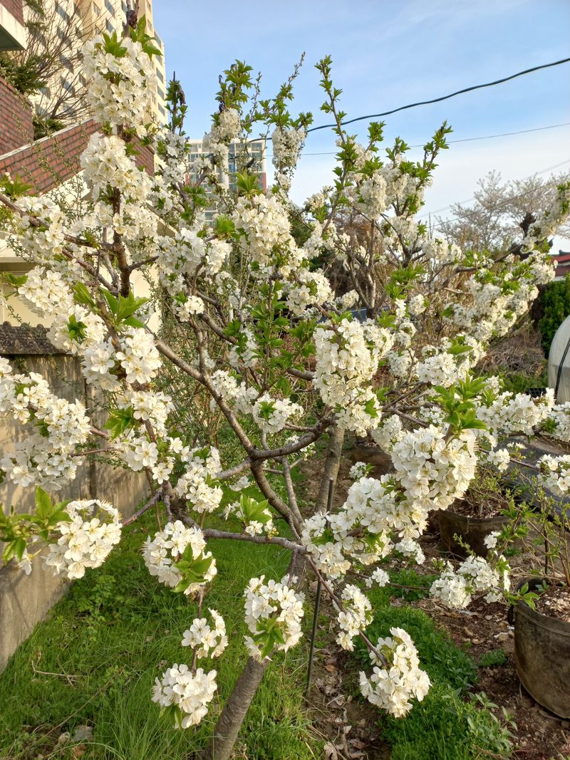 우리집 체리나무 꽃이 활착 피었습니다.