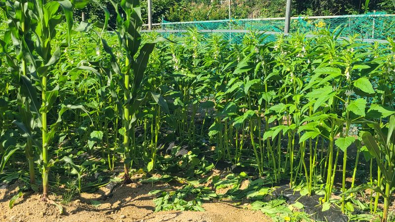 종묘상에서 외대라고한 참깨종자를 구이해 파종했는데 가지가엄청생겨나와 오는 아침5시30부터 곁순남김없이 싹제거했심더!