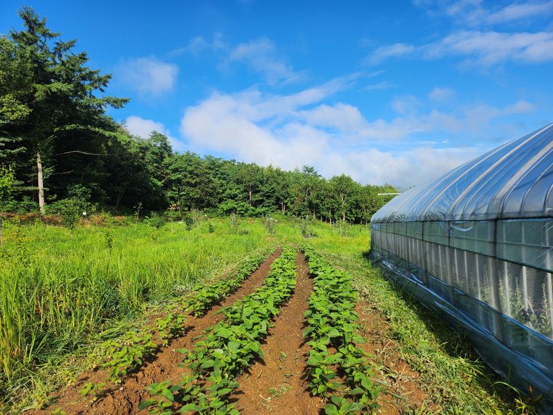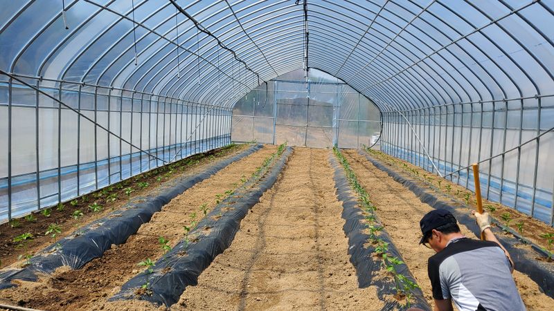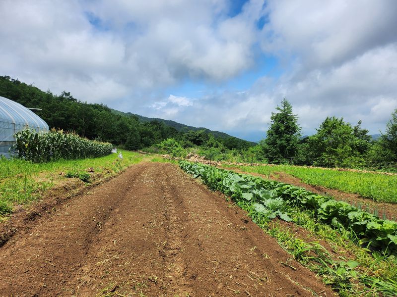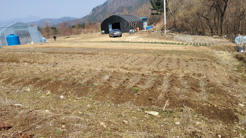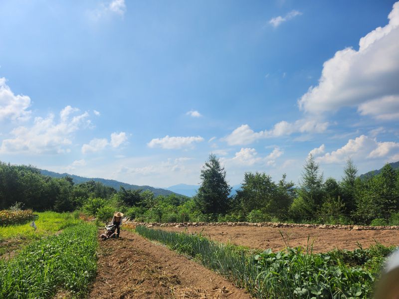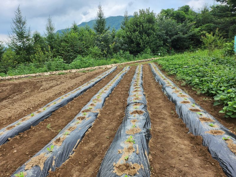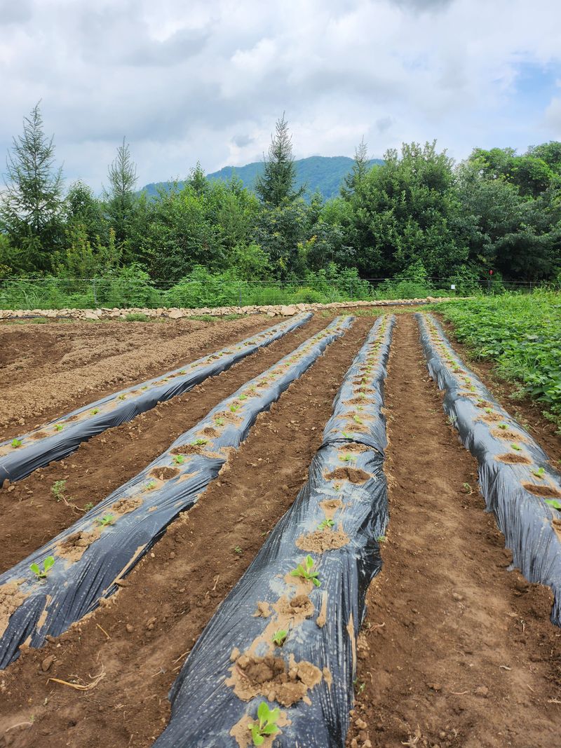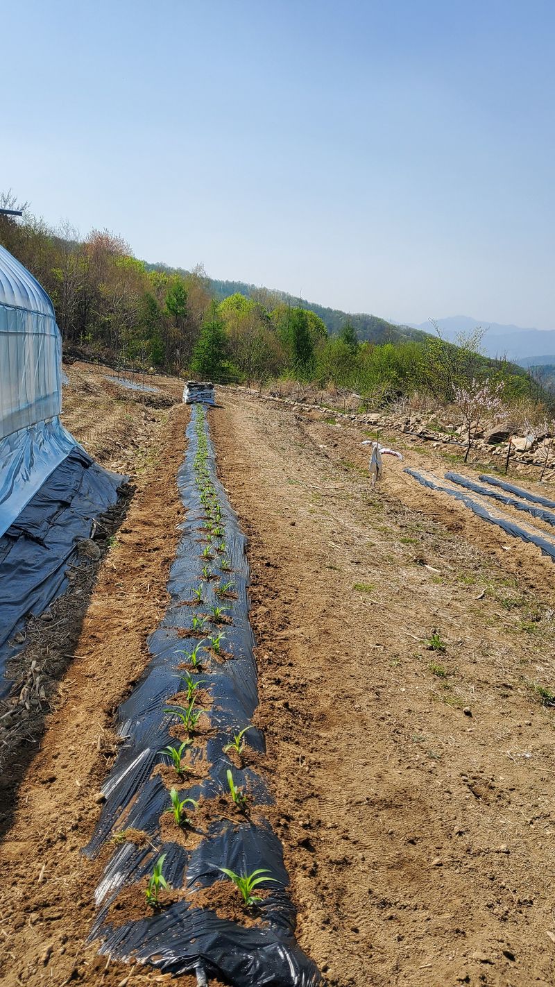 비가 오락가락 하는 가운데 다 심고 나니 햇님이 반짝 ???