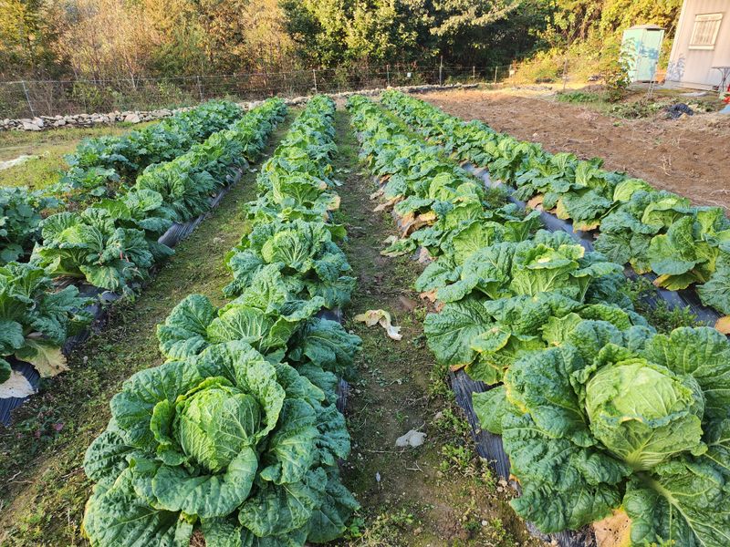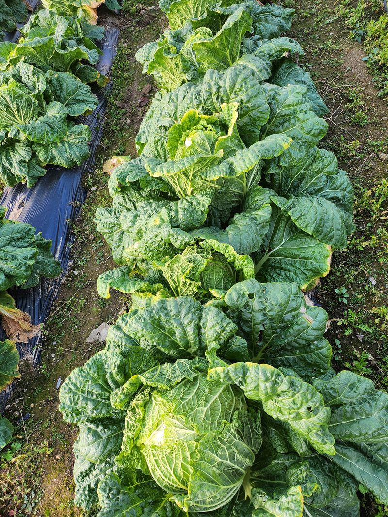 황금배추 살아남은 배추 수확 이 가까와 짐