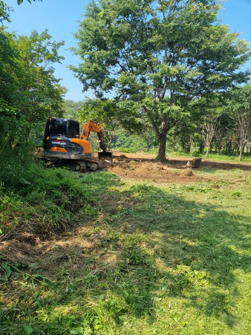 밤꿀뜰 자리로 와서 잡꿀 받은 거 뜨고 밤꿀 뜨려고 해요. 이동지 풀이 많고, 길이 험해 포크레인 불러 정비했어요.