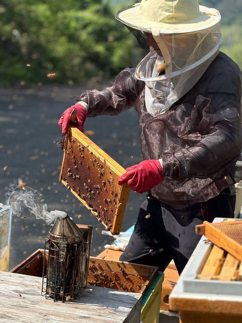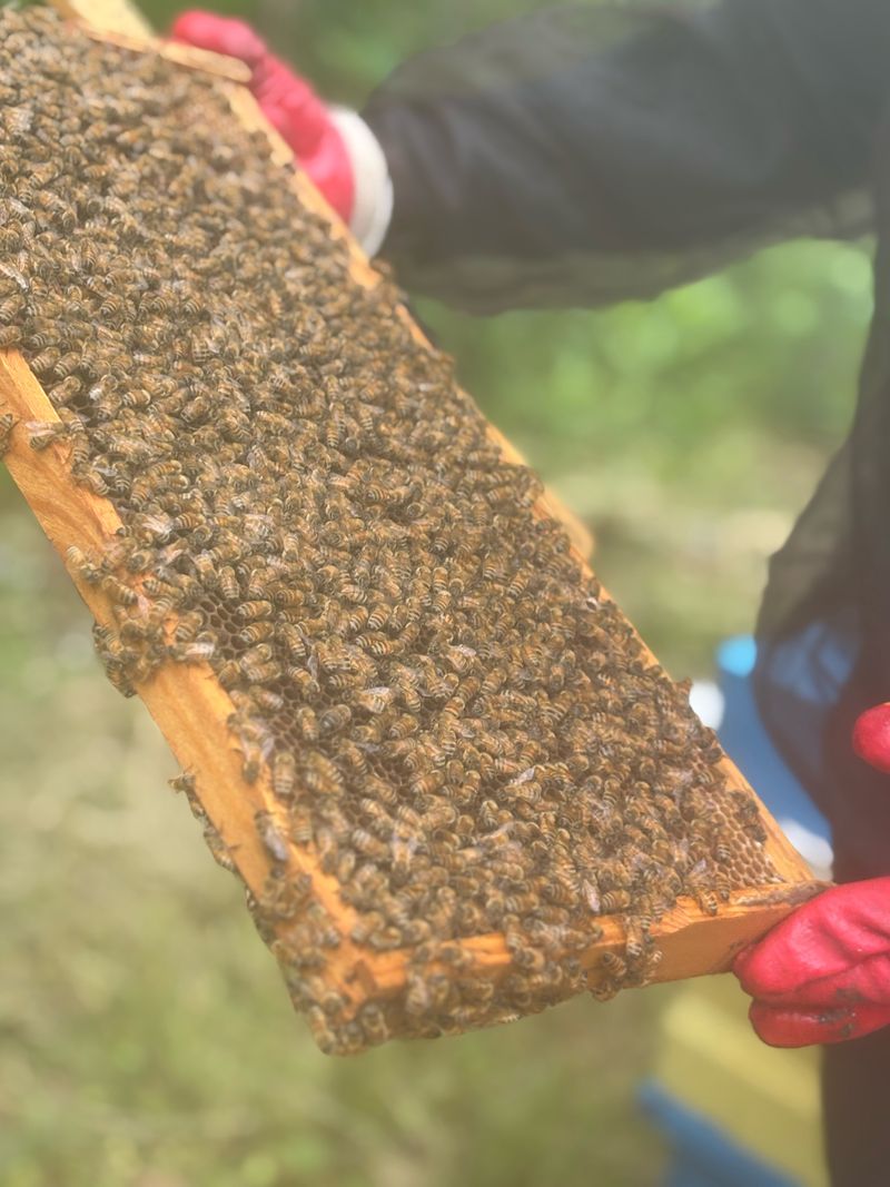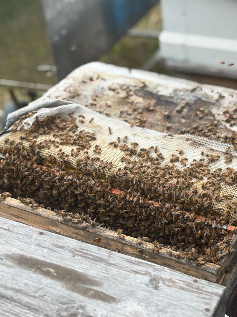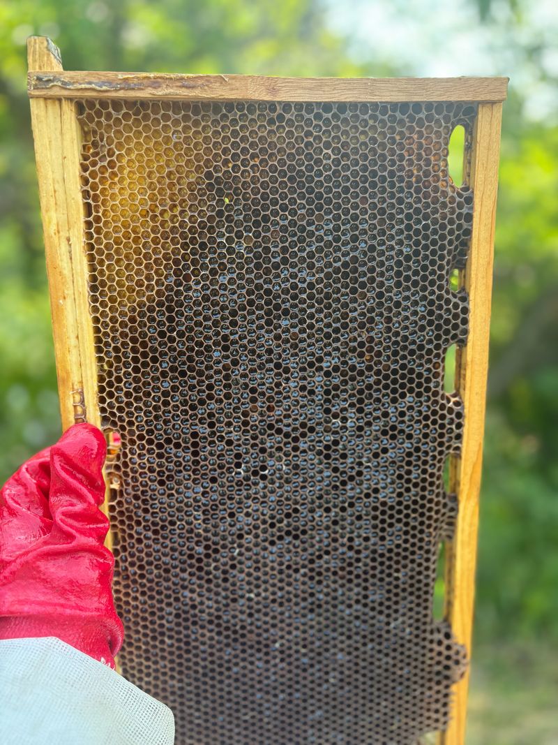 5월 말 장수에서 아카시아 채밀 완료했어요. 향긋한 벌집꿀 배부르게 먹었어요.