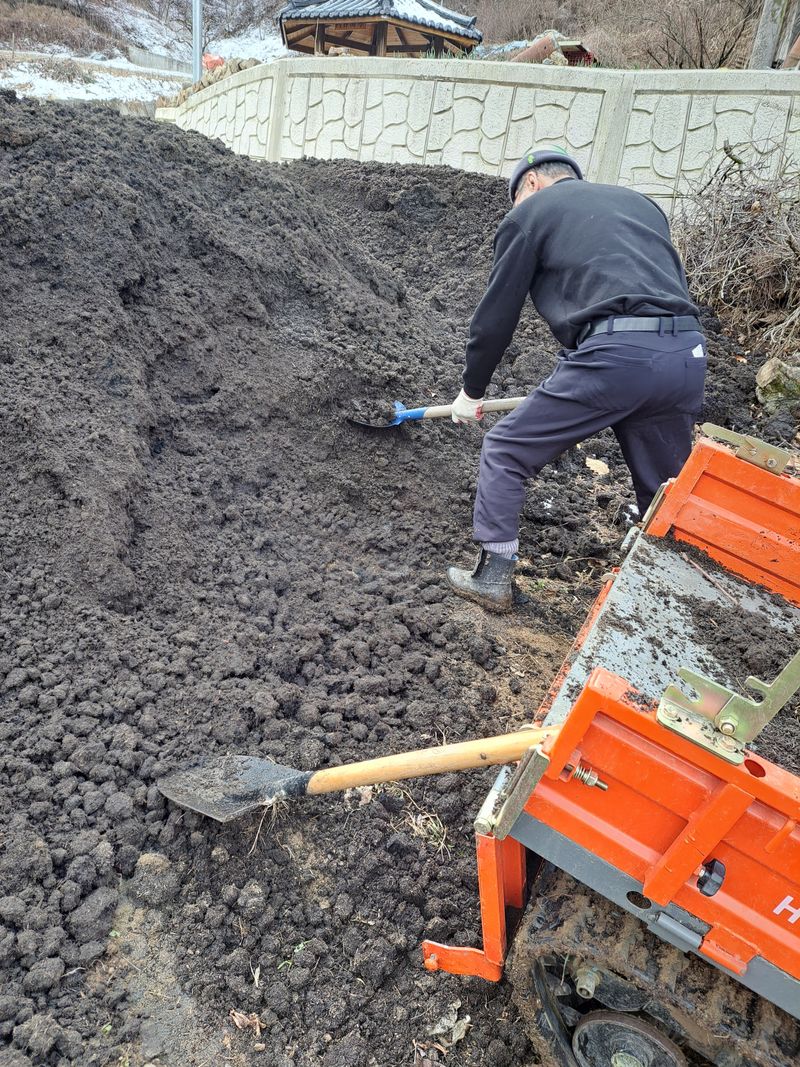 고추심을곳에 퇴비주었습니다. 부모가 힘들다고 농사일안해본딸이 거들어줘서 3천평 오전에 끝냈습니다.