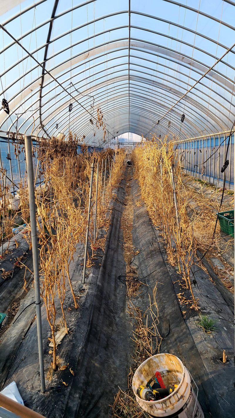 A동 하우스 정리. 작물제거와 집게 걷음 펌프2번째 고침 기온이 급하락 해서 얼어터짐.
