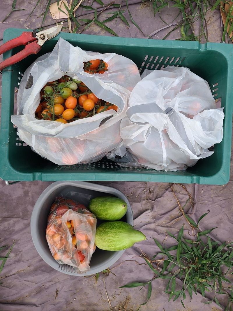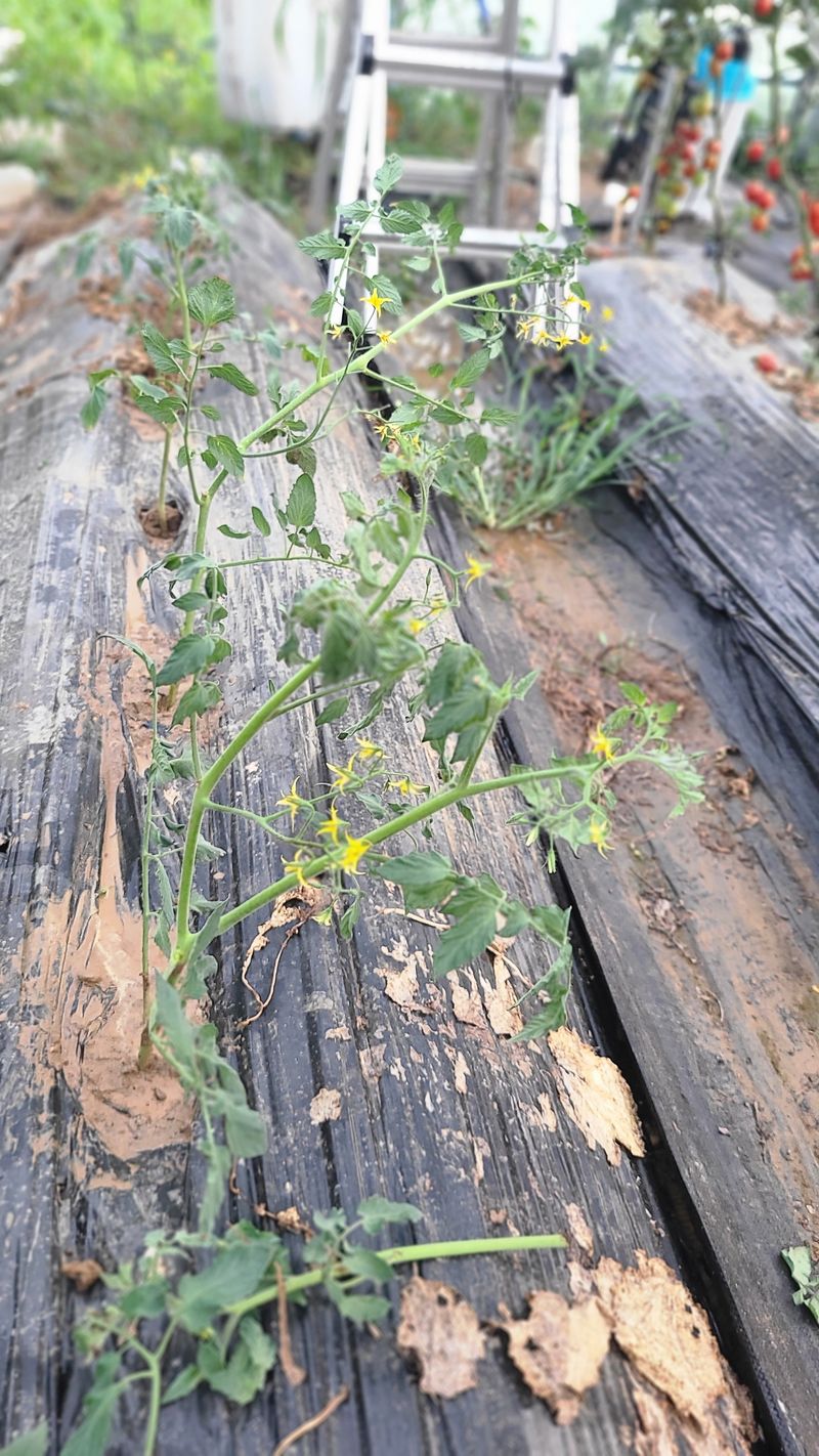 1.저번 작업때 방울토마토 3미터 이상 키 고정시킴(지난 금).-> 오늘 뺌. 이유: 위로 갈수록 6화방 이상의 꽃이 많이 떨어지고 달린건 1~5개 열매가 너무 작아짐. 2. 적심및 곁순 자름 3. 연일 폭염. 노지 물주기