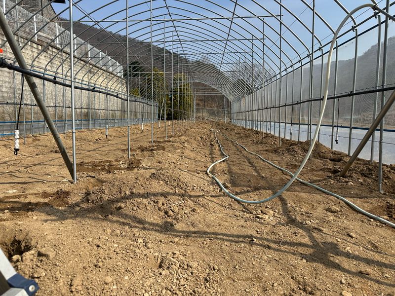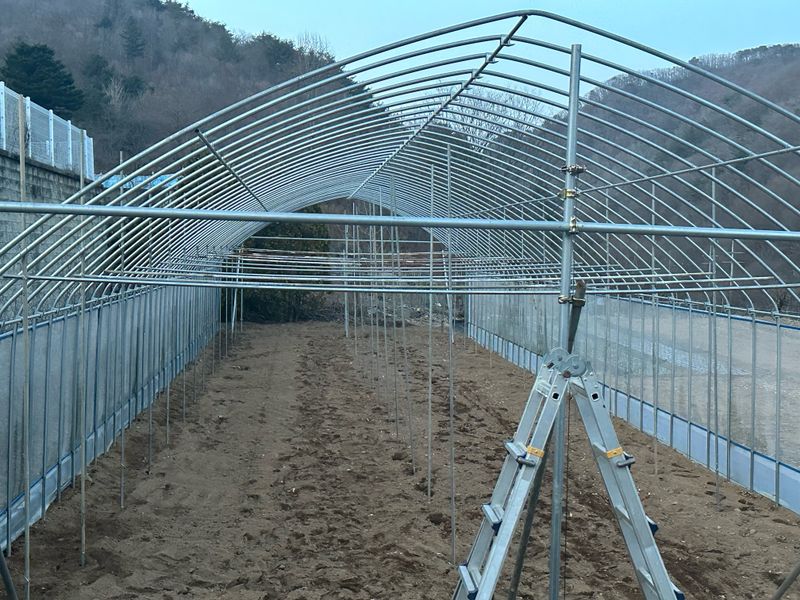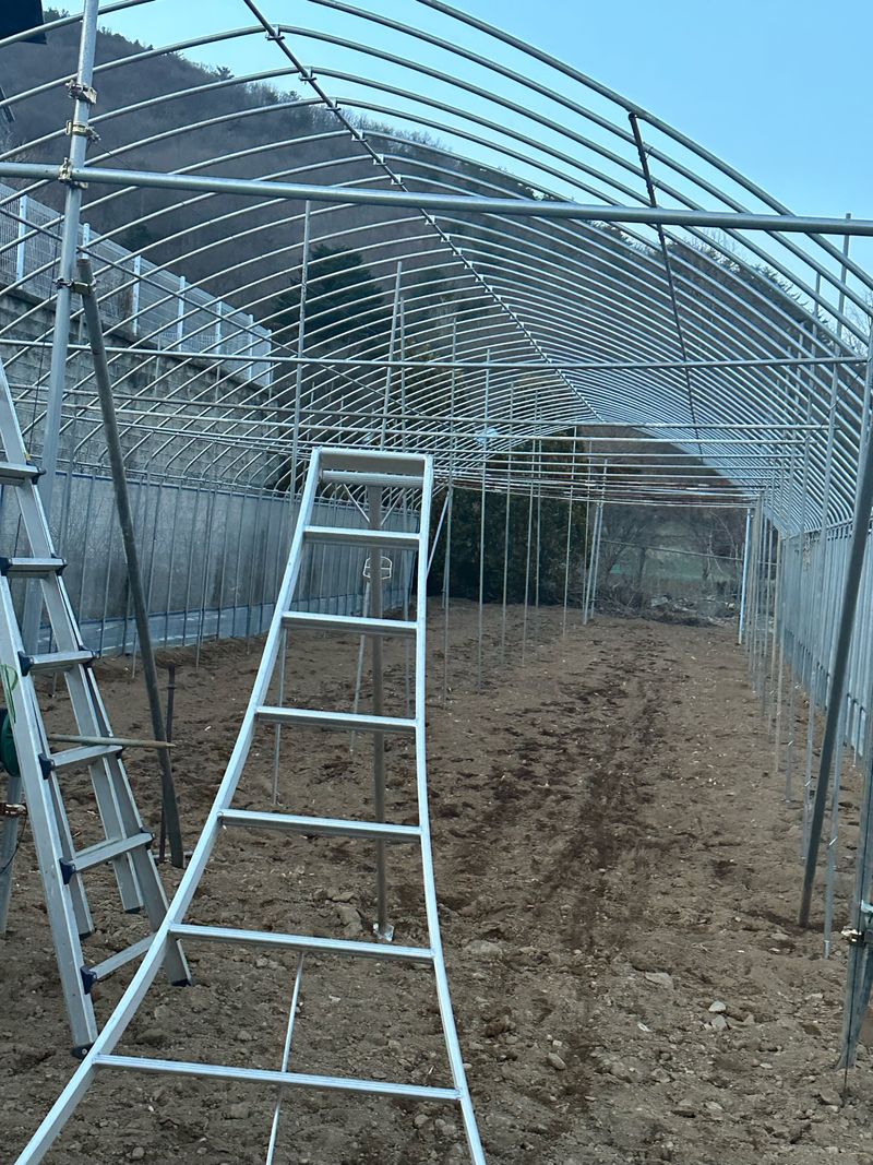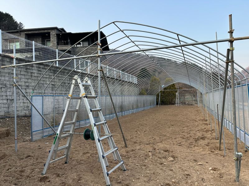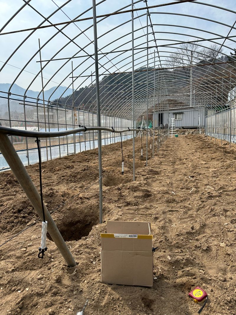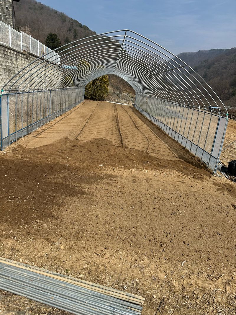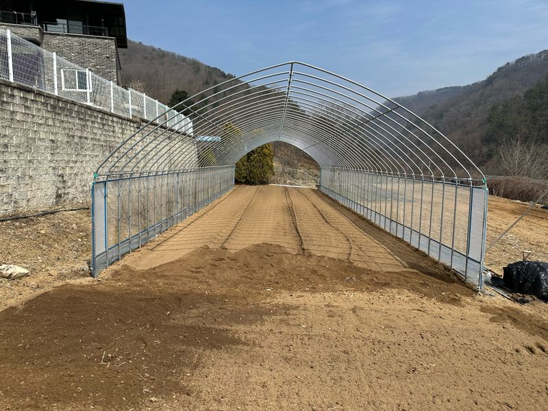 날씨흐림 하우스내 비닐 및 물호스 제거 완료 하우스 보조철제 제거 마늘밭 이랑 사이 부직포 설치