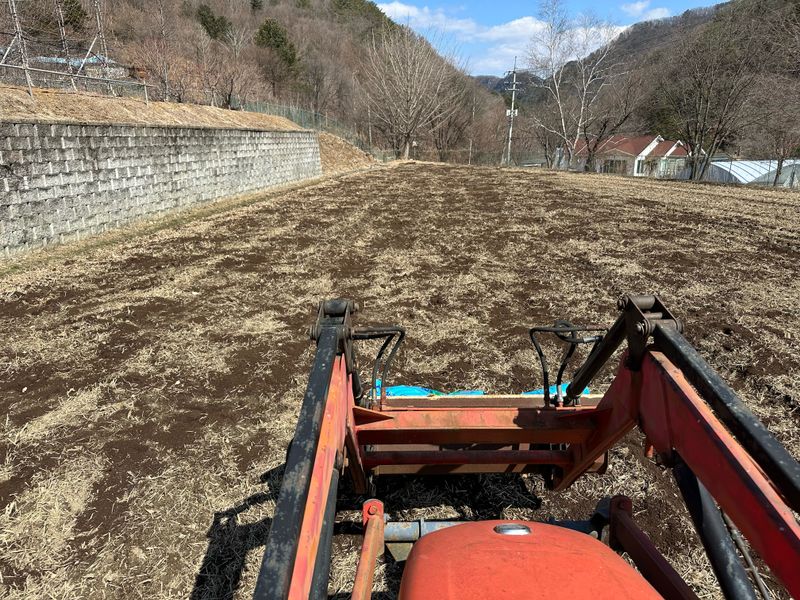 날씨맑음 감자 심을 곳 퇴비50포 살포 후 트렉터 로터리작업 완료