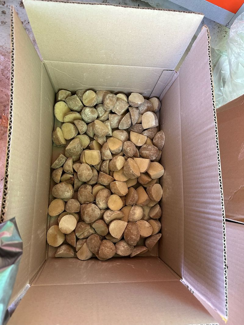 날씨맑음 사과묘목 심을곳 지줏대 세우기 및 기초작업 씨감자 자르기 후 소독하기