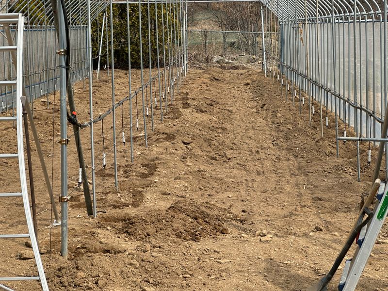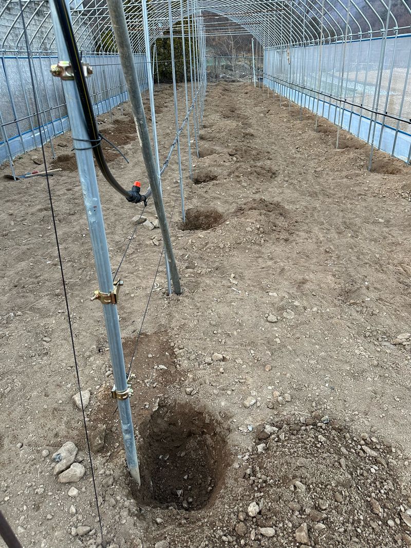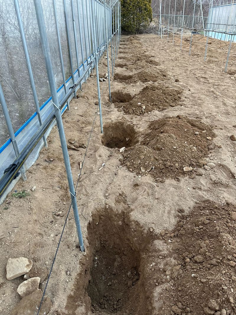 날씨맑음 하우스내 사과묘목 심을곳 중장비 작업 사과묘목 지줏대 세우기 기초작업