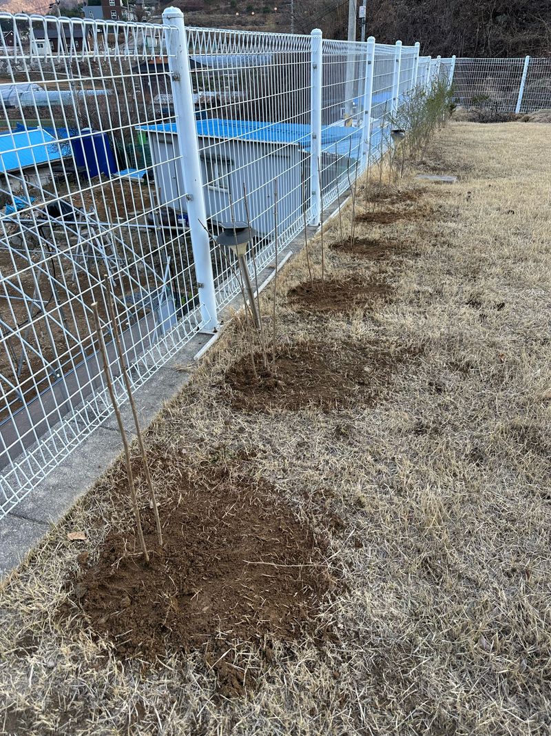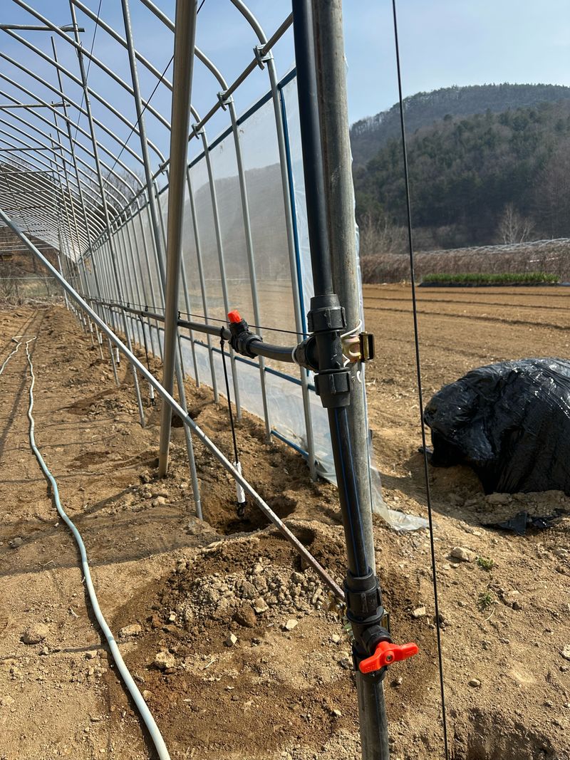 날씨맑음 사과묘목 심을곳 관수호스 교체 작업 완료