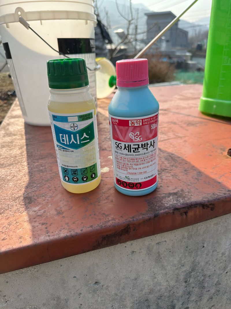 날씨맑음 복숭나무 자두나무 벌레약 살포