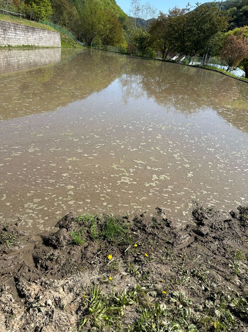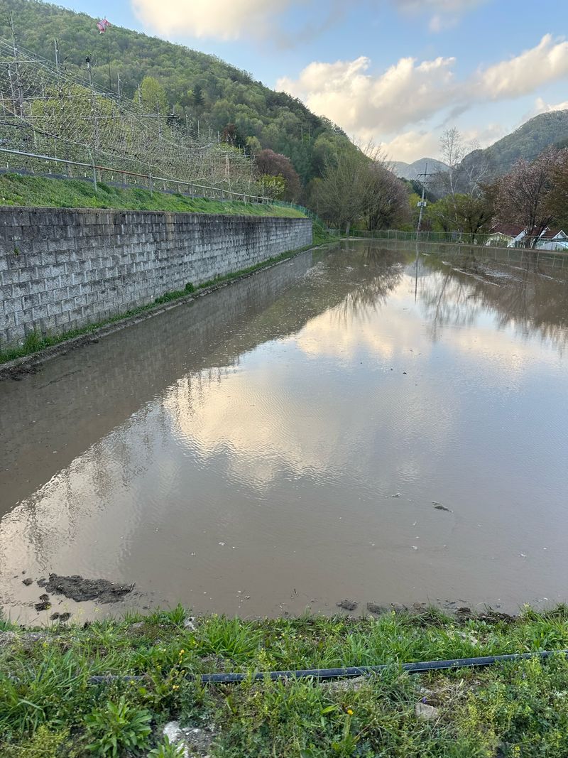 날씨맑음 논 석회석비료(5포) 맞춤19호(4포) 살포 논 물받기 시작