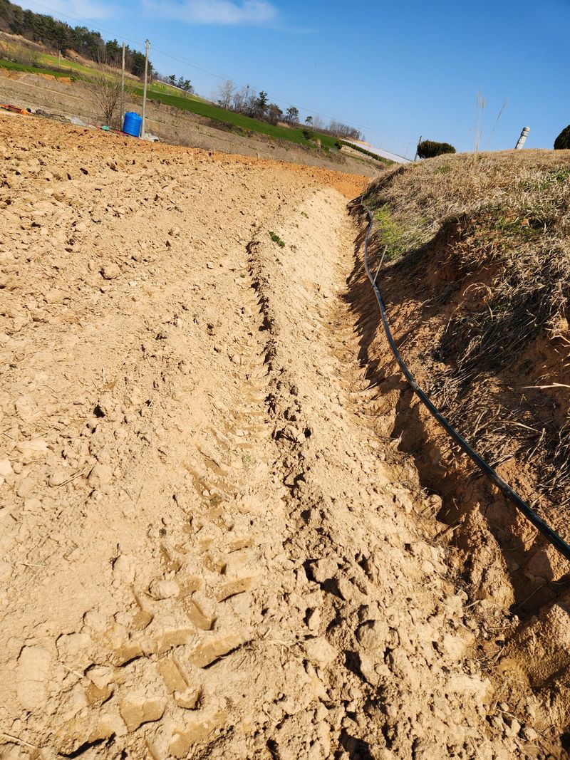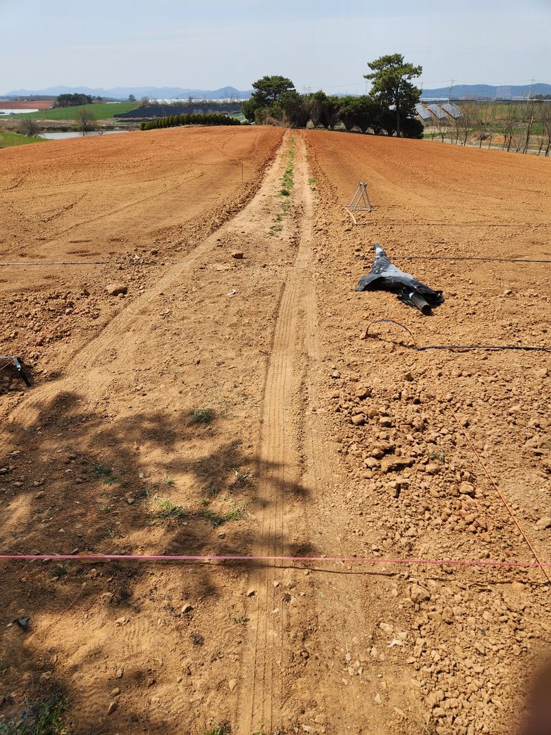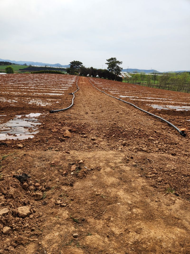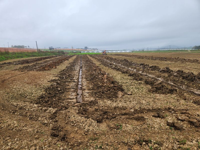 논에 시설하우스 시공전에 고랑파기 작업및 노지밭에 점적 관수 사전점검