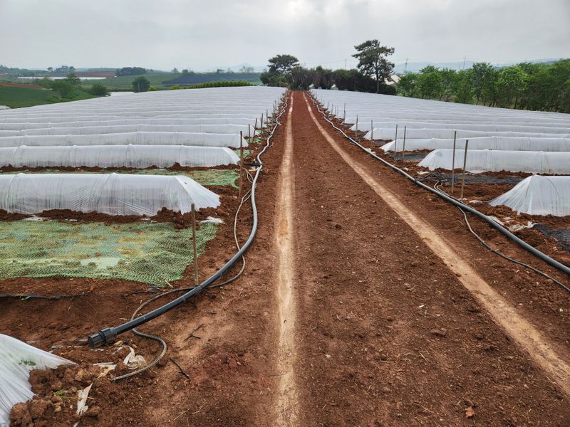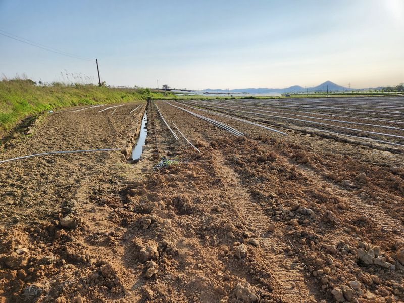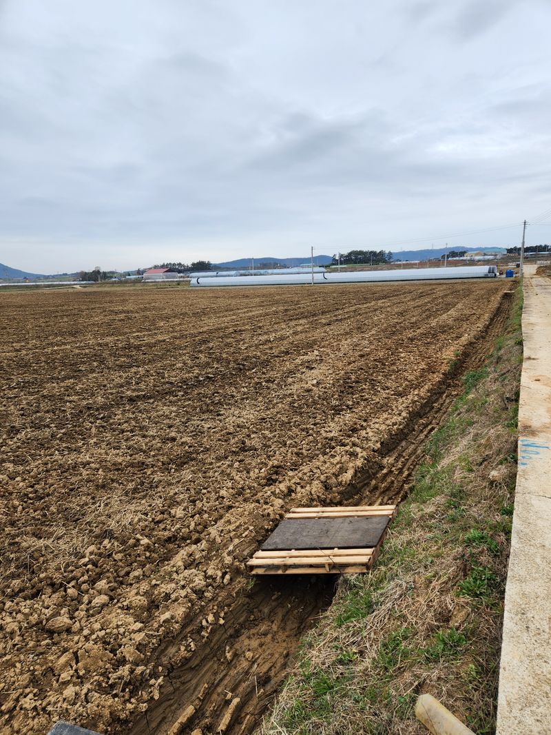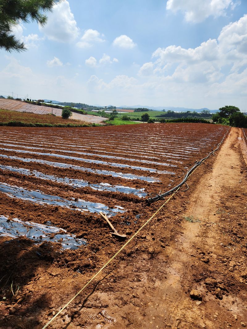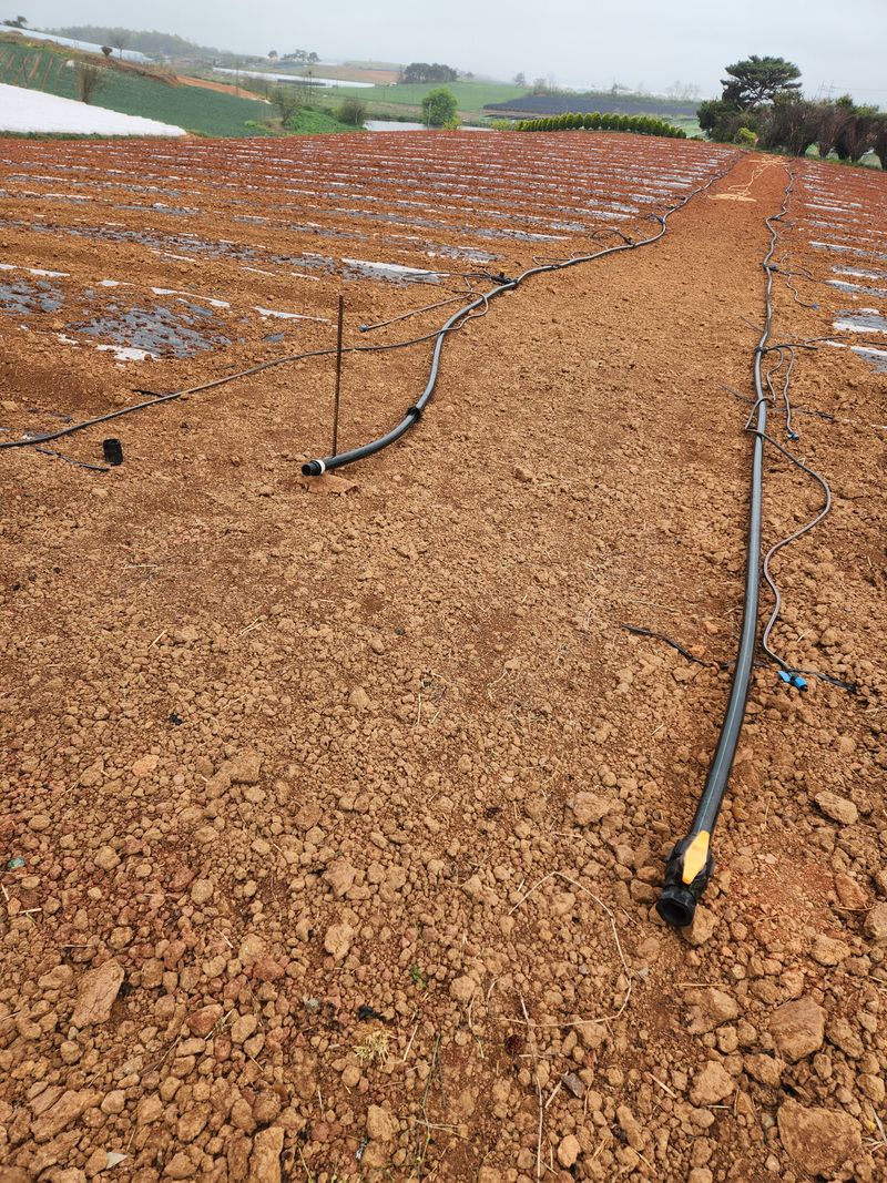 논에 시설하우스 시공전에 고랑파기 작업및 노지밭에 점적 관수 사전점검