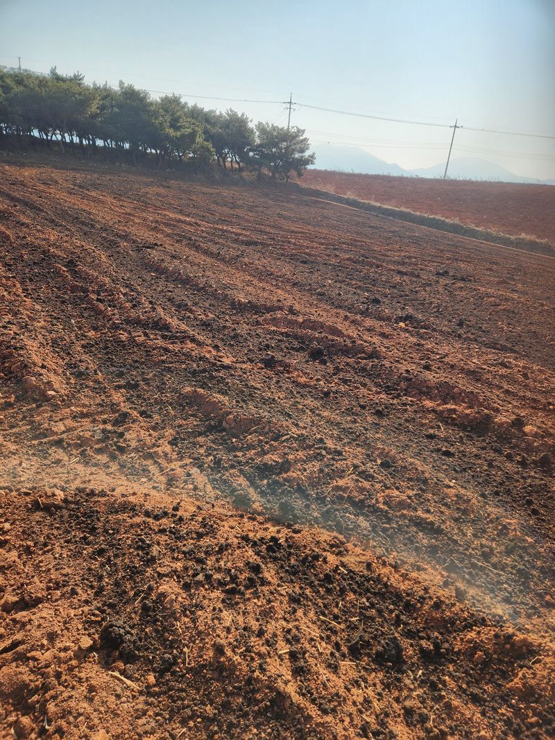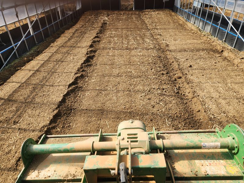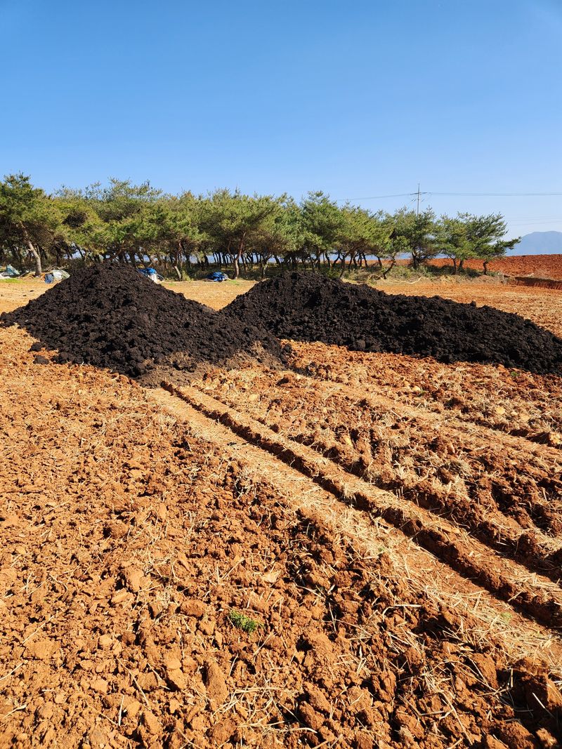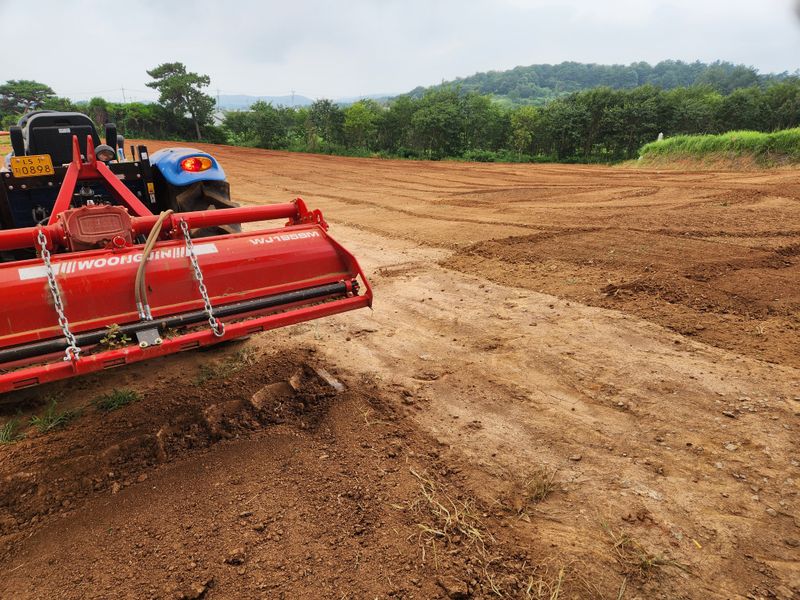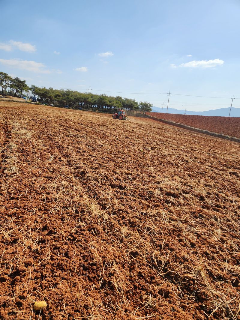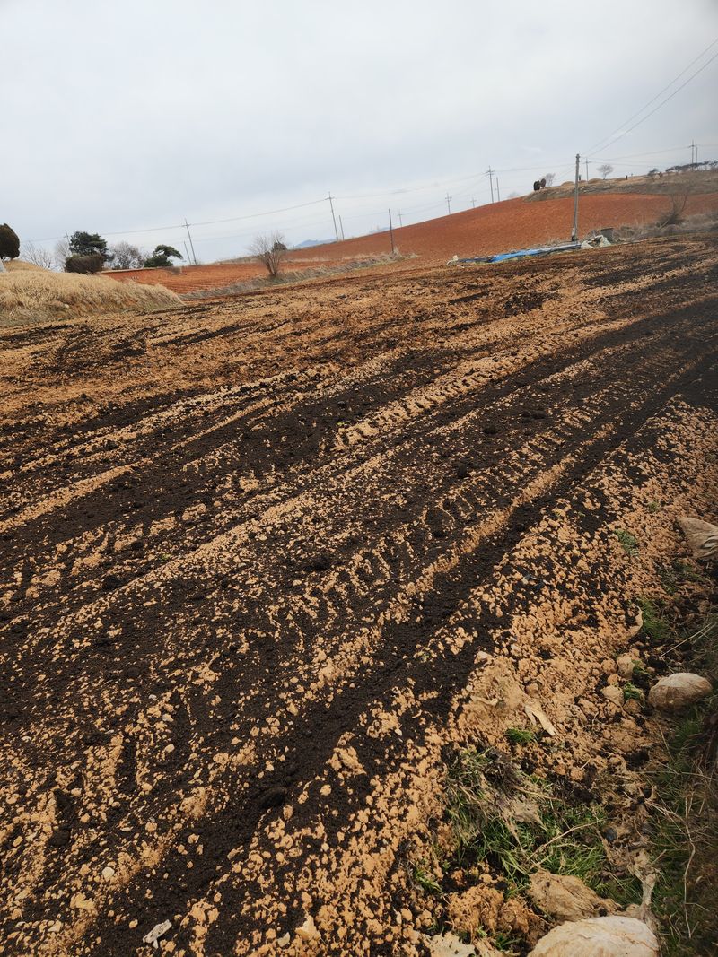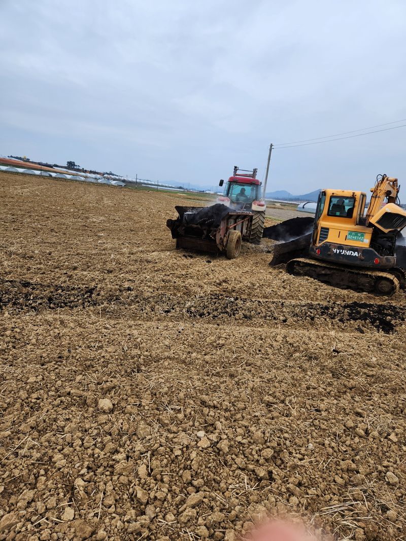퇴비살포후 노지밭 쟁기로 갈아 뒤집기