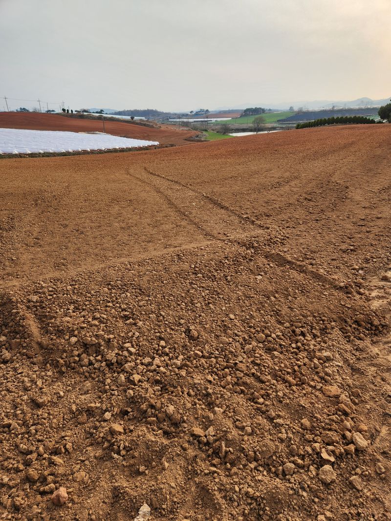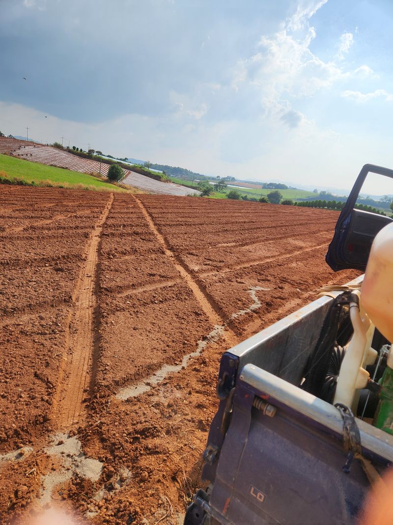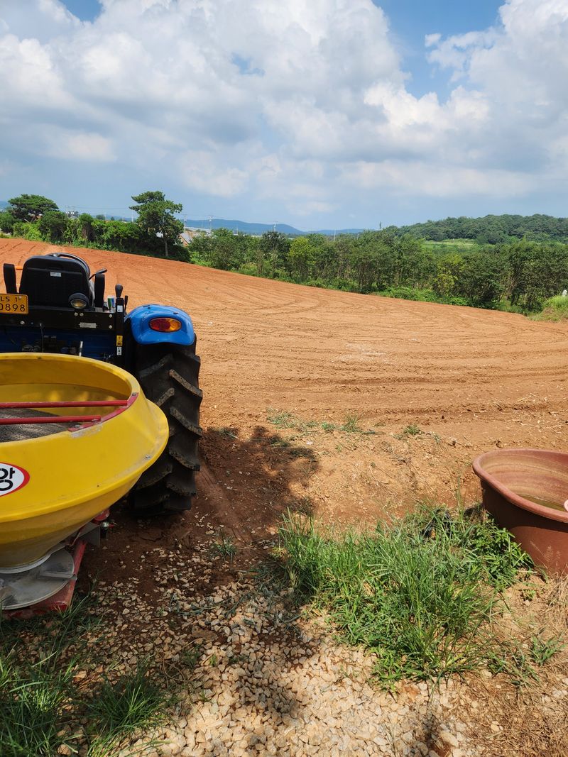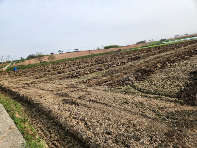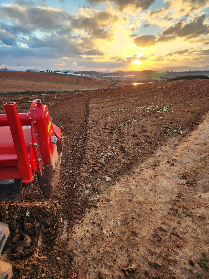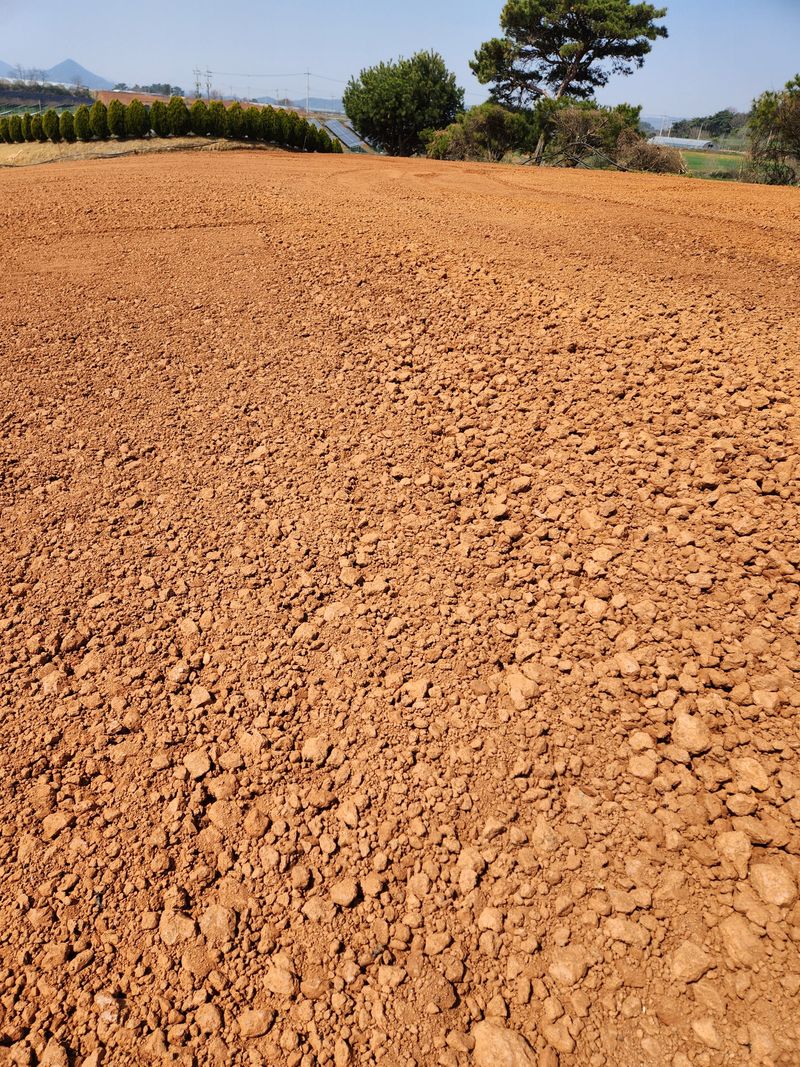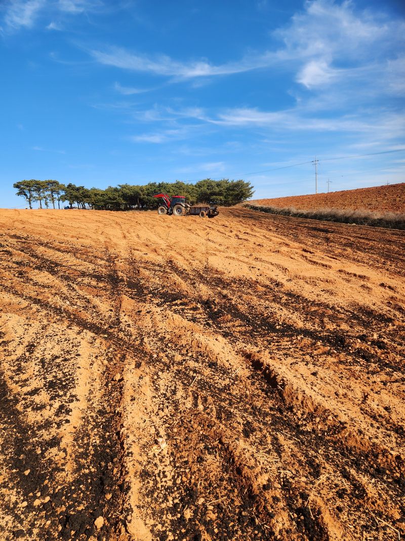 퇴비살포후 노지밭 쟁기로 갈아 뒤집기