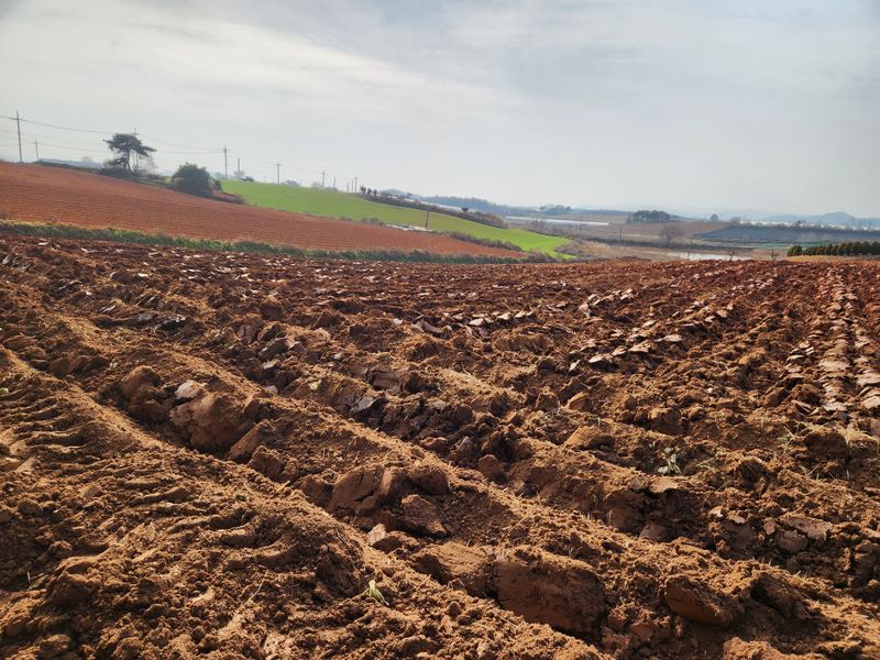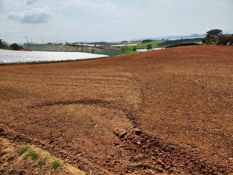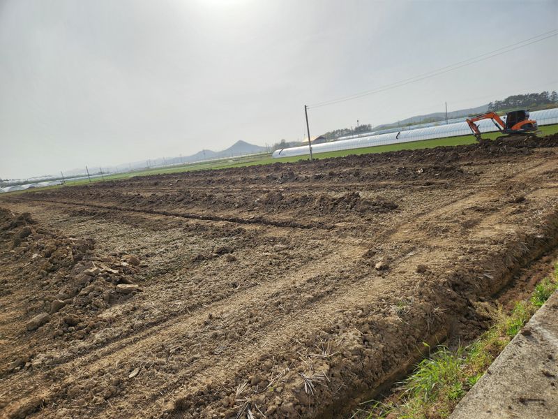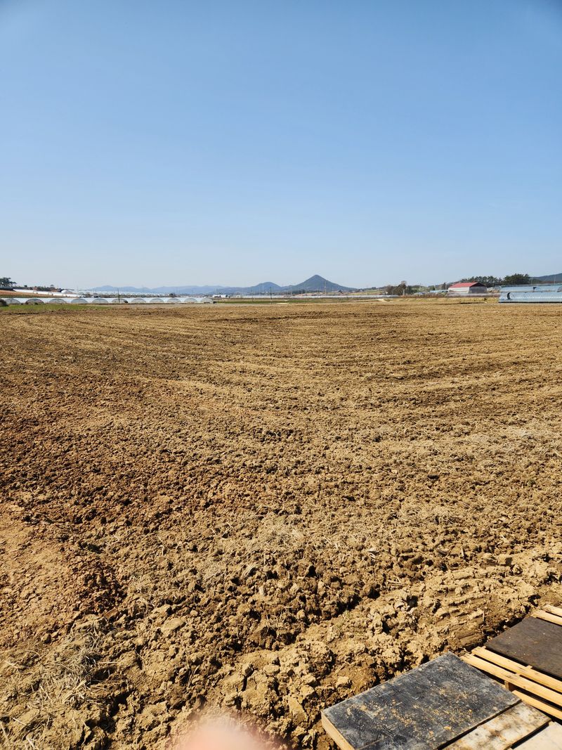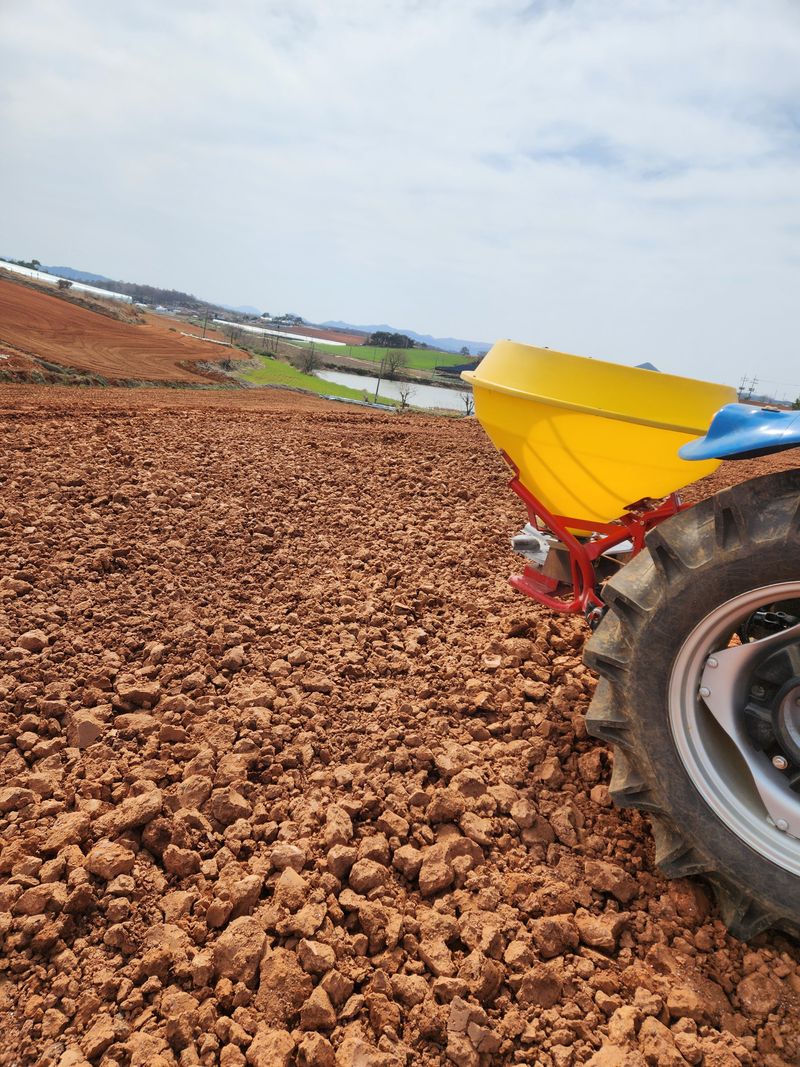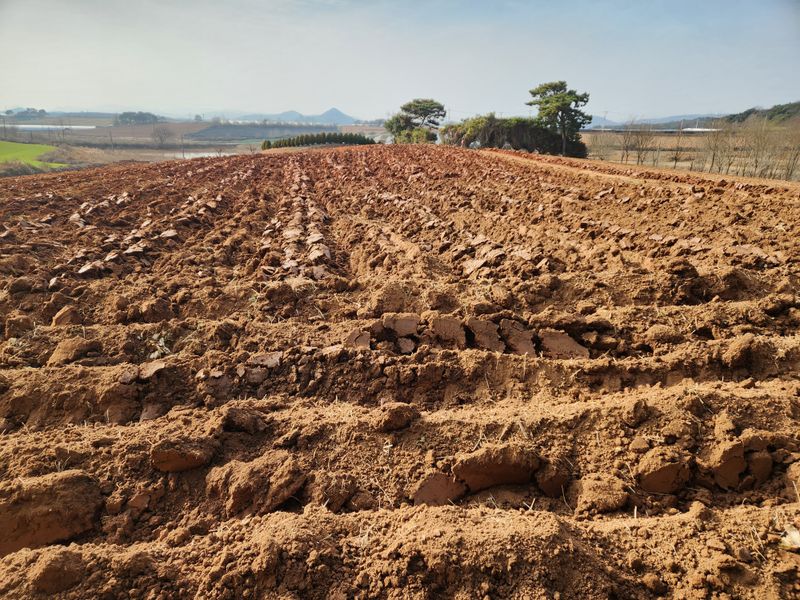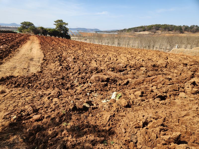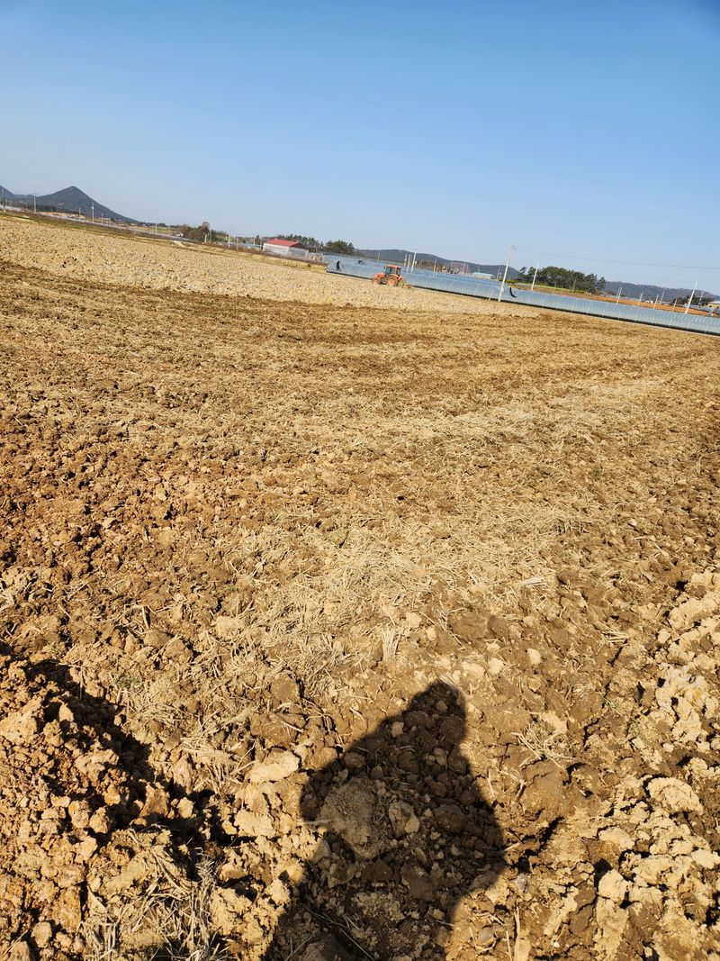퇴비살포후 노지밭 쟁기로 갈아 뒤집기