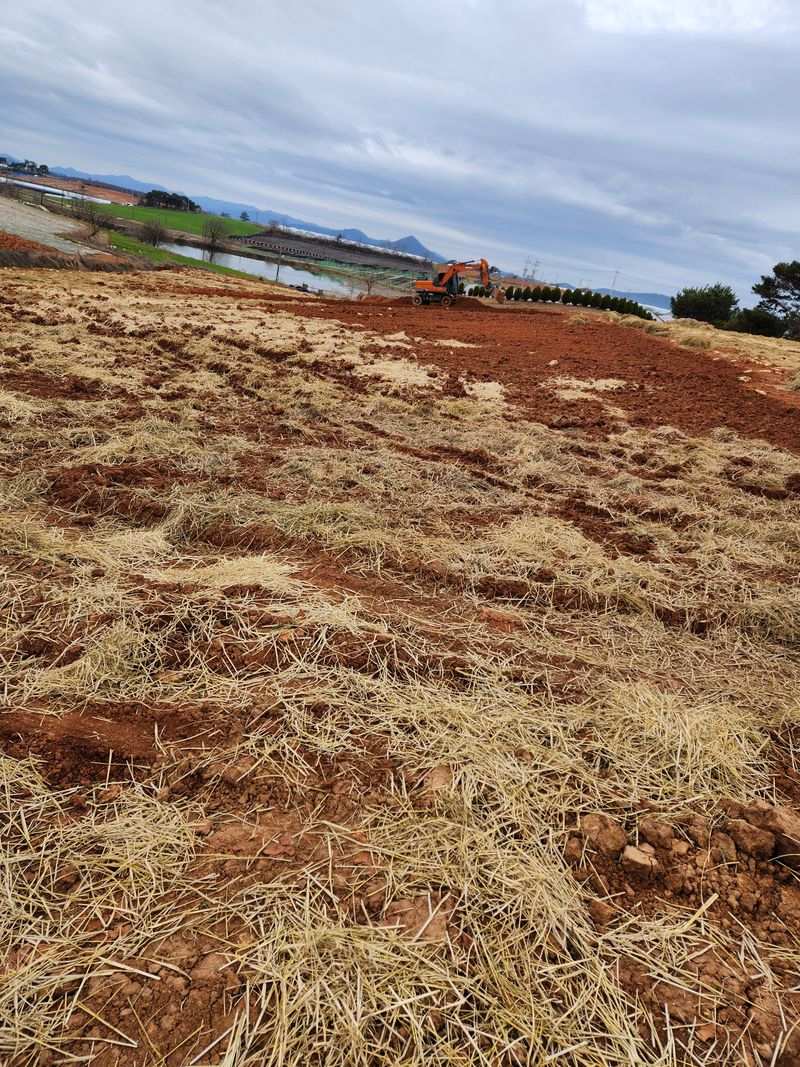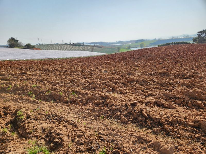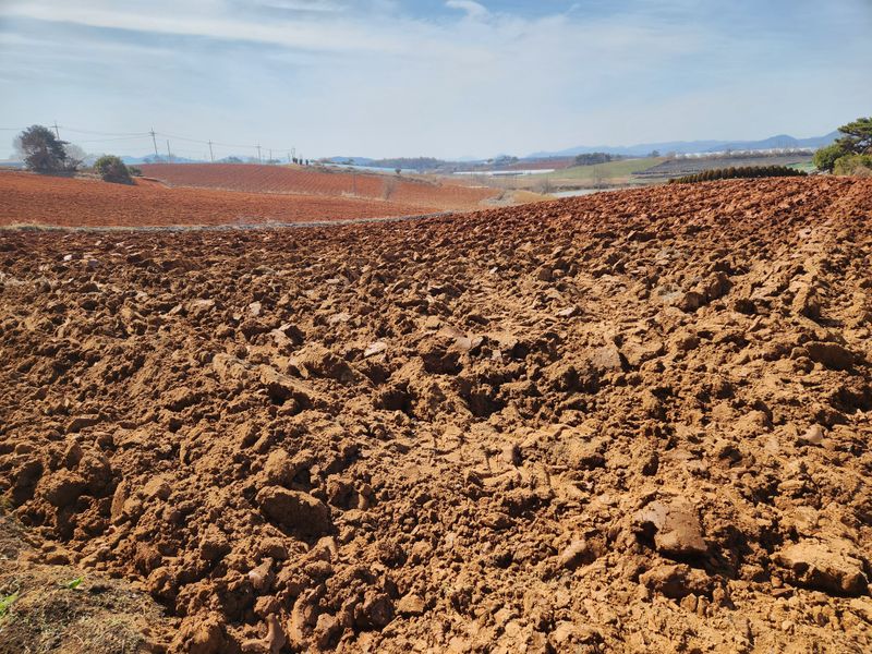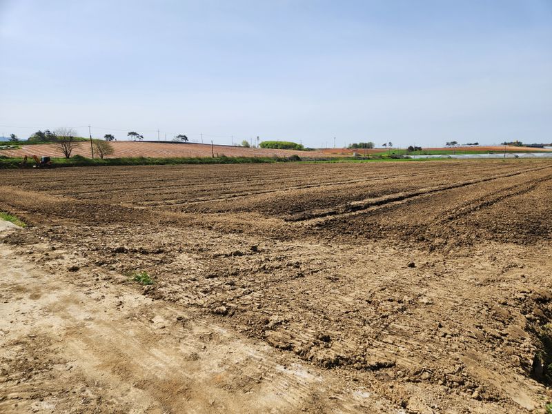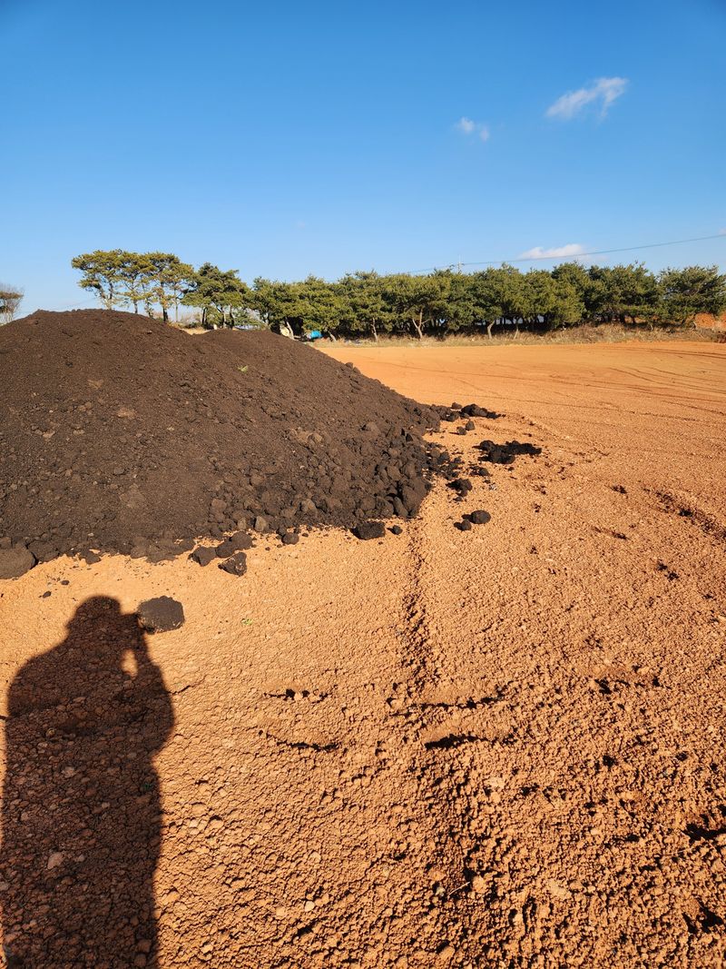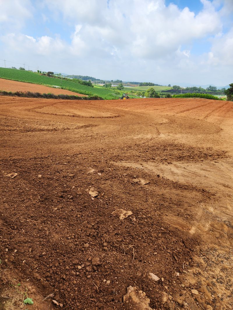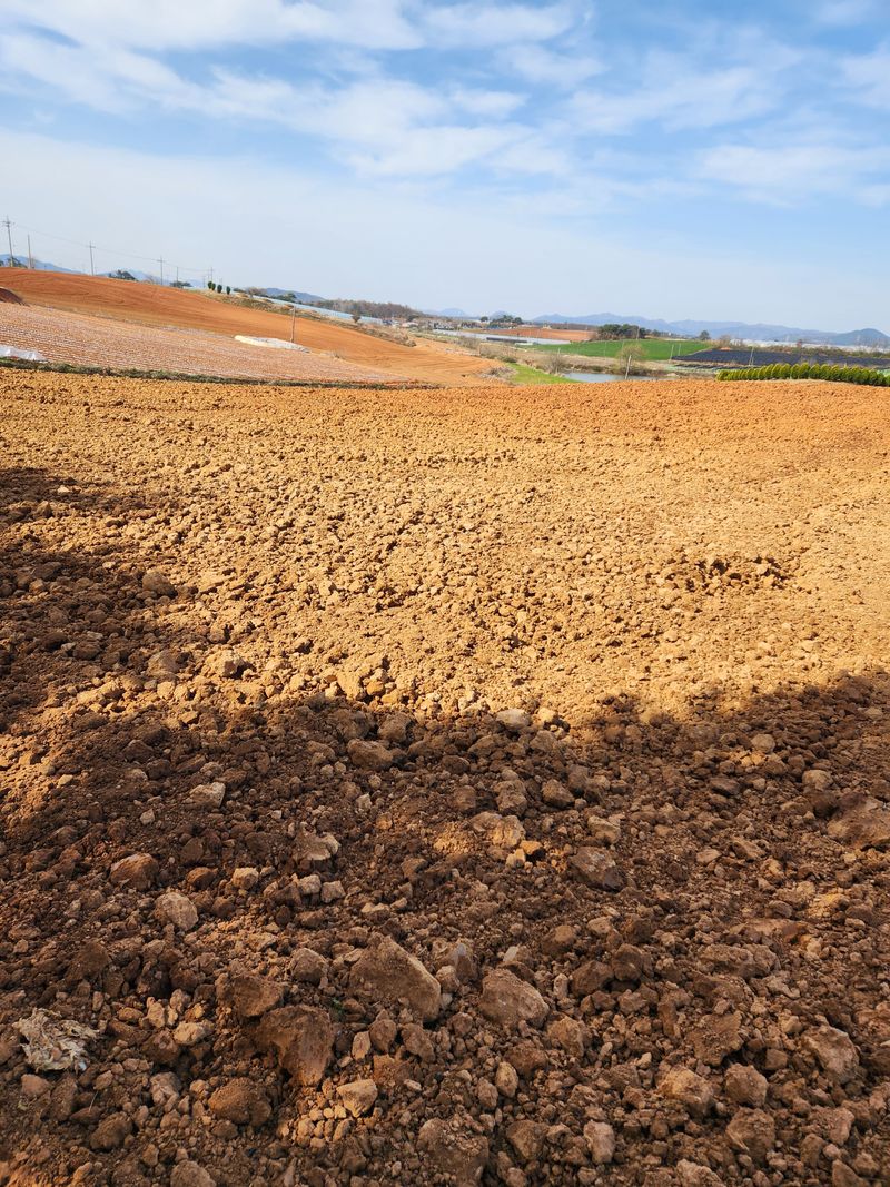퇴비살포후 노지밭 쟁기로 갈아 뒤집기