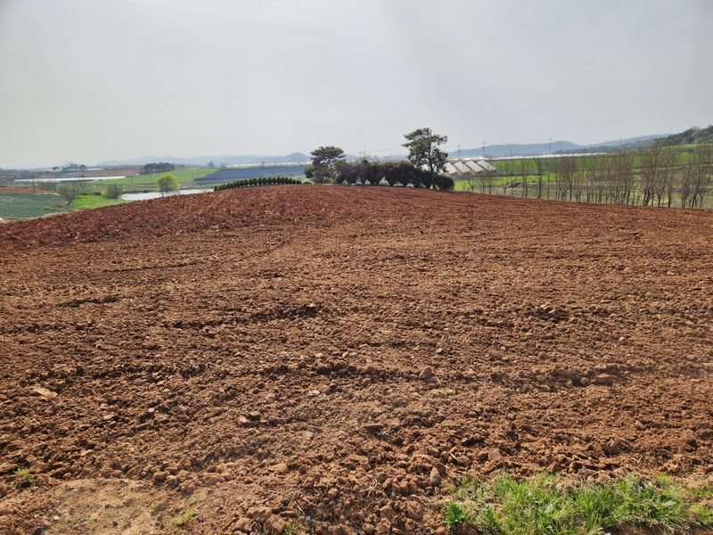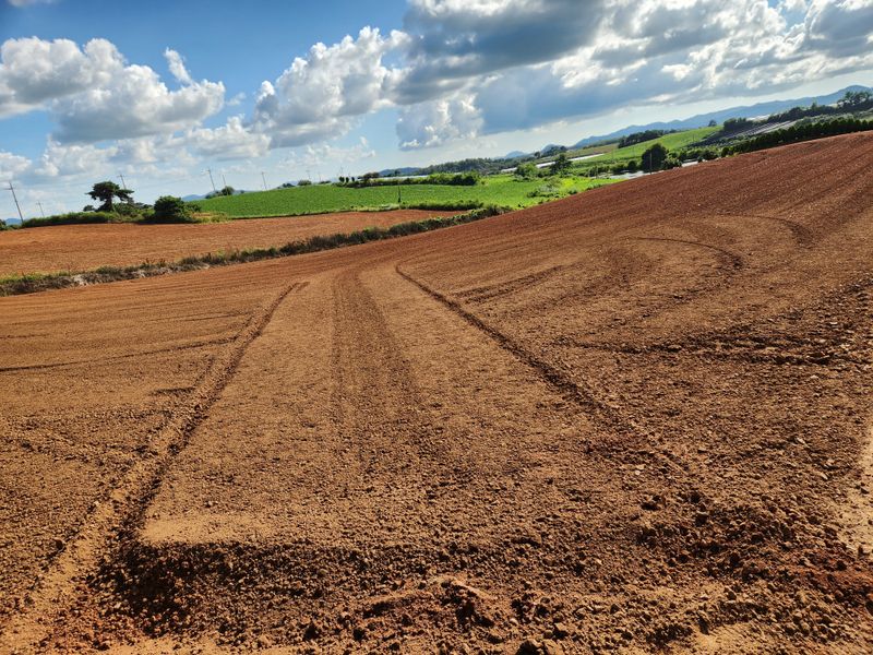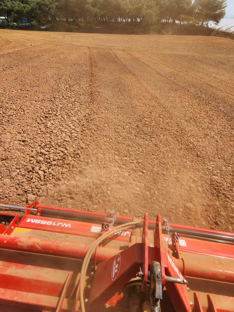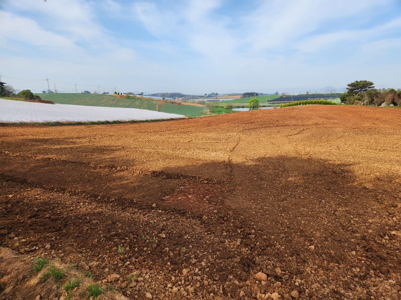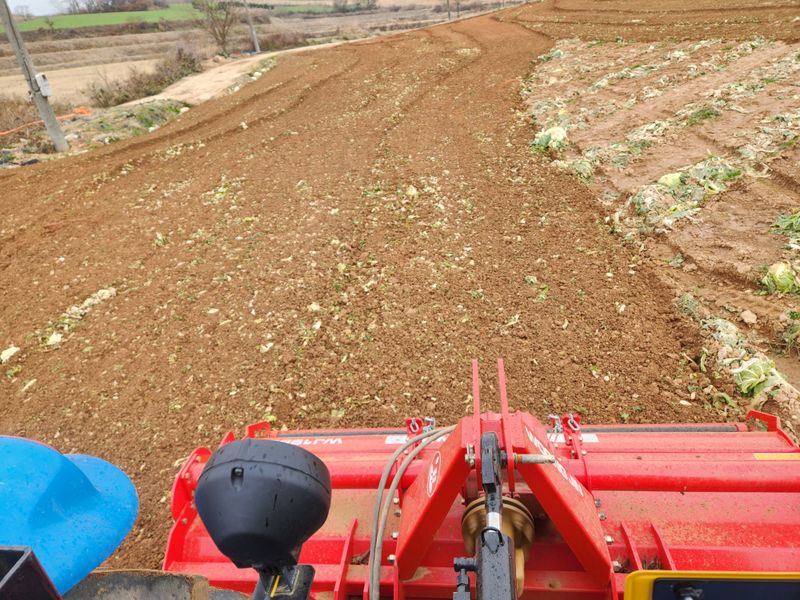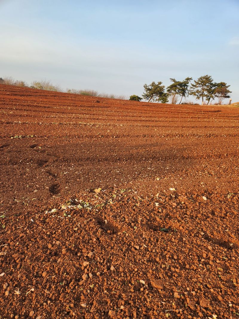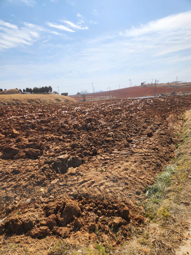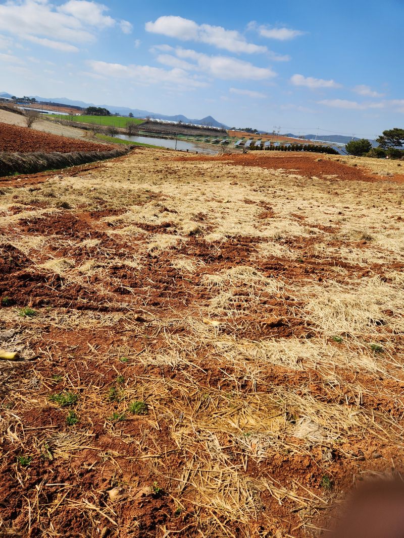 퇴비살포후 노지밭 쟁기로 갈아 뒤집기