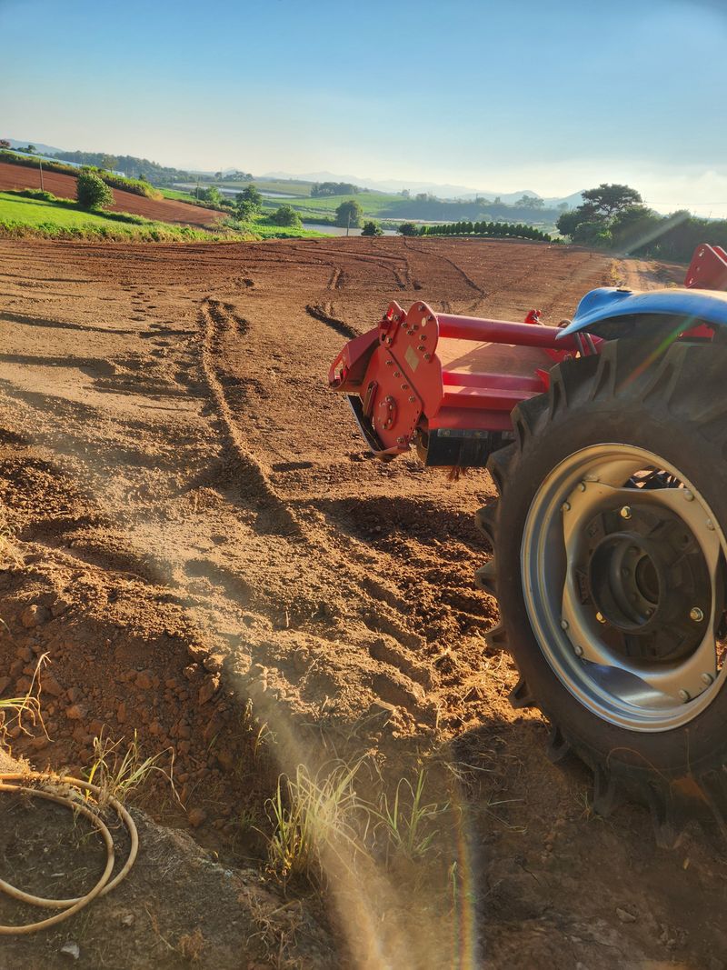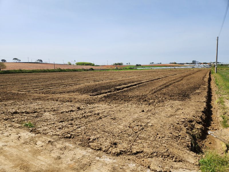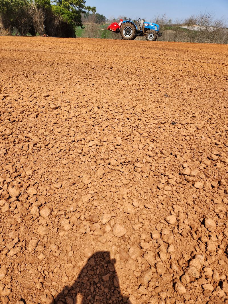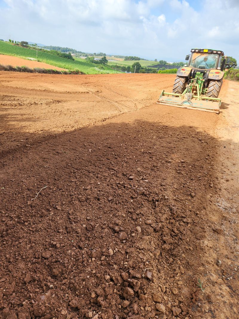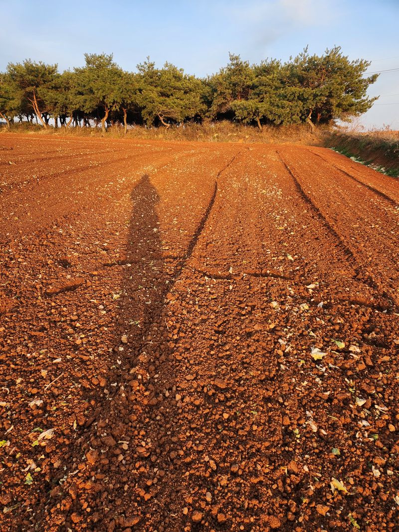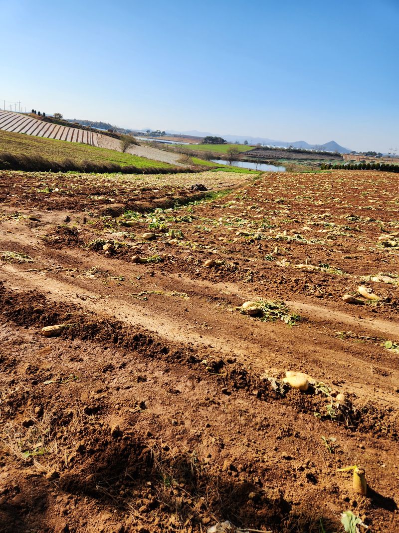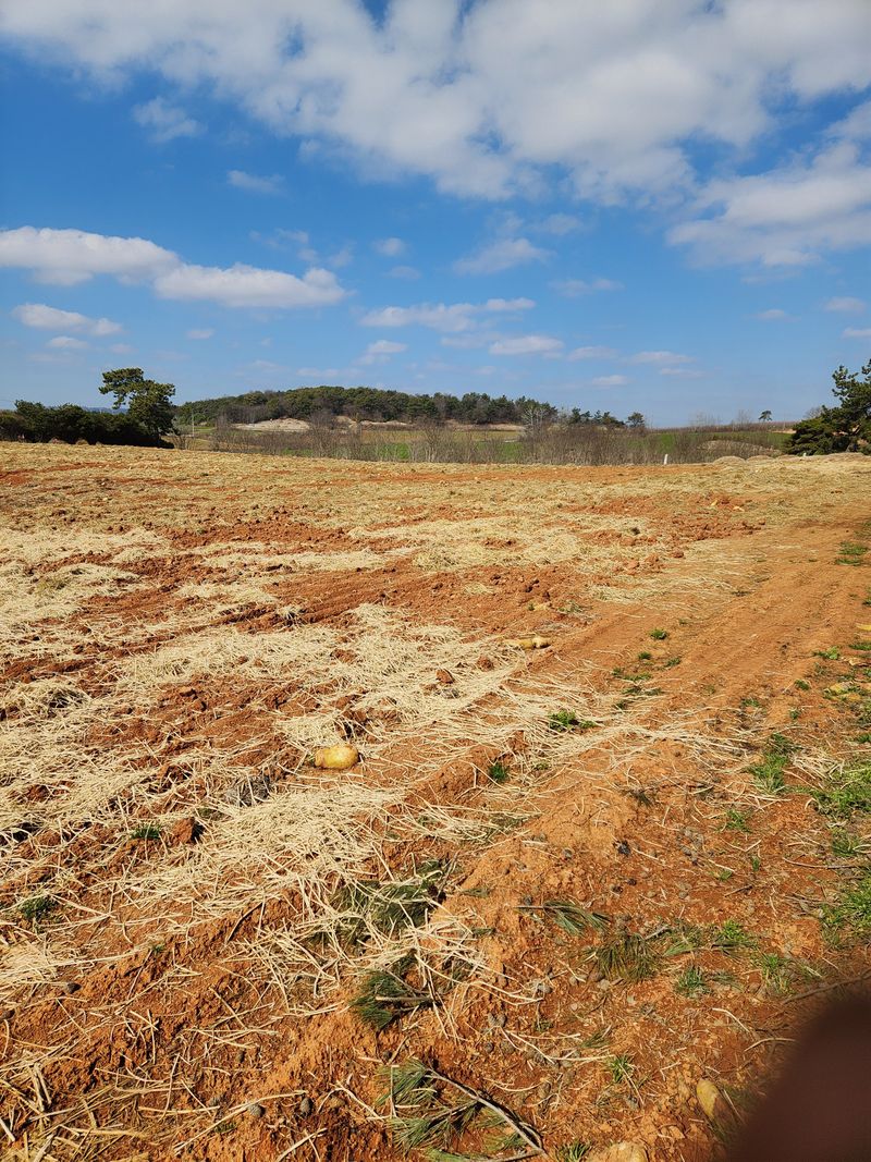퇴비살포후 노지밭 쟁기로 갈아 뒤집기