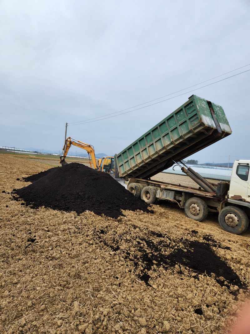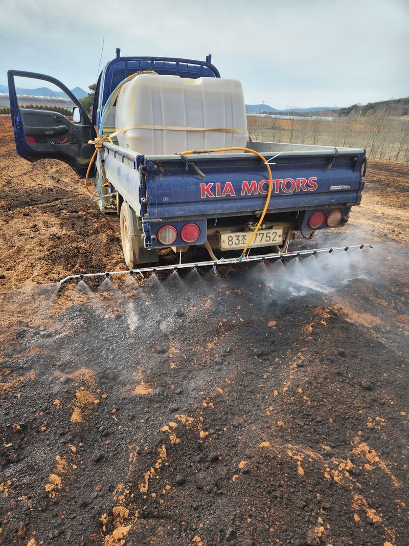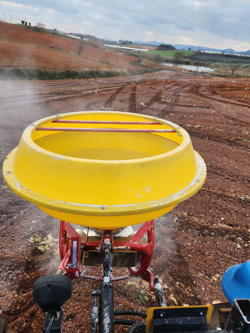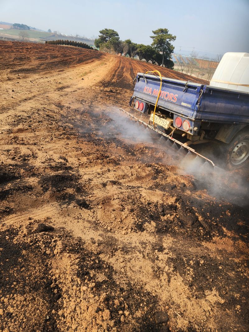 노지수박밭 준비작업. 로타리.가축분퇴비 80톤 살포. 석회살포90포