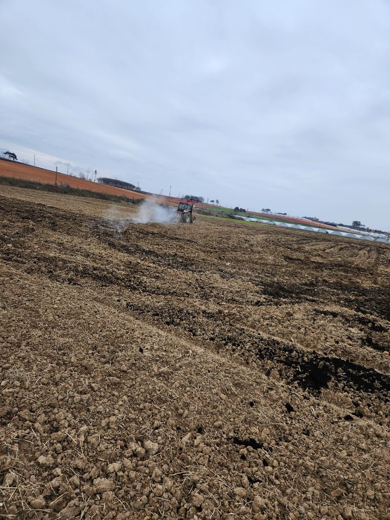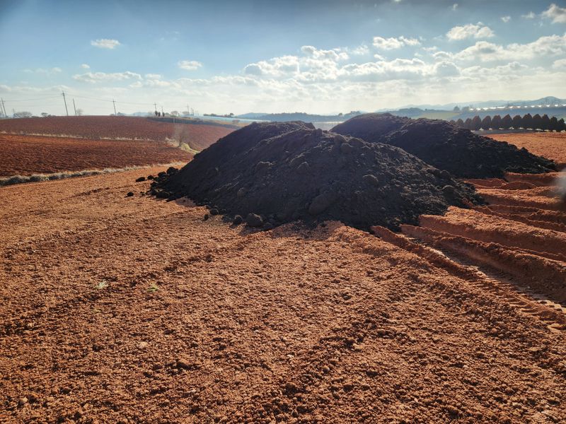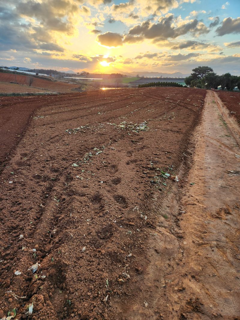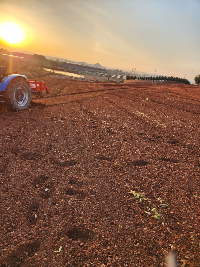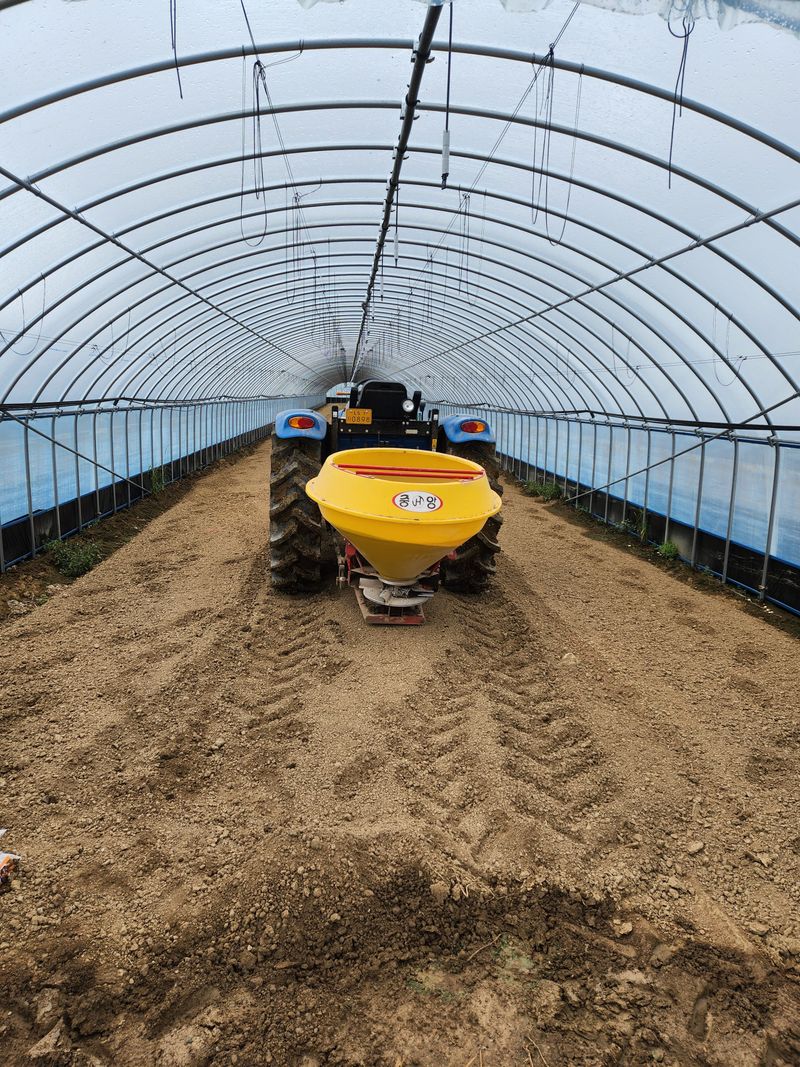 노지수박밭 준비작업. 로타리.가축분퇴비 80톤 살포. 석회살포90포