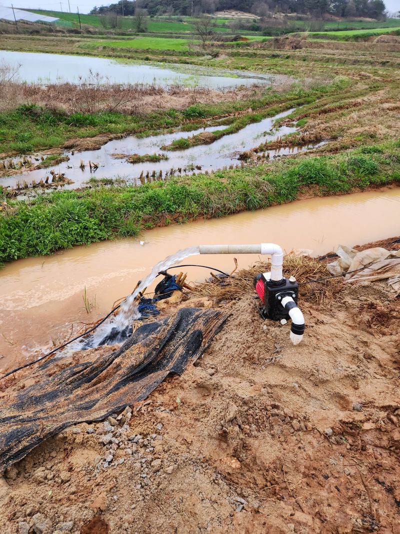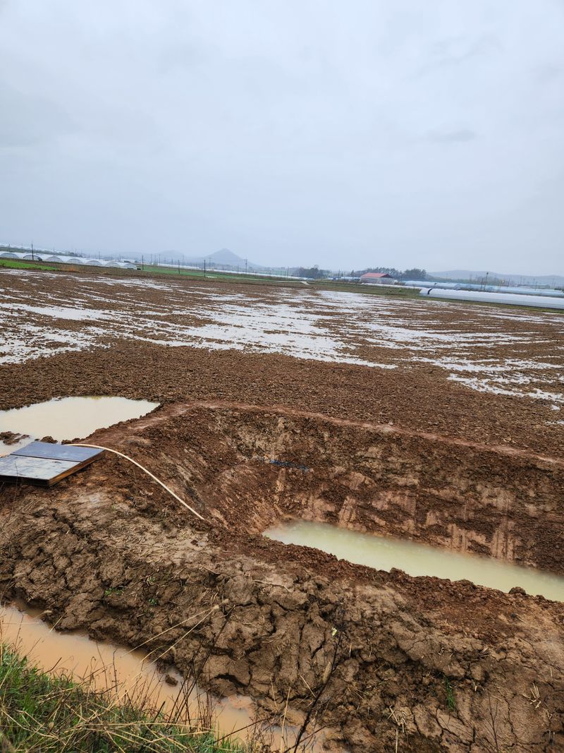 논에 물이 말라야 그곳에 시설 하우스 시공해서 수박 심어서 여름장사 해야 되는데 마르지 않아서 계획에 차질이 생겼네요.