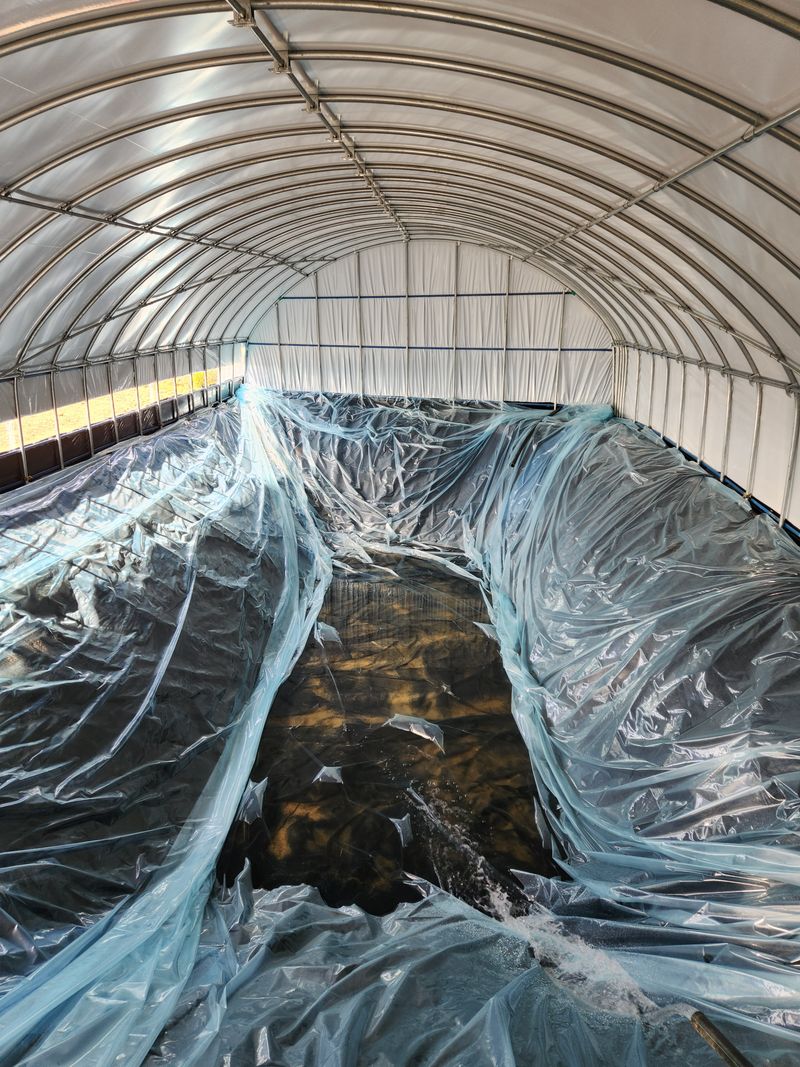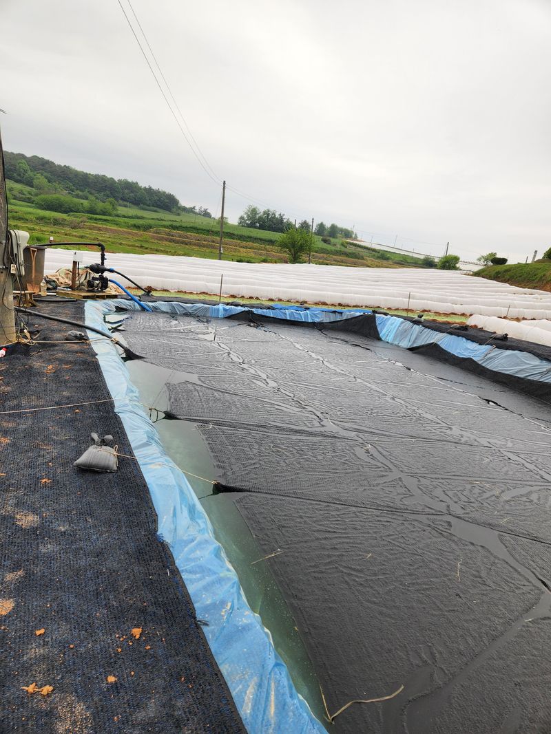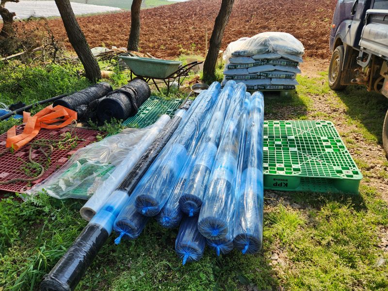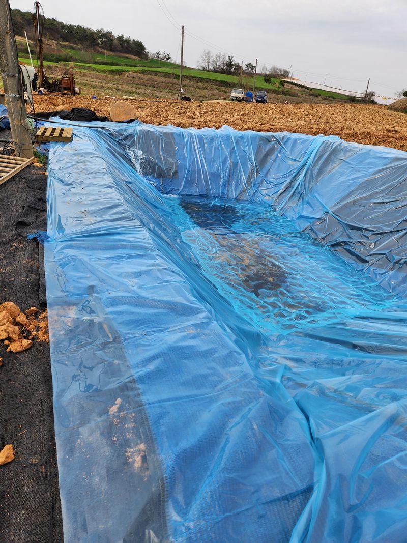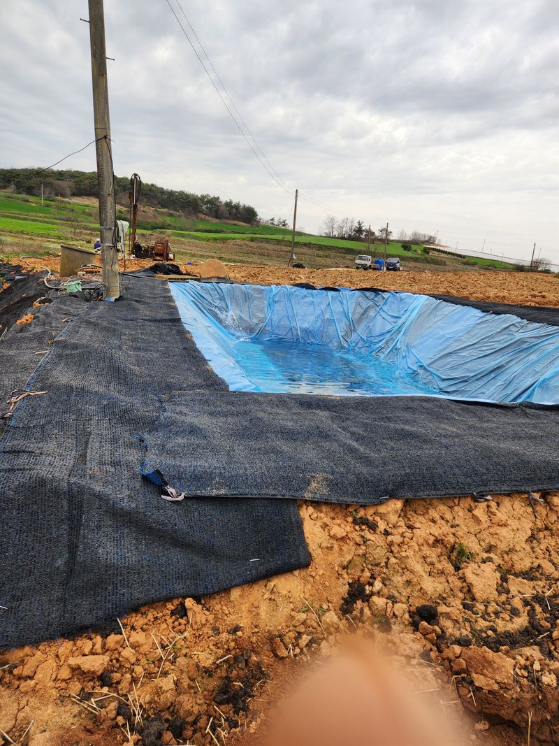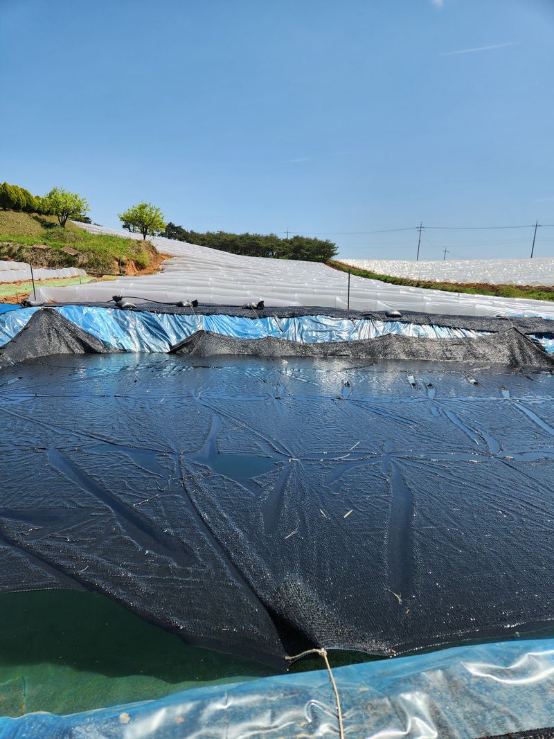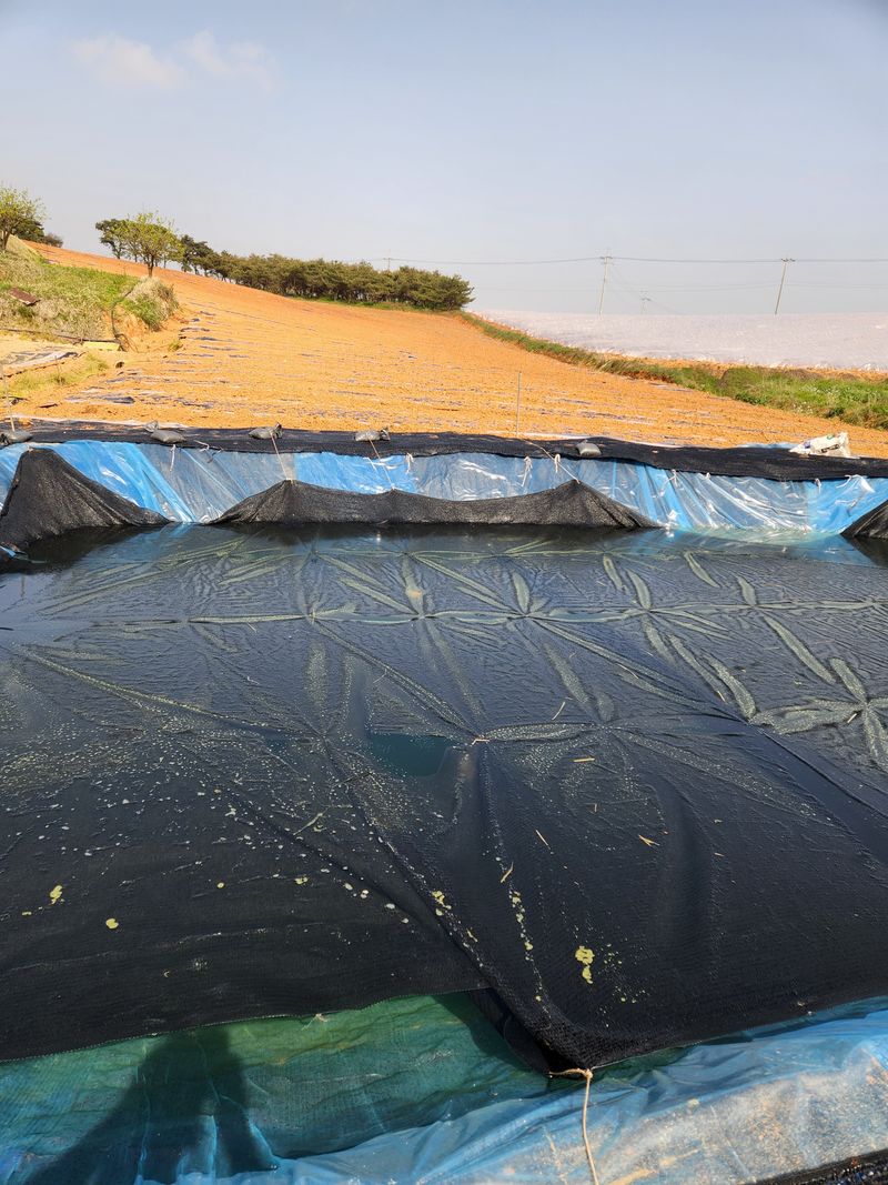 관수용 물땡크 부직포 깔고 비닐 씌우기. 관수용 샴파기 작업