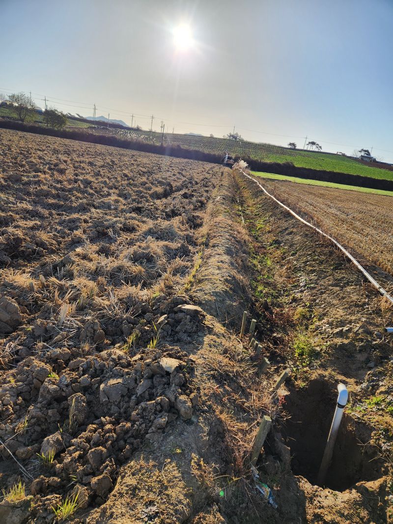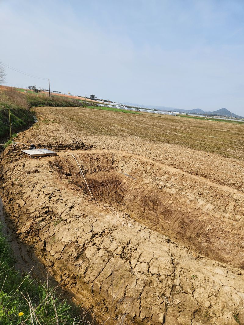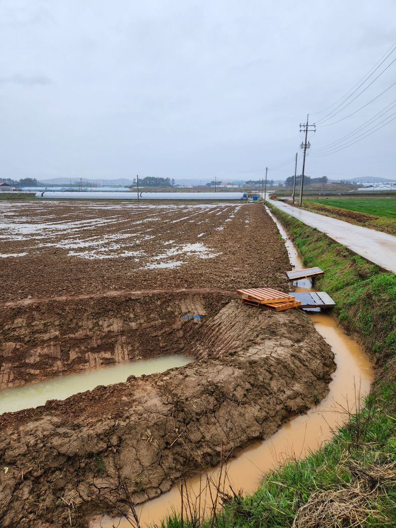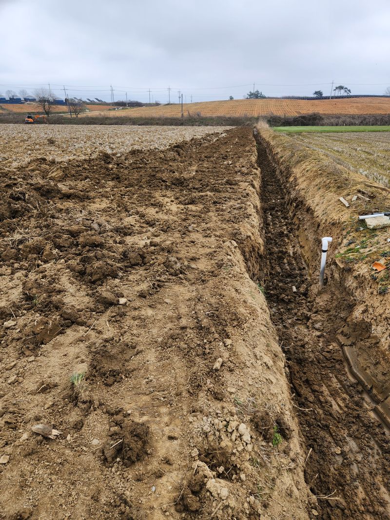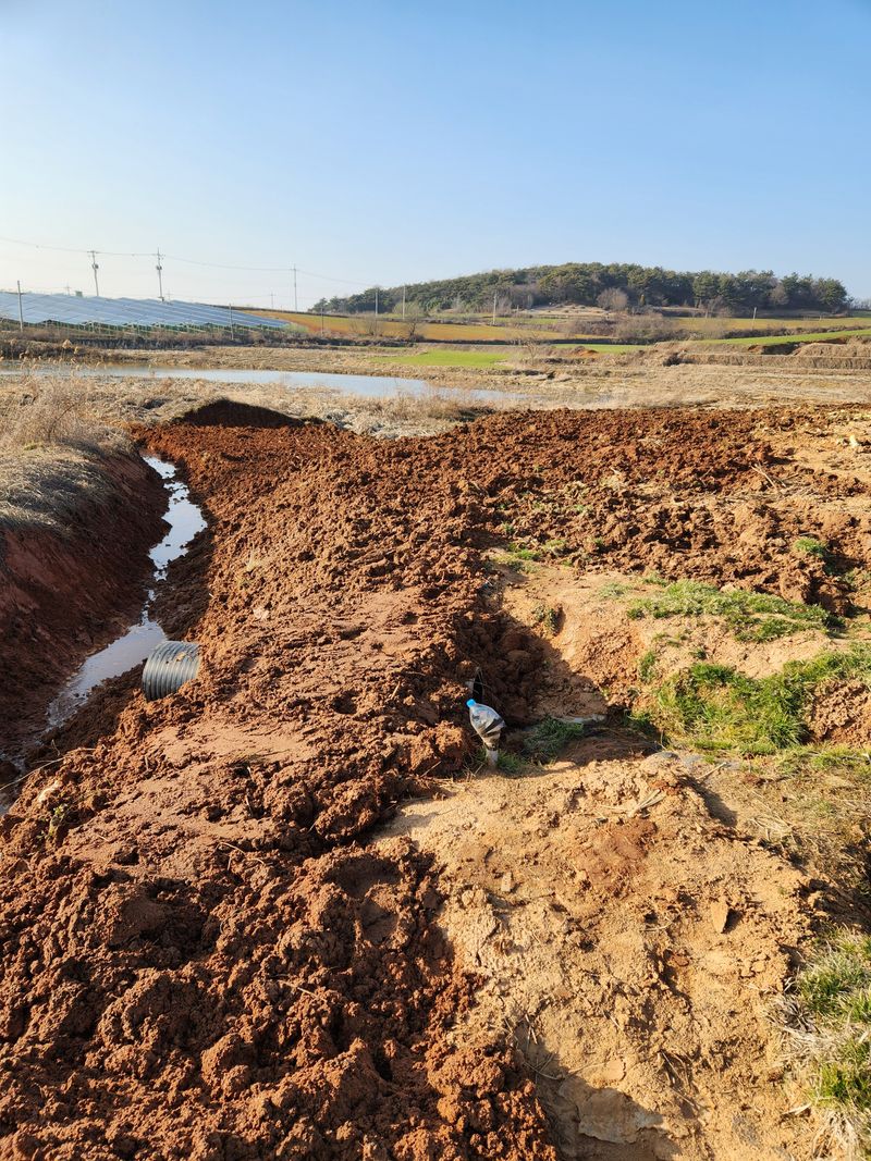 천년동안 벼농사 하던곳에 시설하우스로 전환하기 위해 배수로 작업