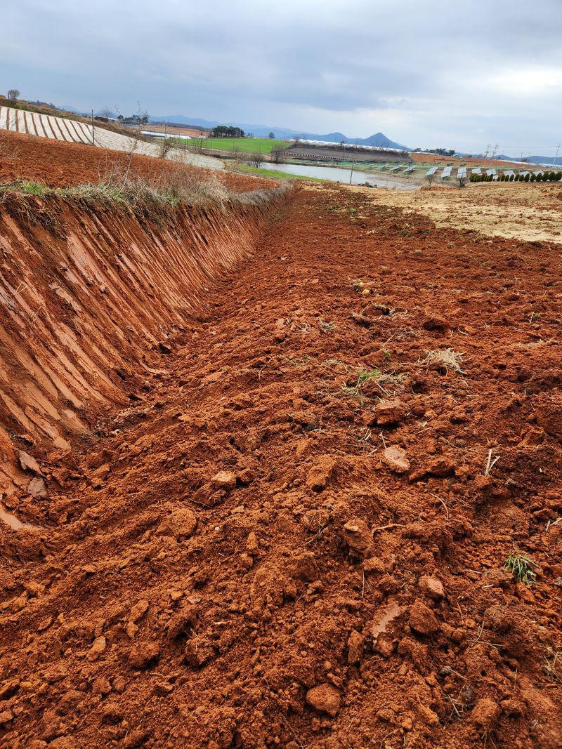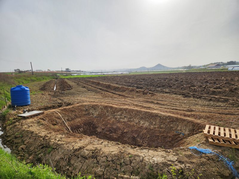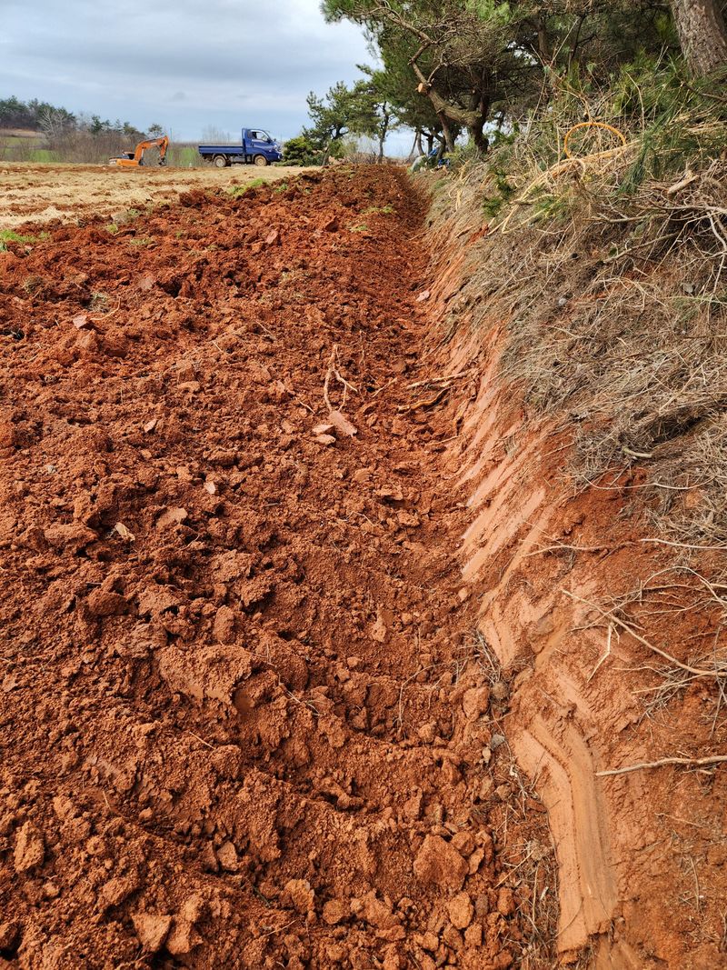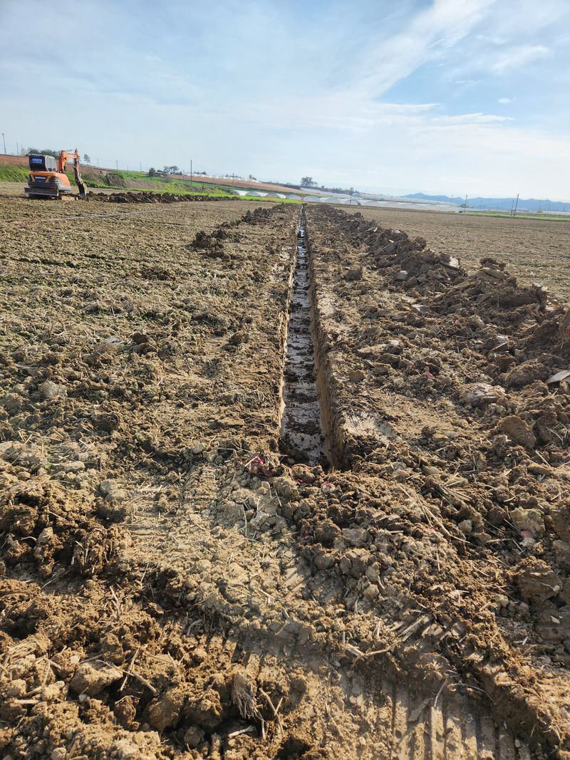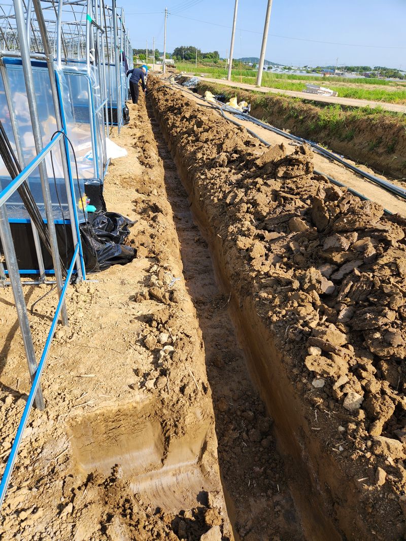 천년동안 벼농사 하던곳에 시설하우스로 전환하기 위해 배수로 작업