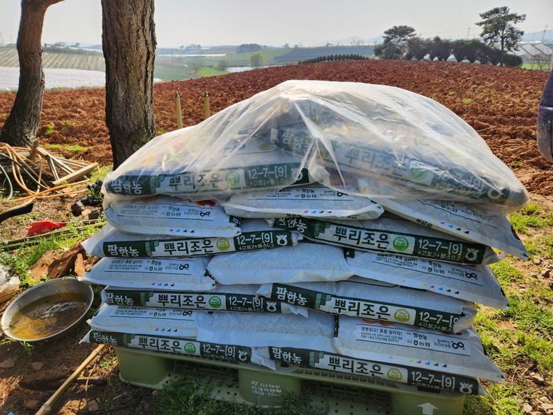 1차 메롱 젖순훑어주기 여자두명투입.노지밭 미생물산포작업 2톤