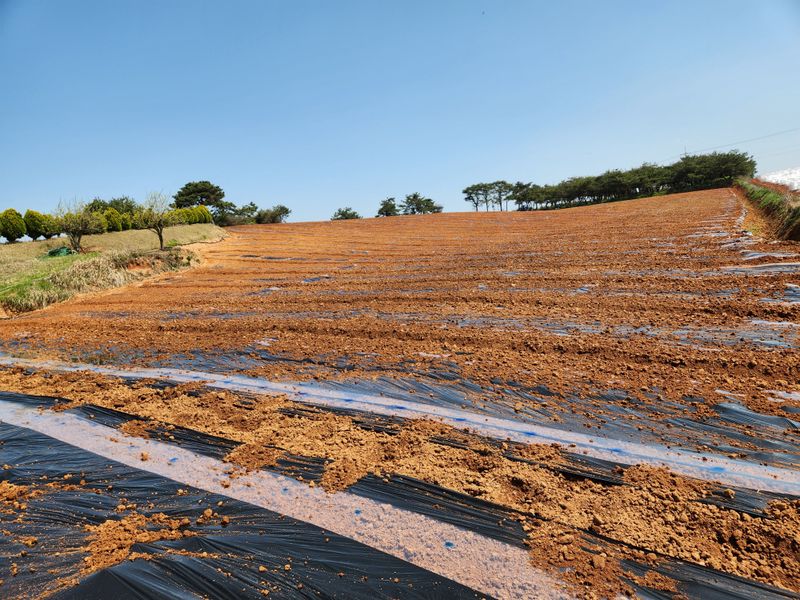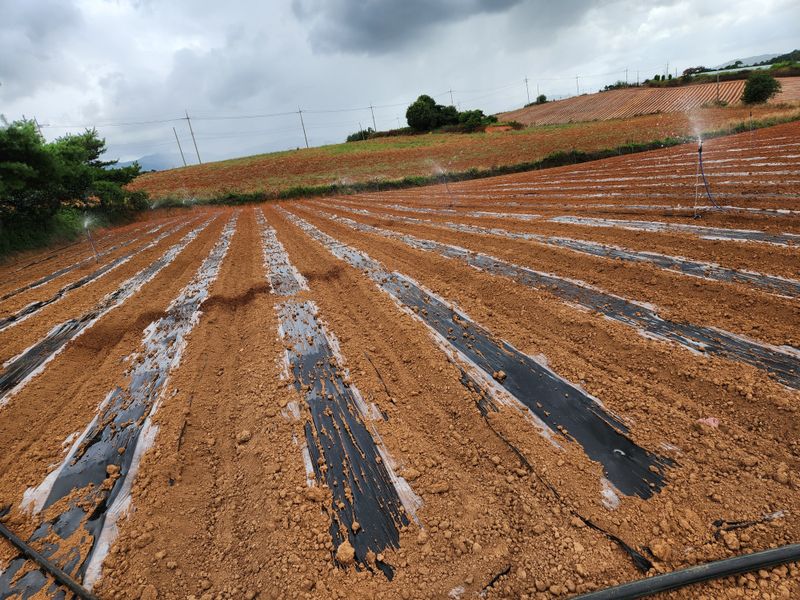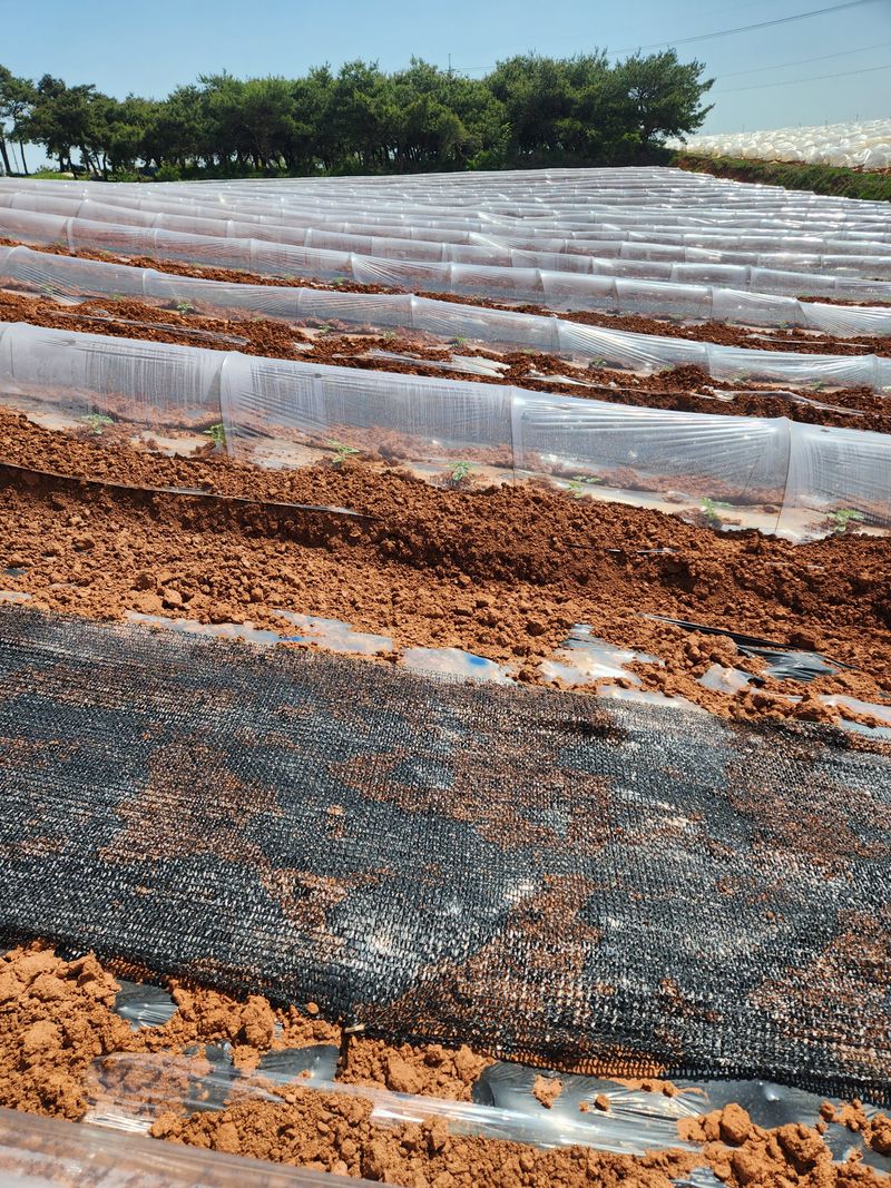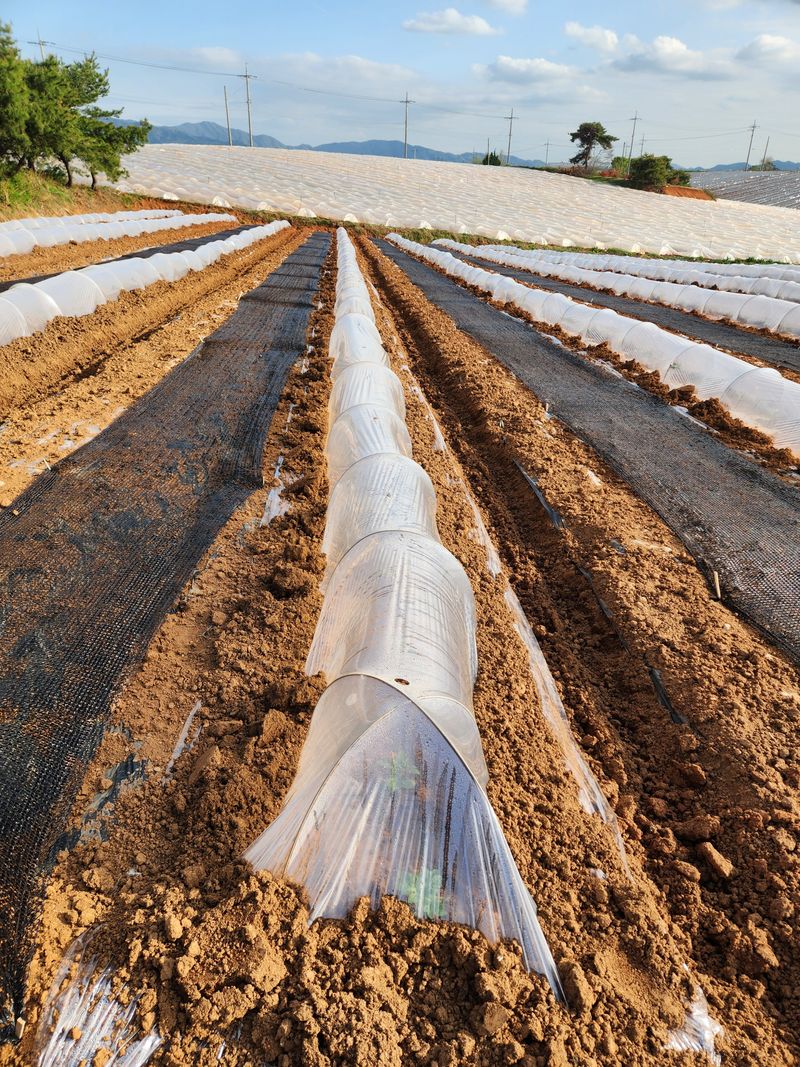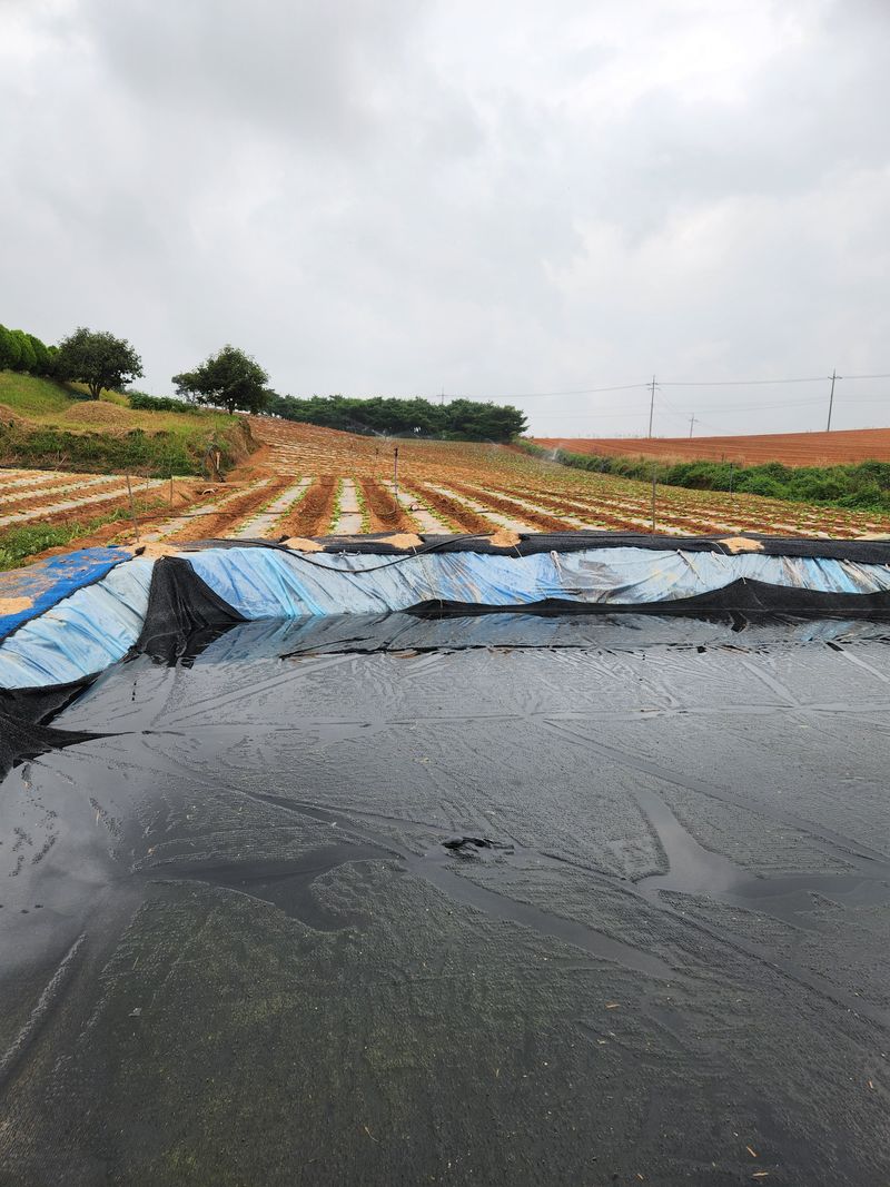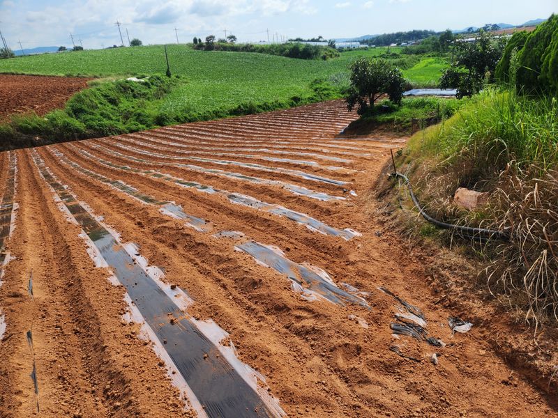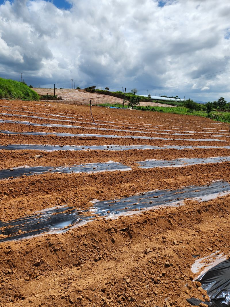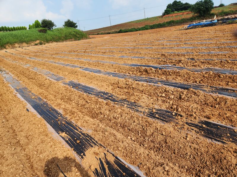 고랑에 병충해방지 및 제초비닐 멀칭작업