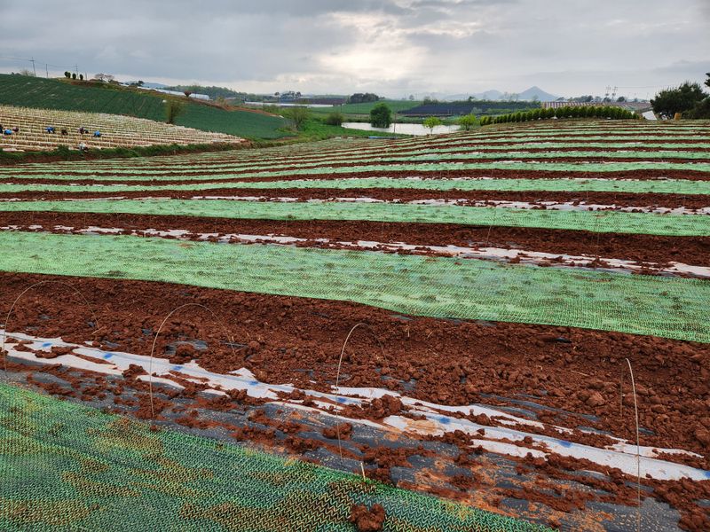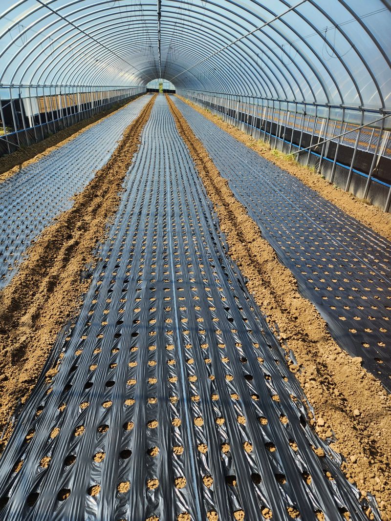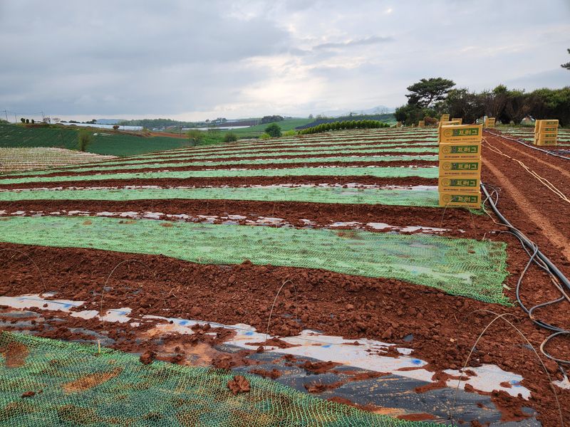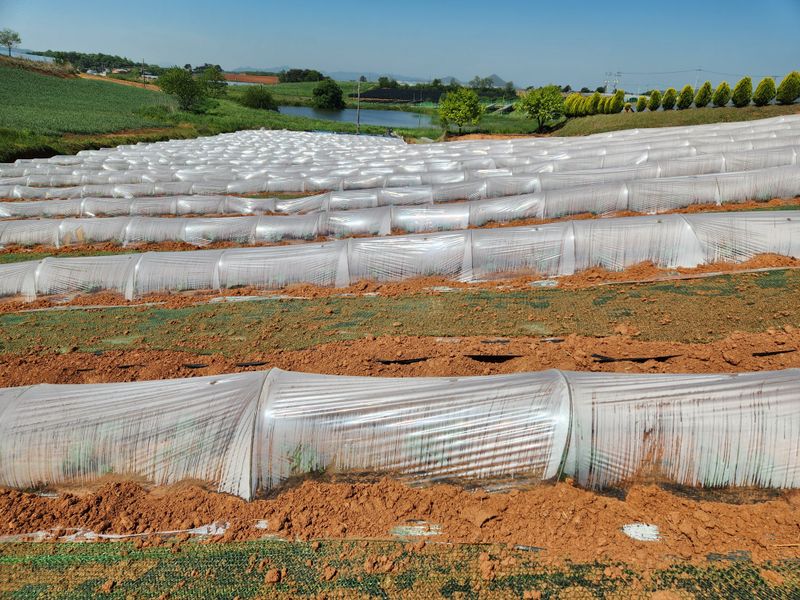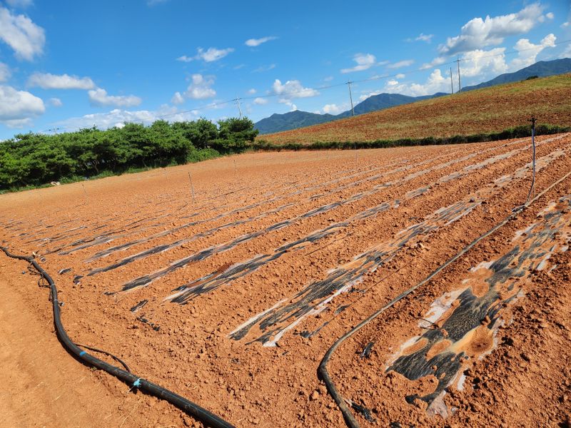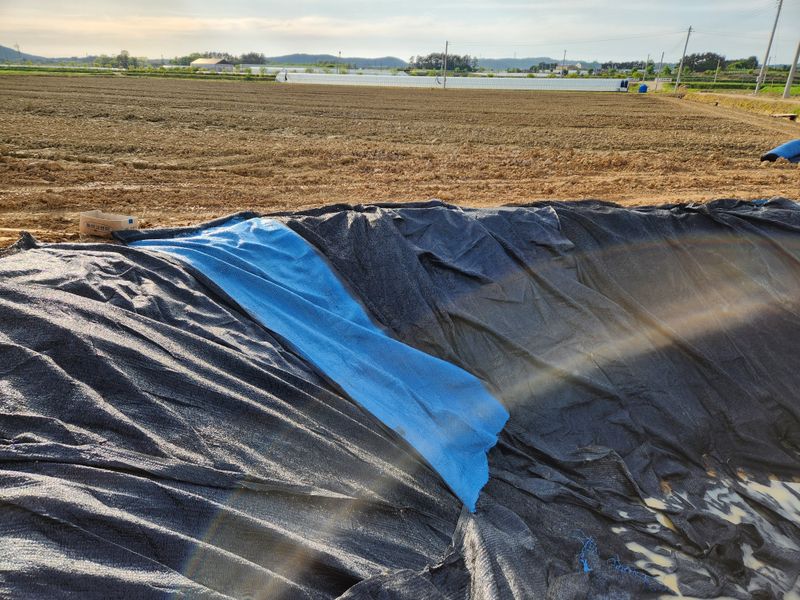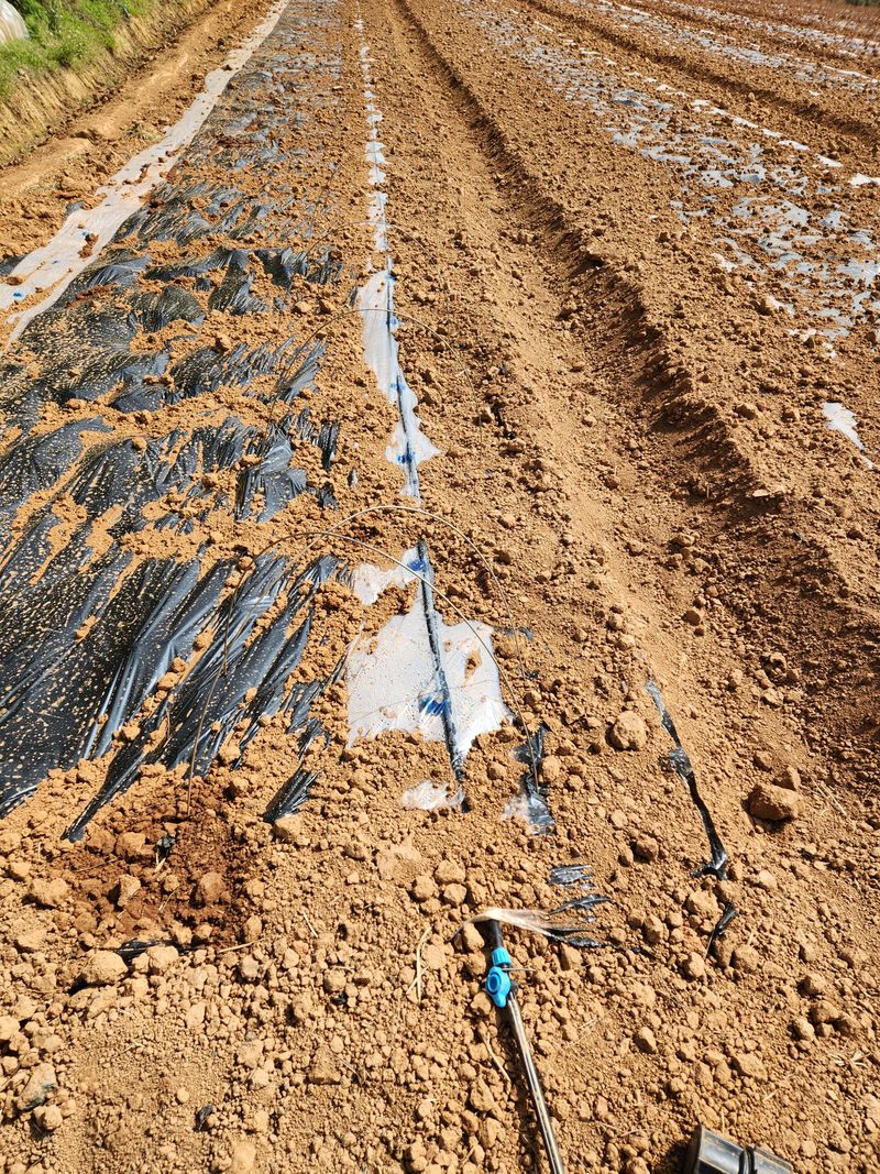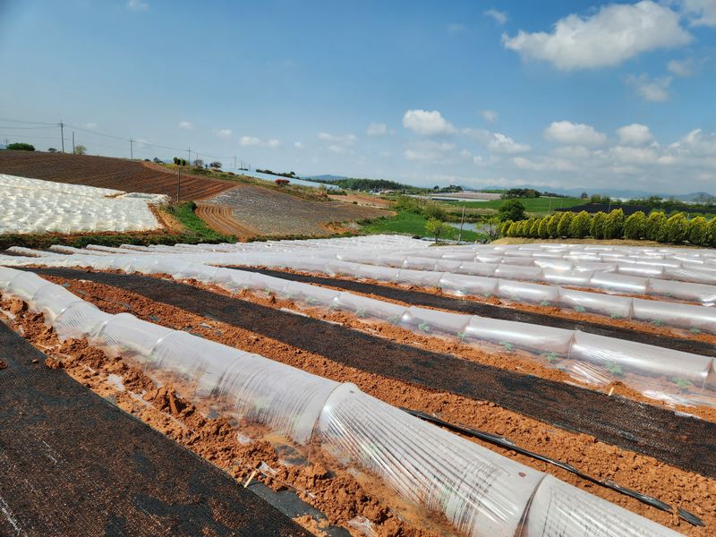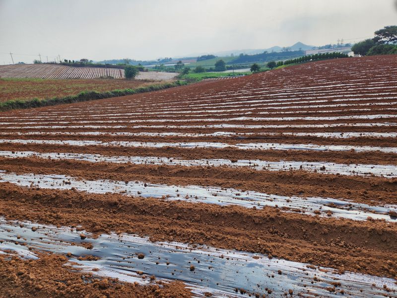 고랑에 병충해방지 및 제초비닐 멀칭작업