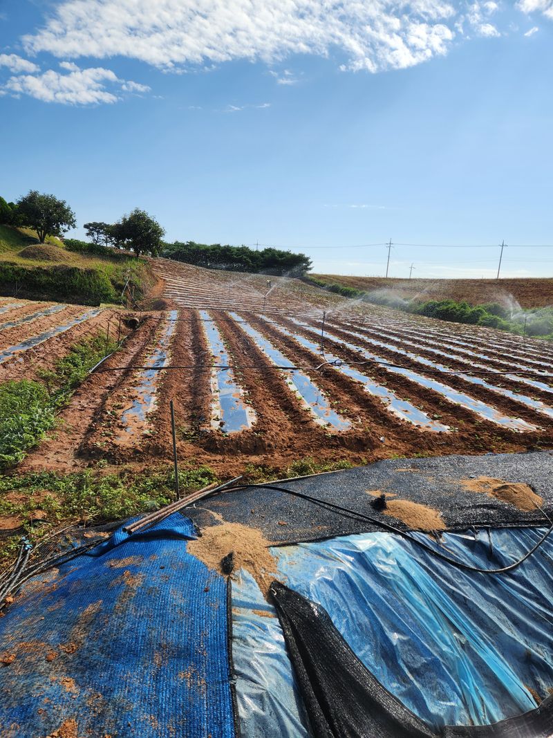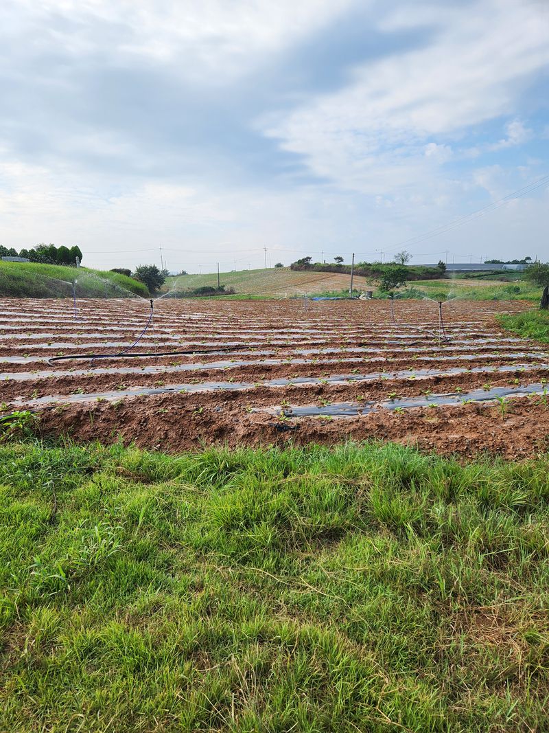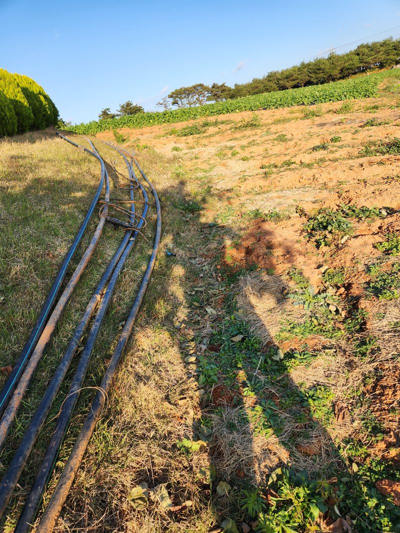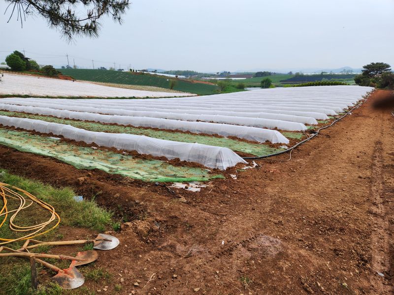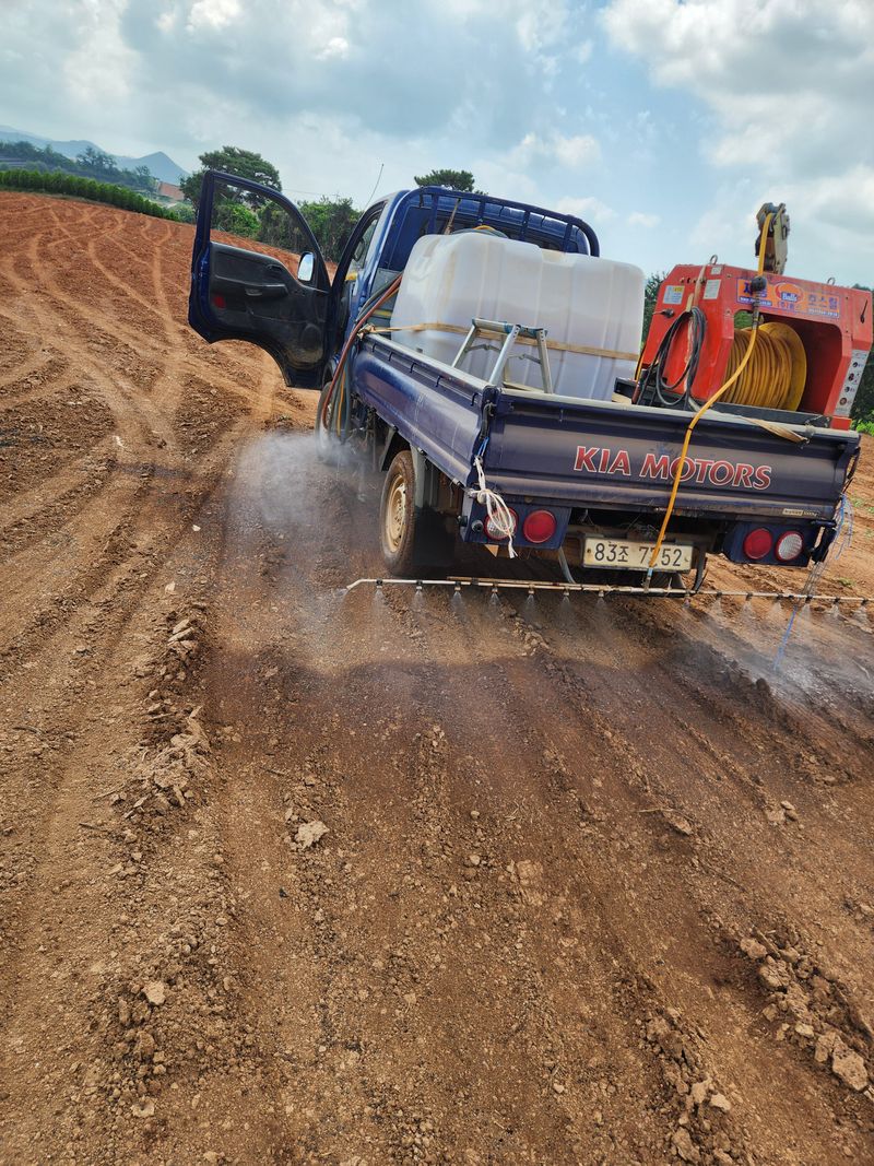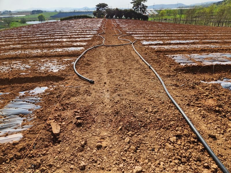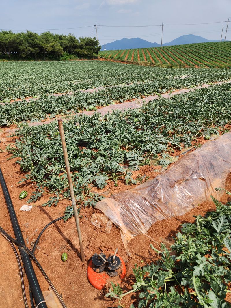 2차메롱 살균제 발근제 밀어주기작업. 노지 스프링쿨러설치 작업