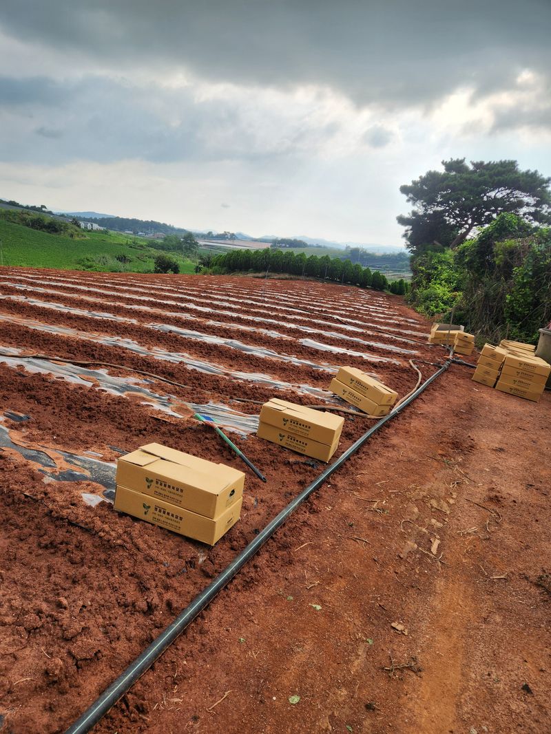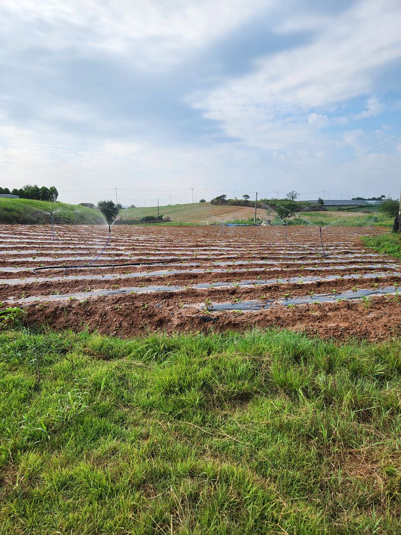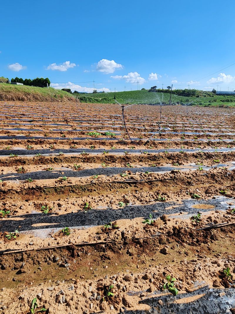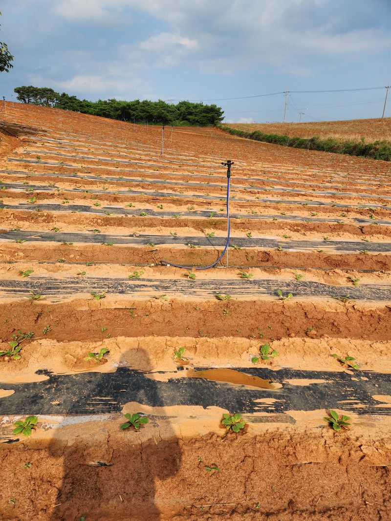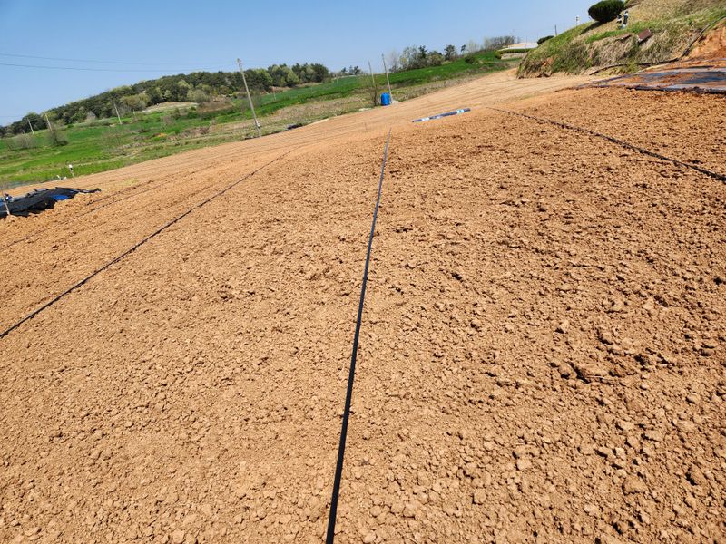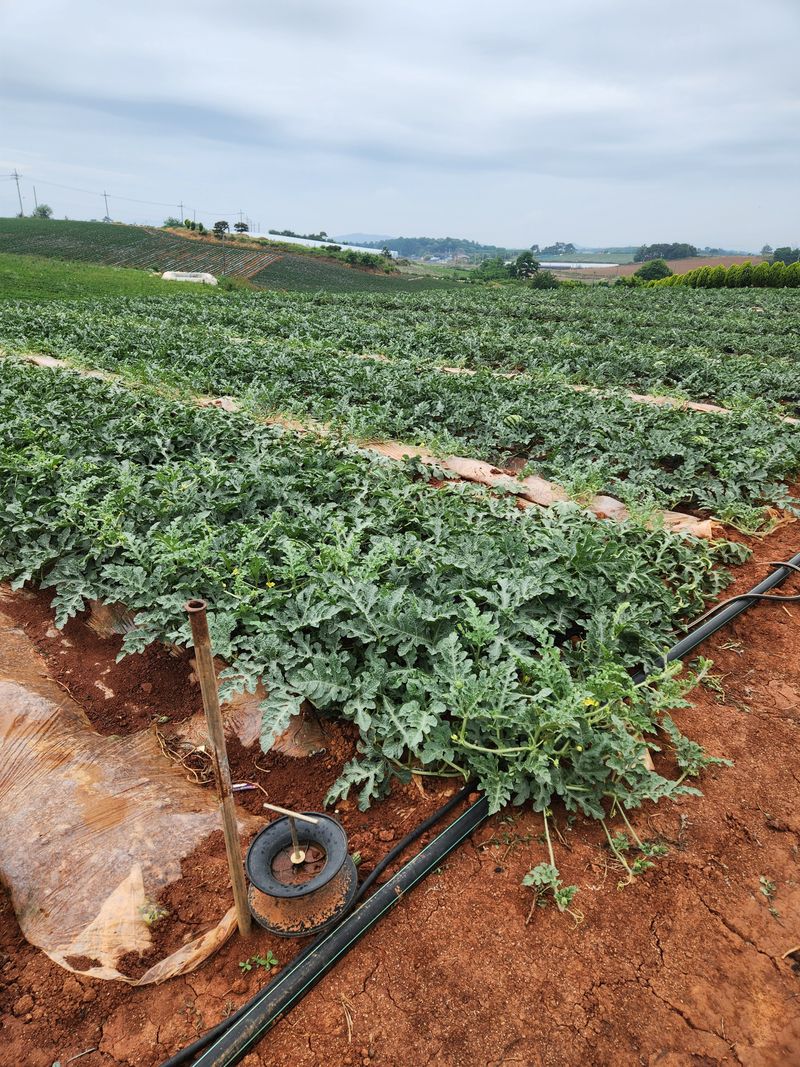 2차메롱 살균제 발근제 밀어주기작업. 노지 스프링쿨러설치 작업
