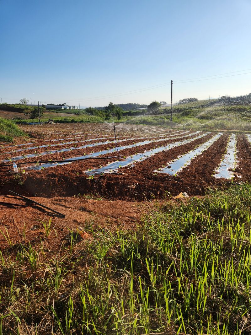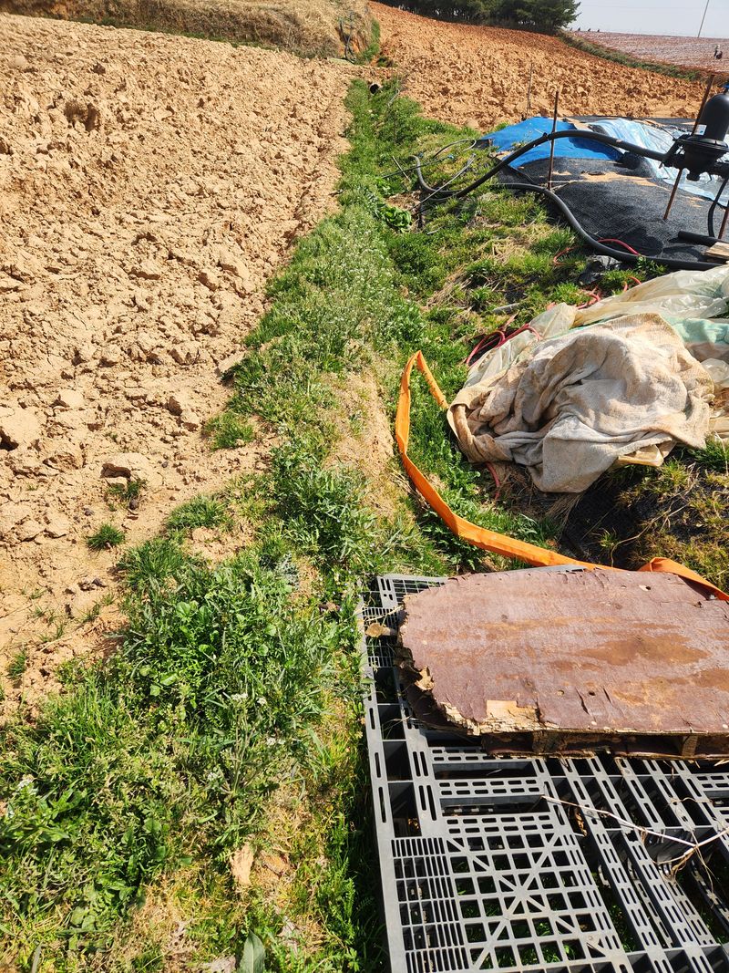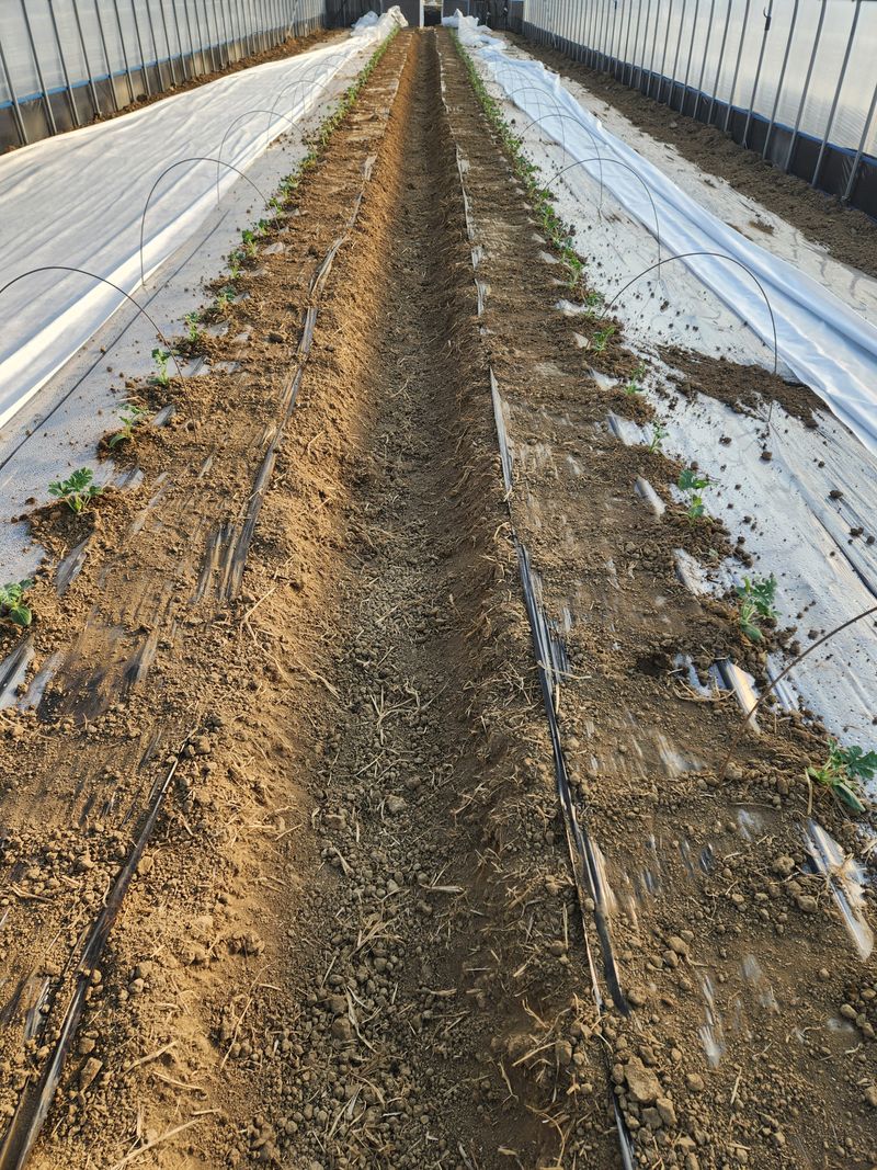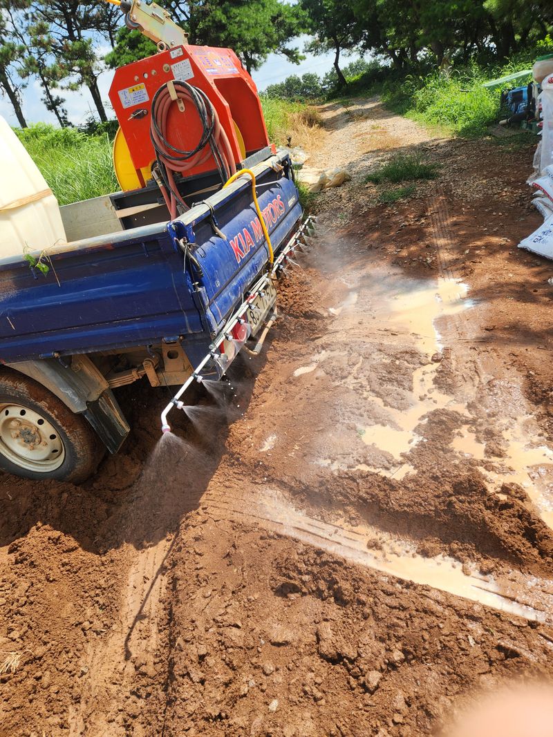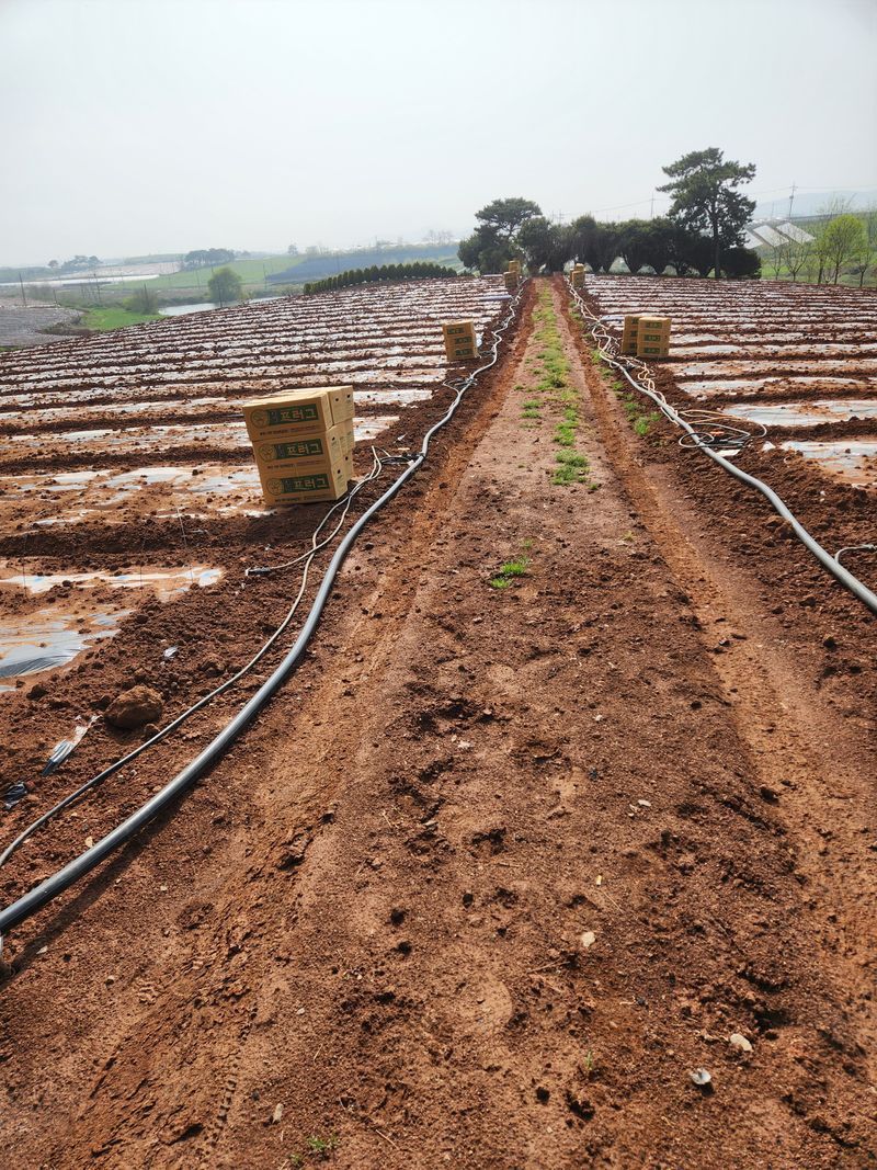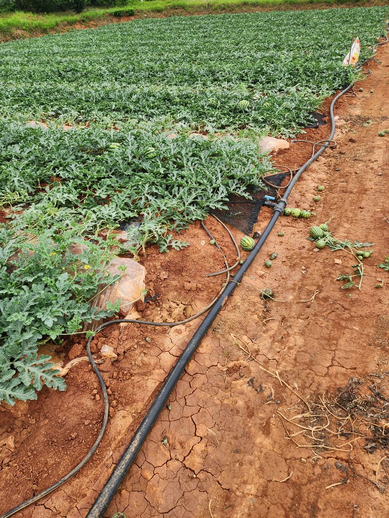 2차메롱 살균제 발근제 밀어주기작업. 노지 스프링쿨러설치 작업