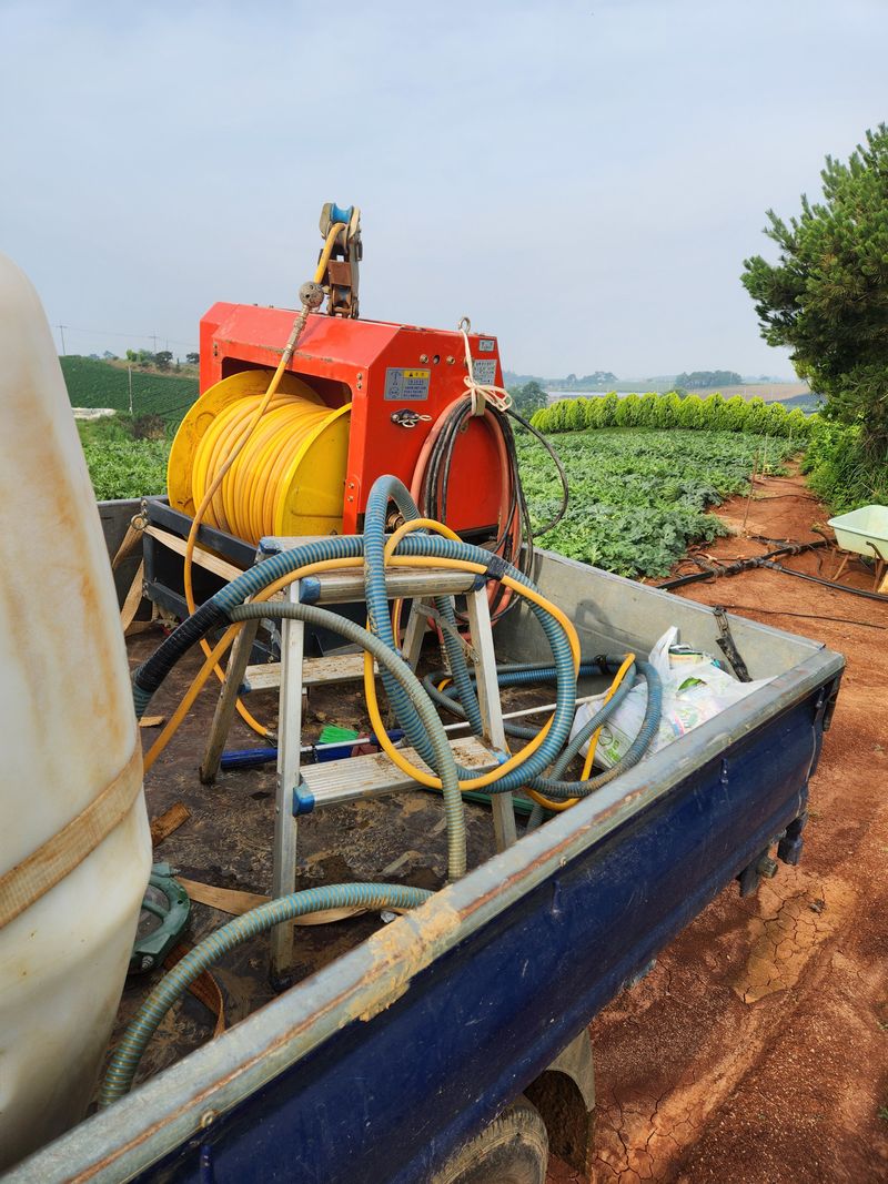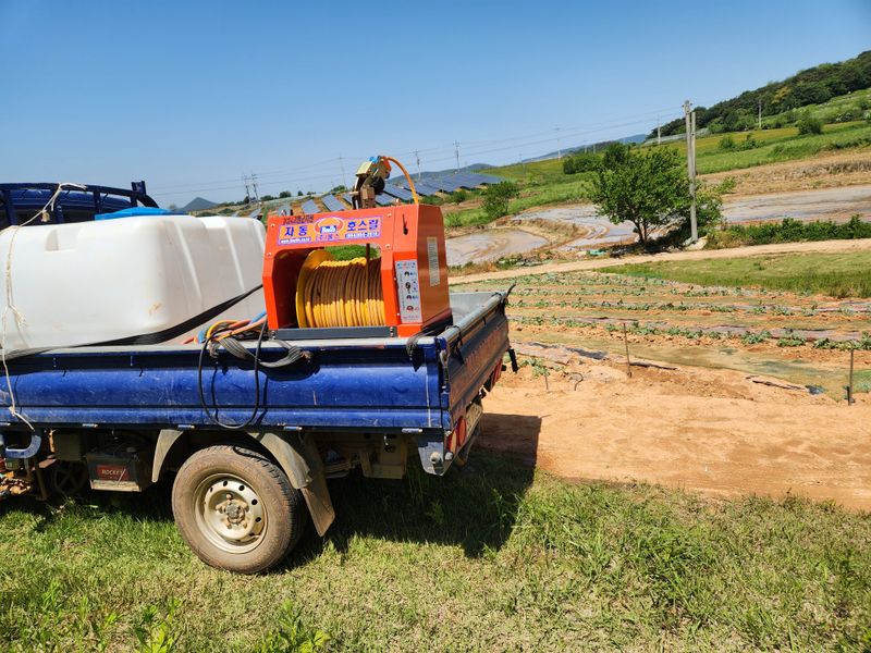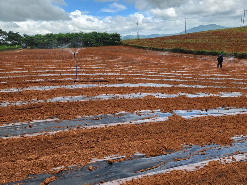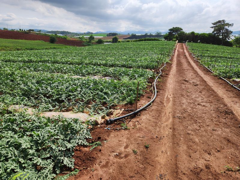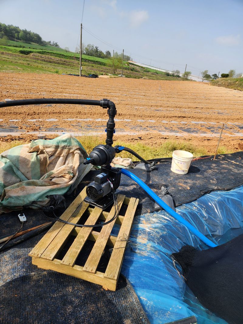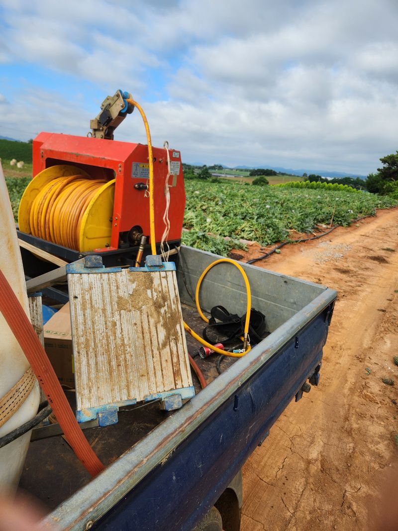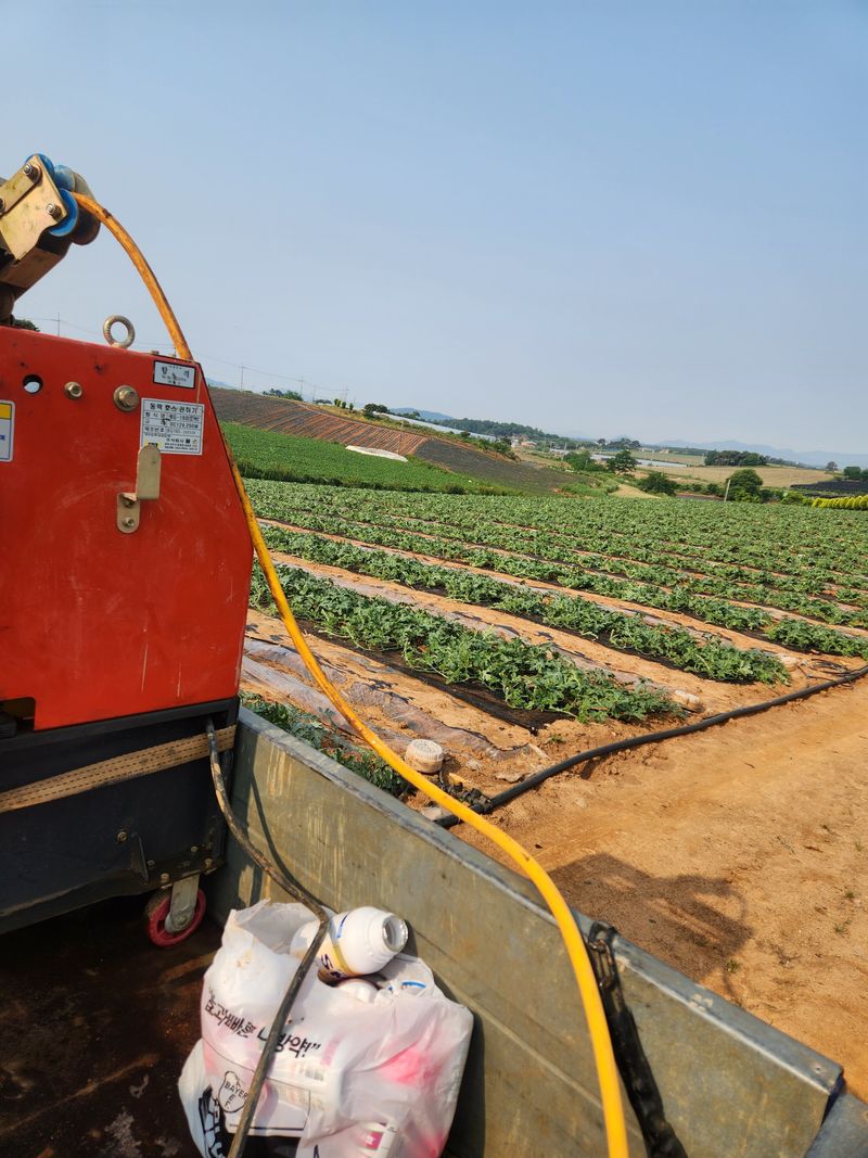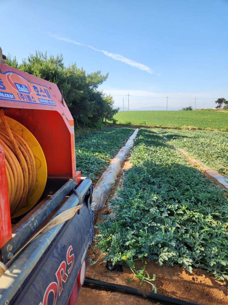2차메롱 농약살포작업. 노지 스프링쿨러 시험가동 작업