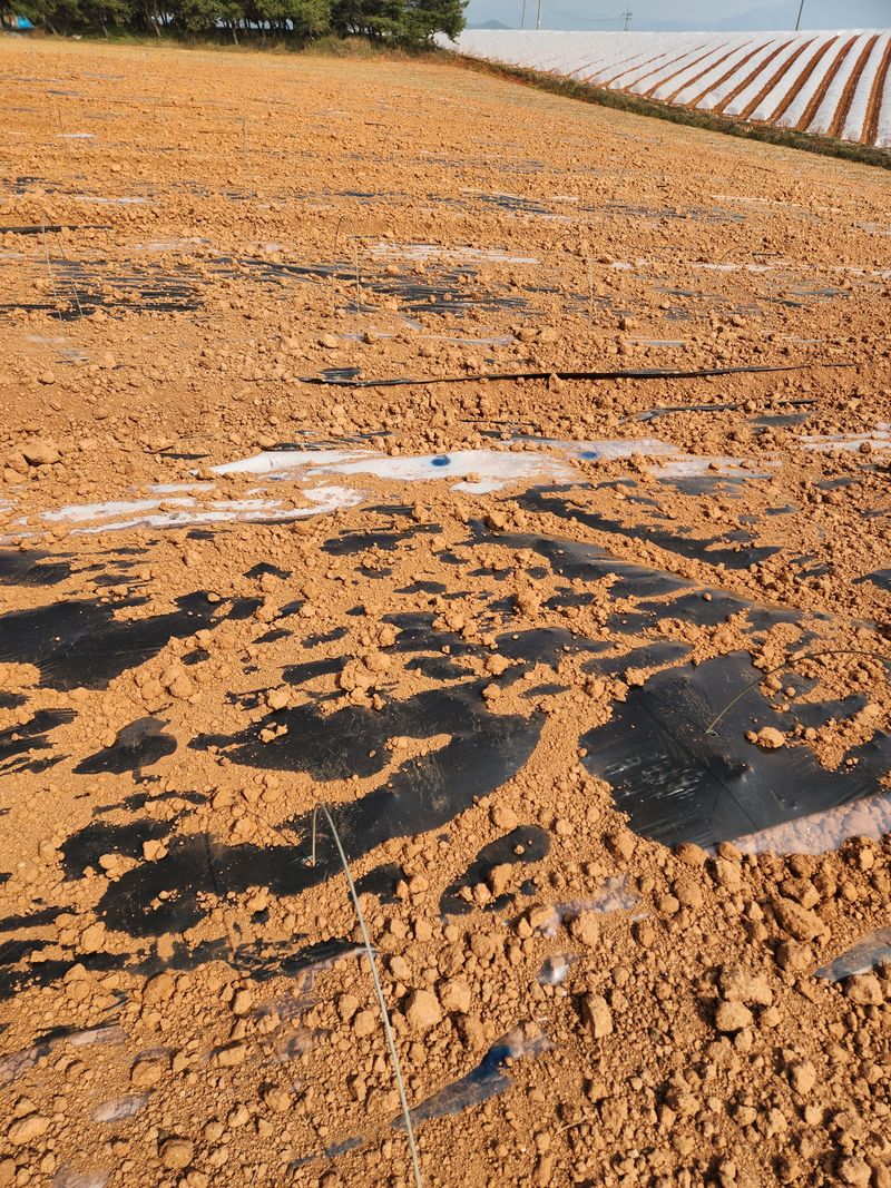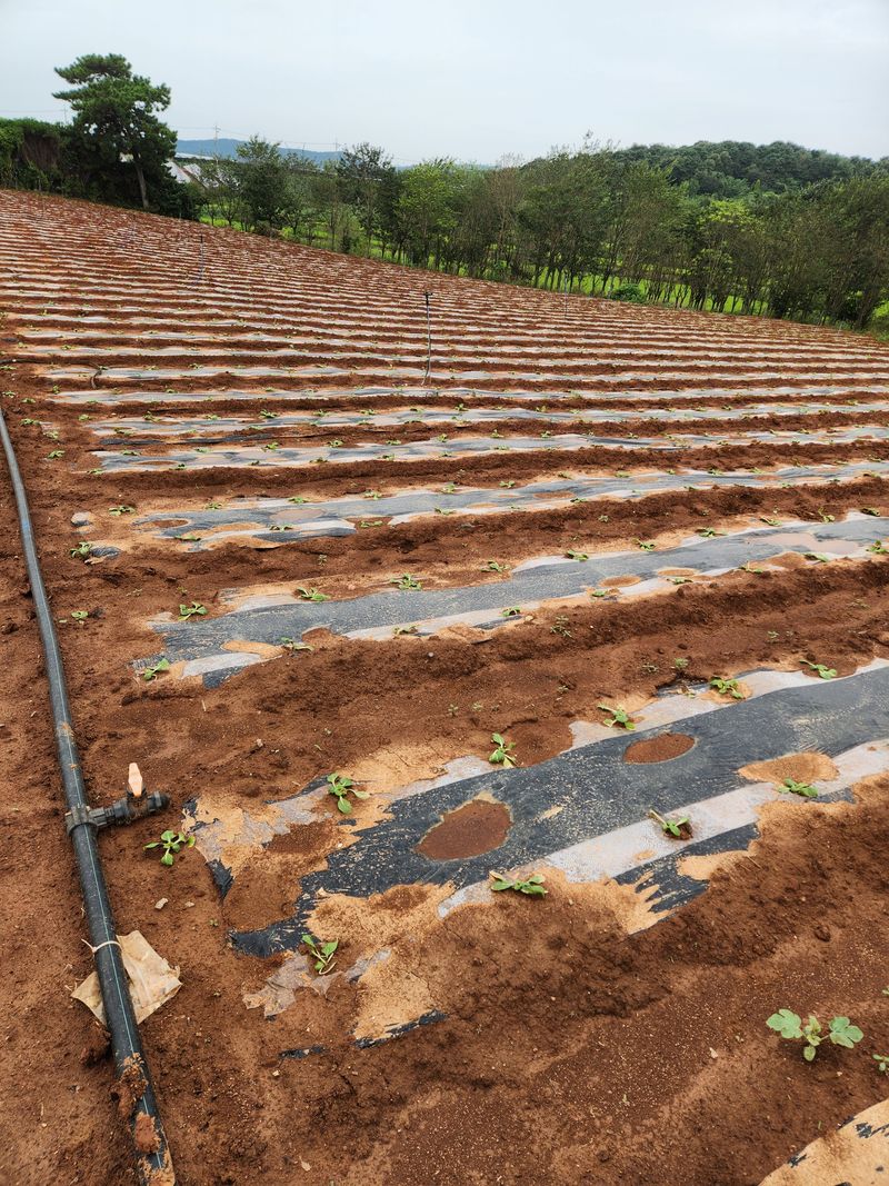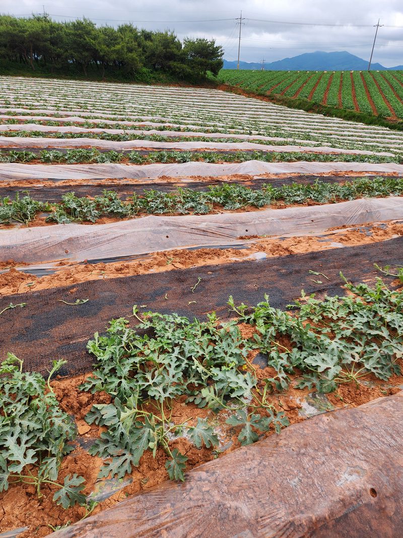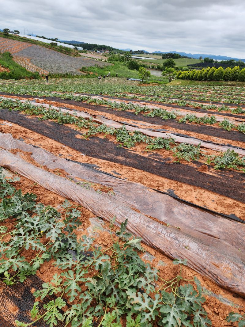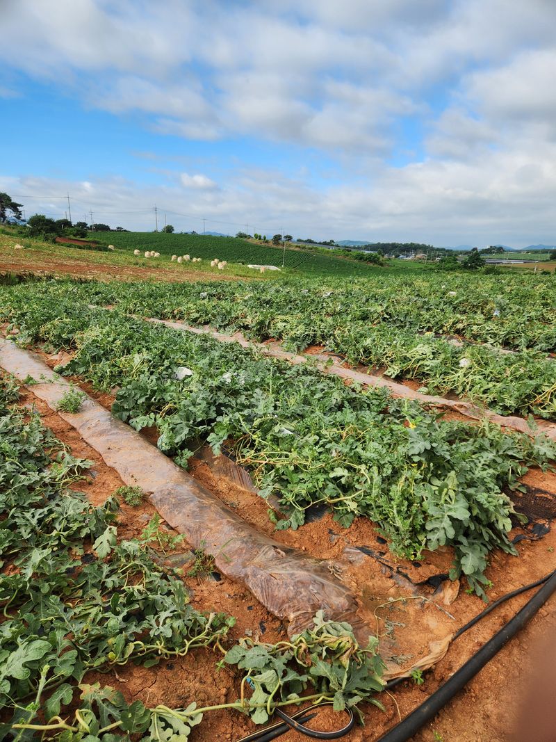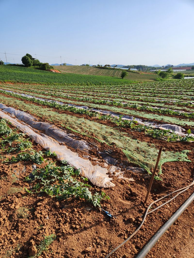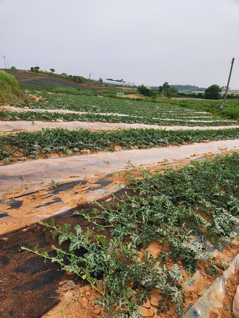노지수박 온실밖 세상으로 나가기 위해 확기작업및 밭고랑 제초제 살포. 논 시설하우스 시공 2일ㅊㅏ