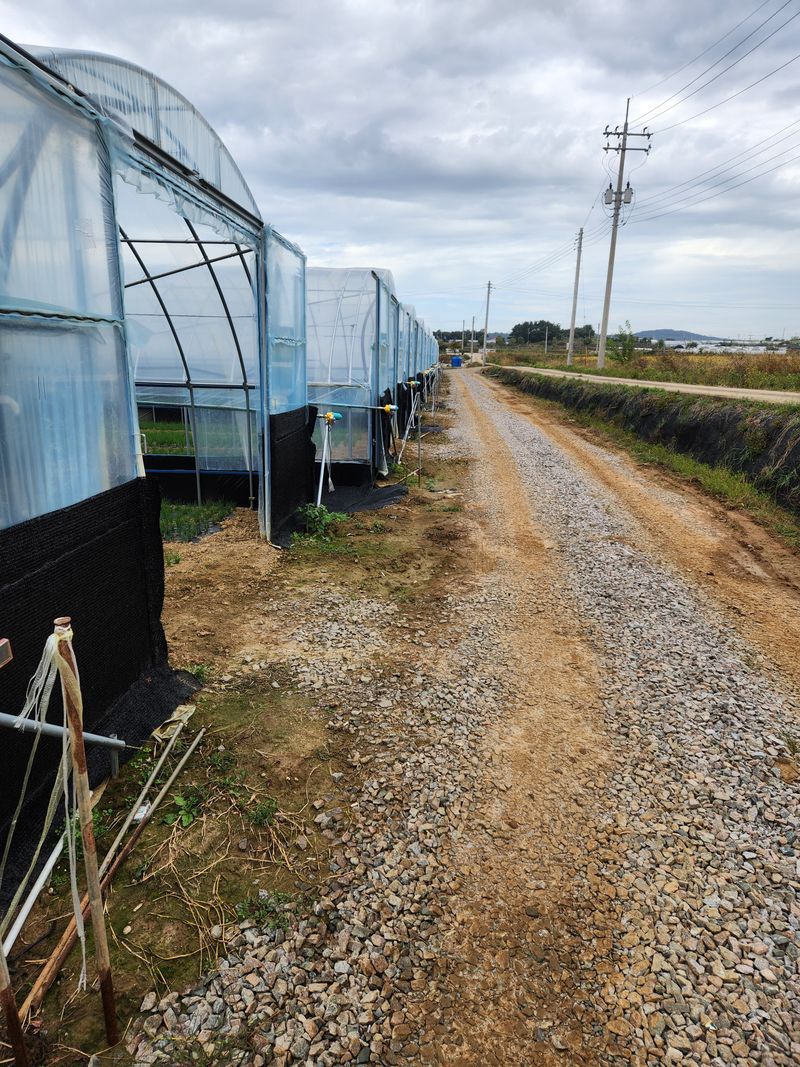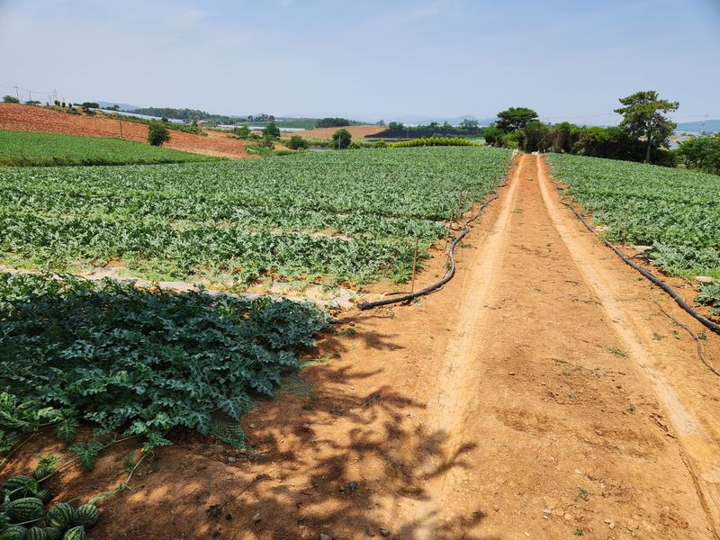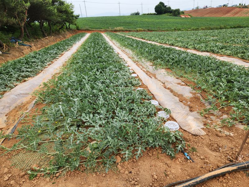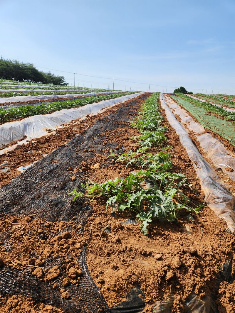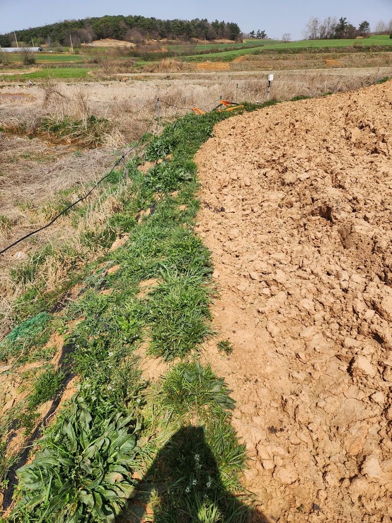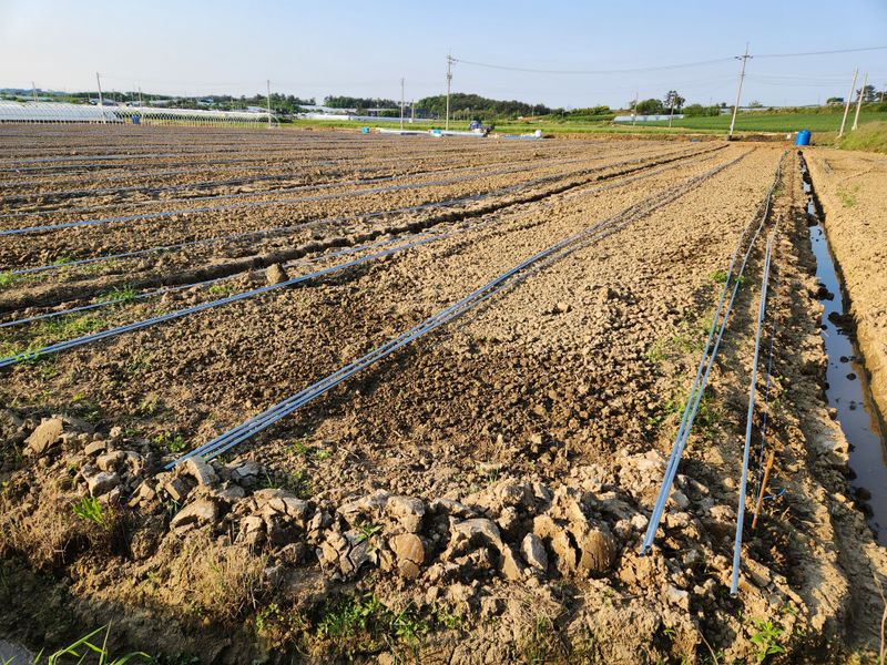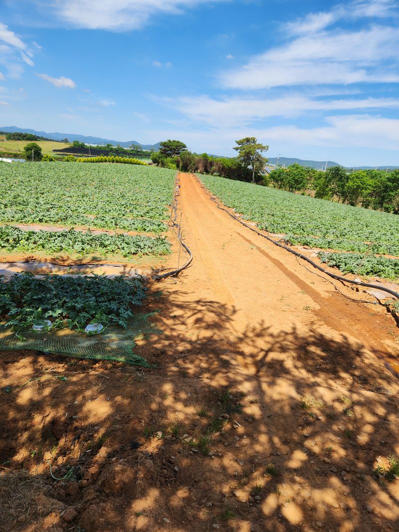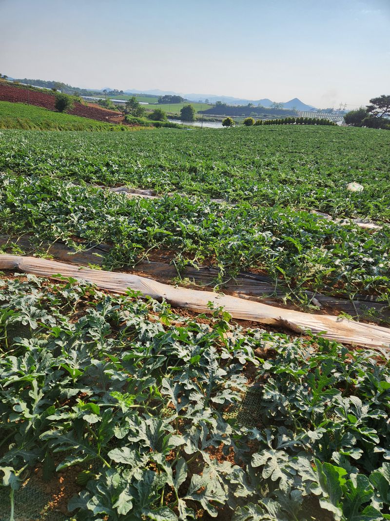 노지수박 온실밖 세상으로 나가기 위해 확기작업및 밭고랑 제초제 살포. 논 시설하우스 시공 2일ㅊㅏ