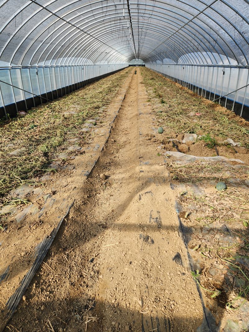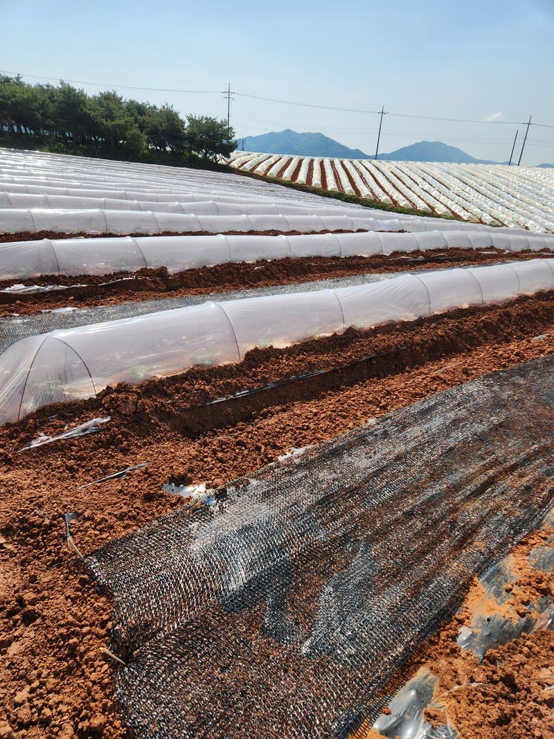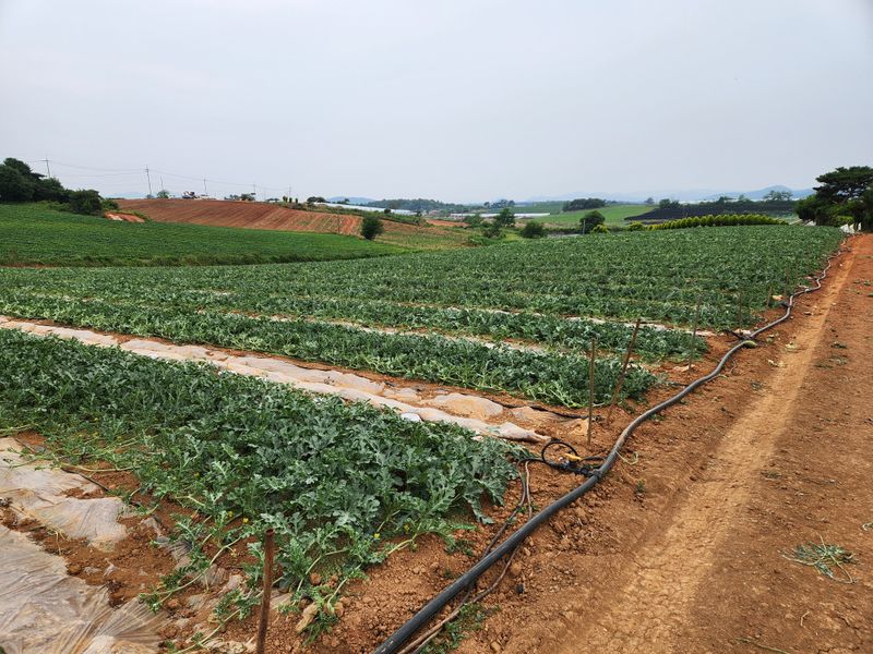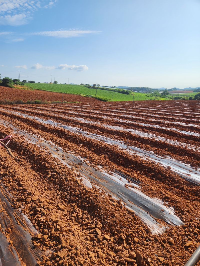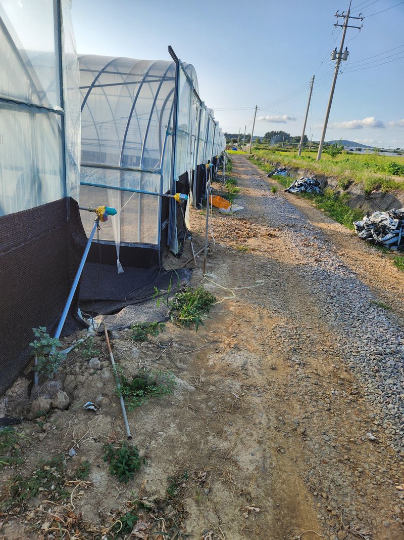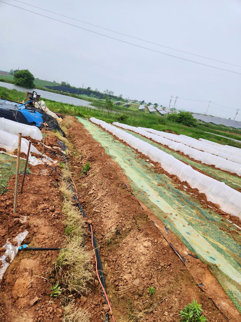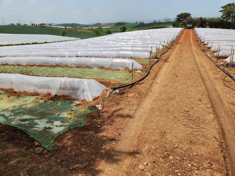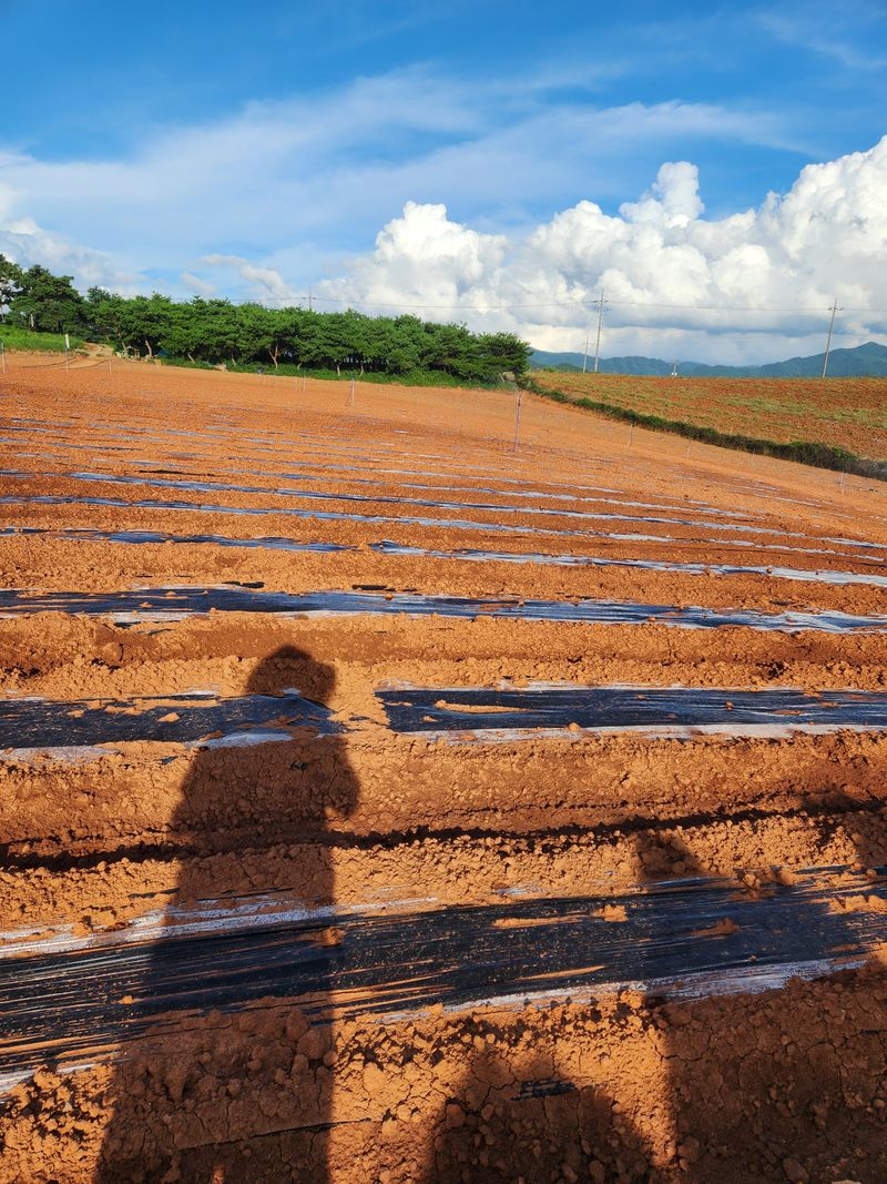 노지수박 온실밖 세상으로 나가기 위해 확기작업및 밭고랑 제초제 살포. 논 시설하우스 시공 2일ㅊㅏ
