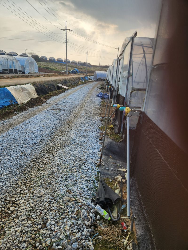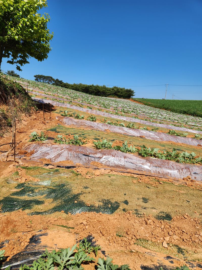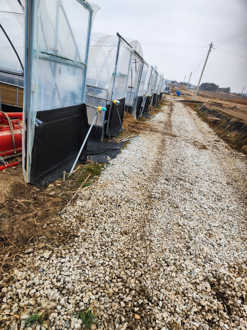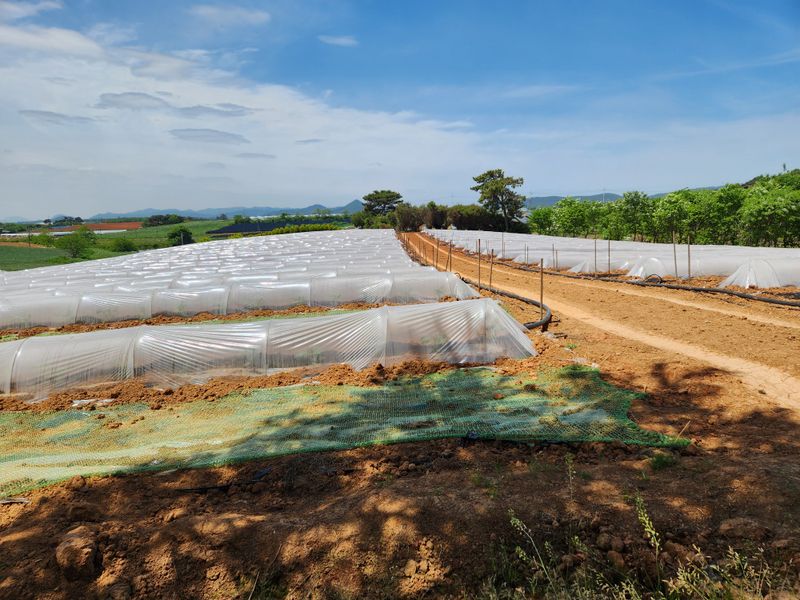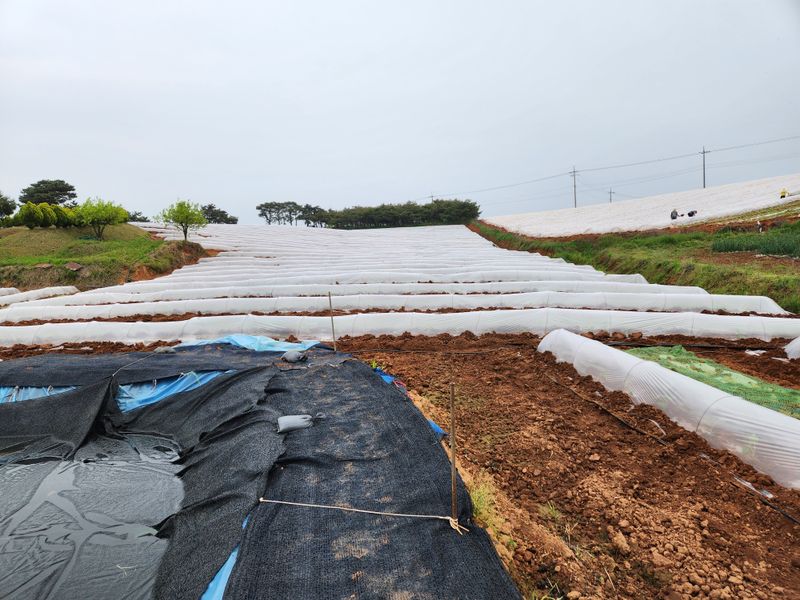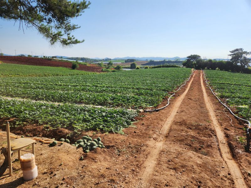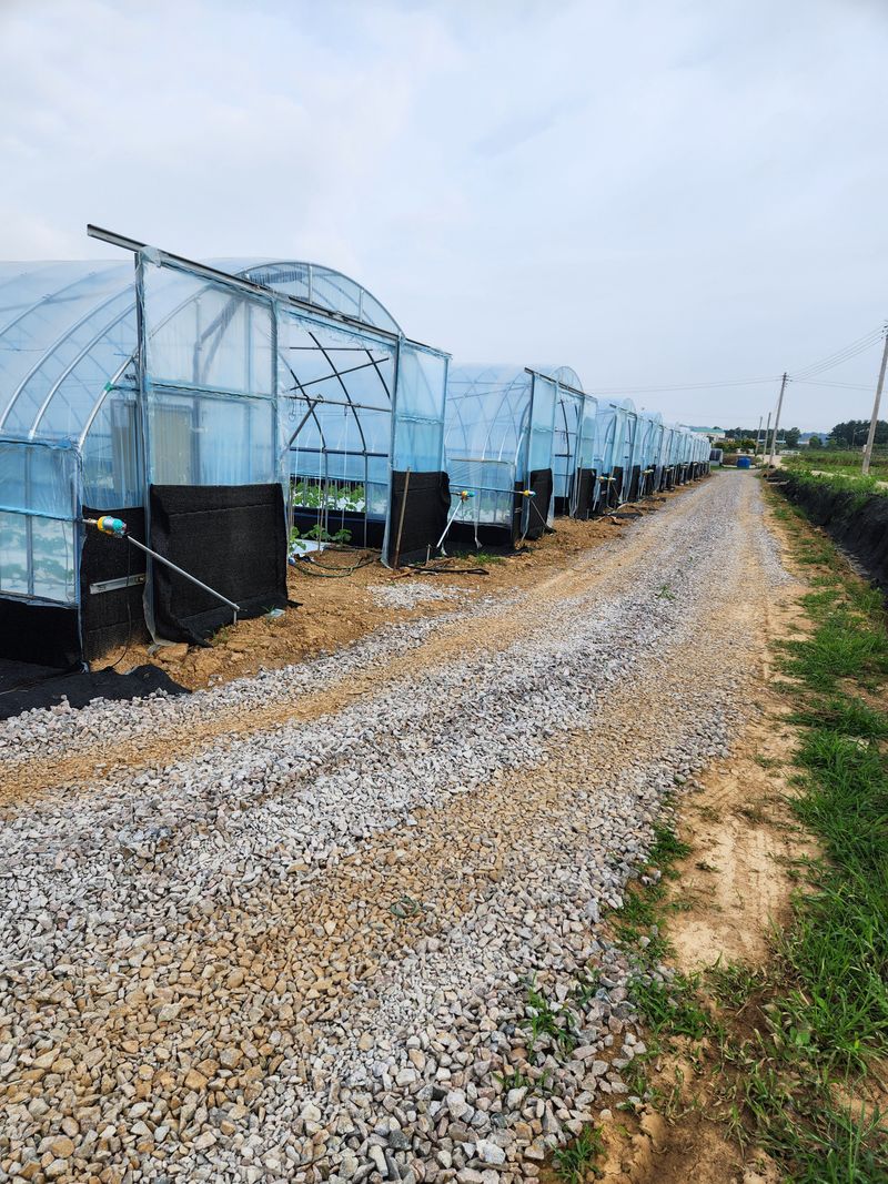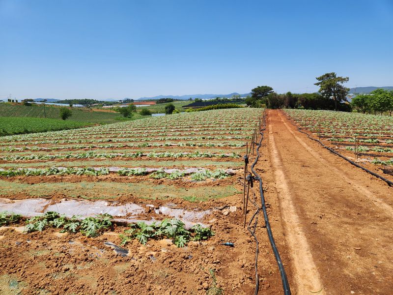 노지수박 온실밖 세상으로 나가기 위해 확기작업및 밭고랑 제초제 살포. 논 시설하우스 시공 2일ㅊㅏ